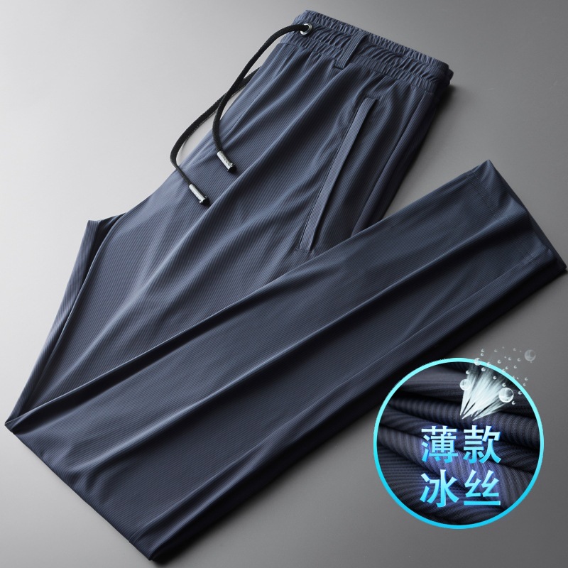 여름 캐주얼 바지 남자 스트레이트 빠른 건조 긴 바지 얇은 아이스 실크 남자 바지 스트레치 플러스 사이즈 남자 스포츠 바지 639스토어 가기