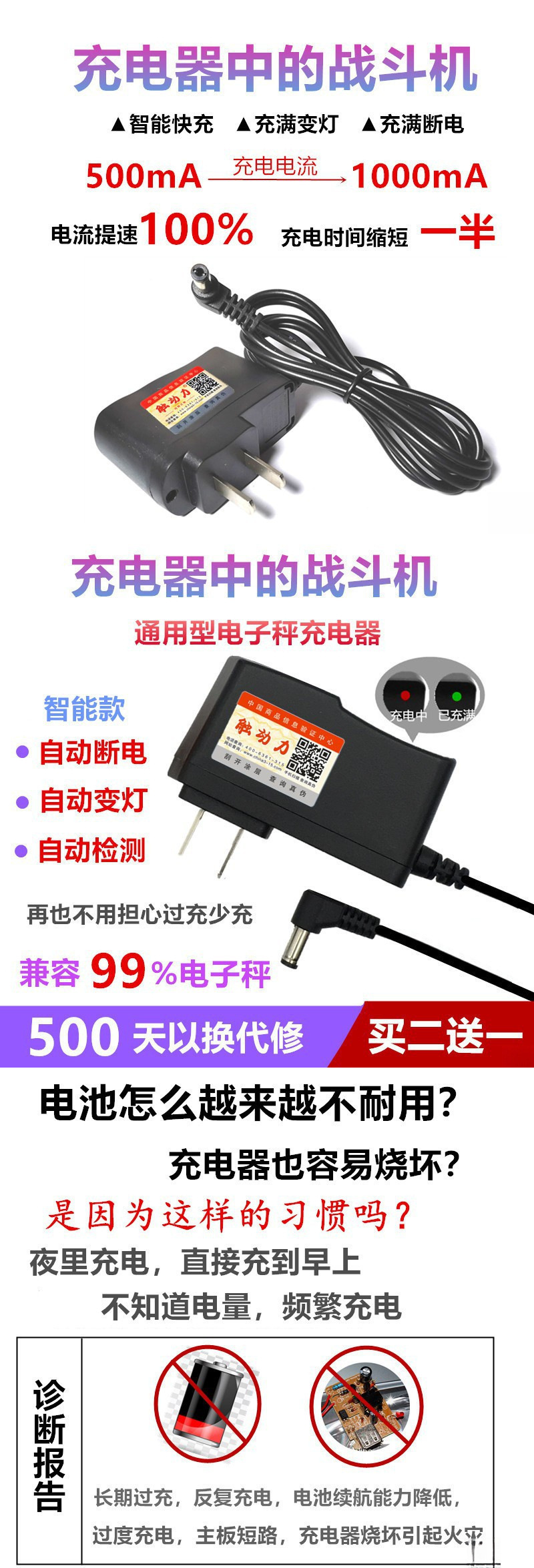 터치 파워 전자 스케일 충전기 6v 라운드 홀 유니버설 접이식 플랫폼 스케일 4v 배터리 전자 스케일 충전 와이어
