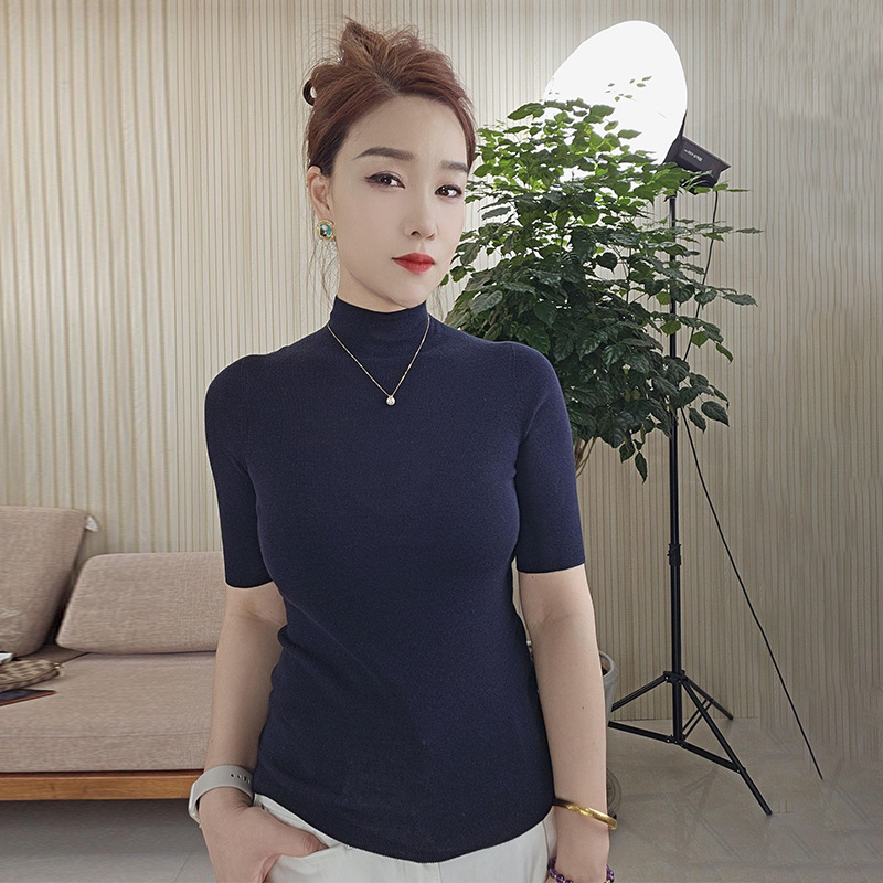 120s 소프트 왁스 18 바늘 원활한 베이스 셔츠 봄과 가을 새로운 모든 양모 니트 셔츠 슬림 핏 내부 울 스웨터스토어 가기
