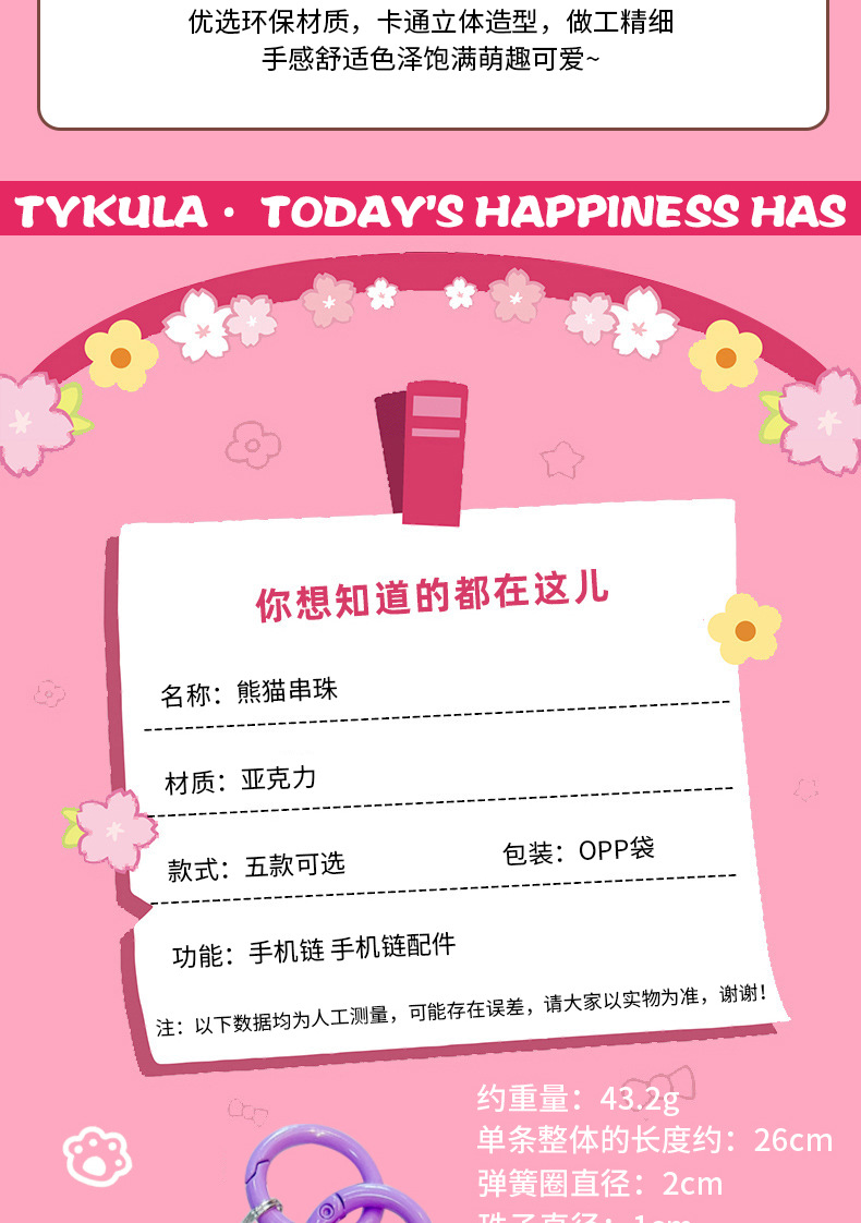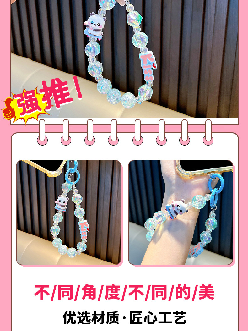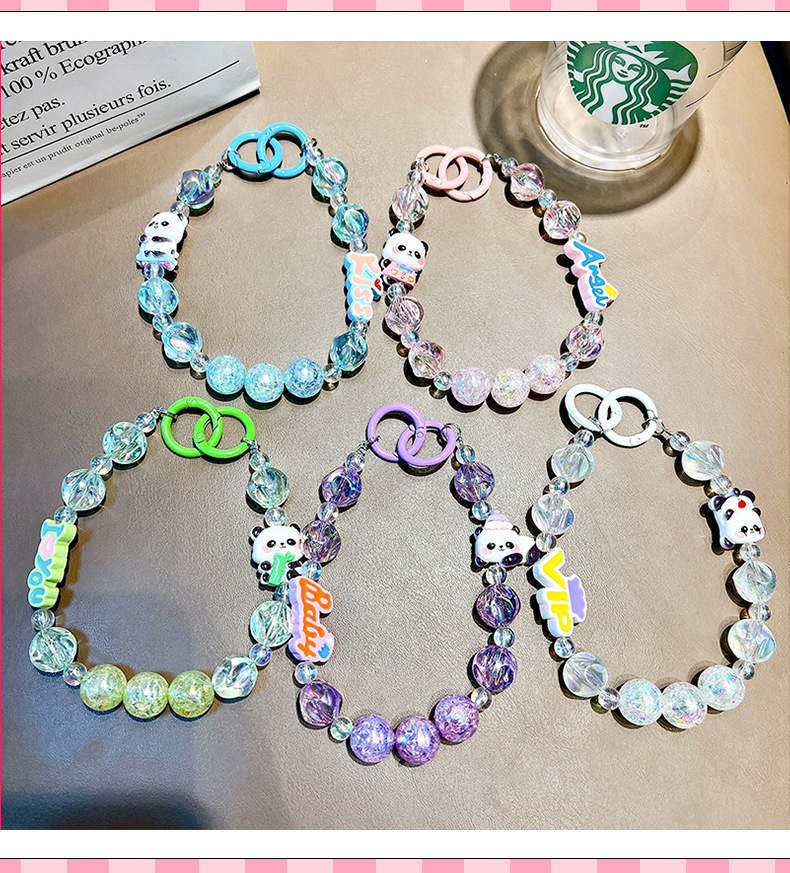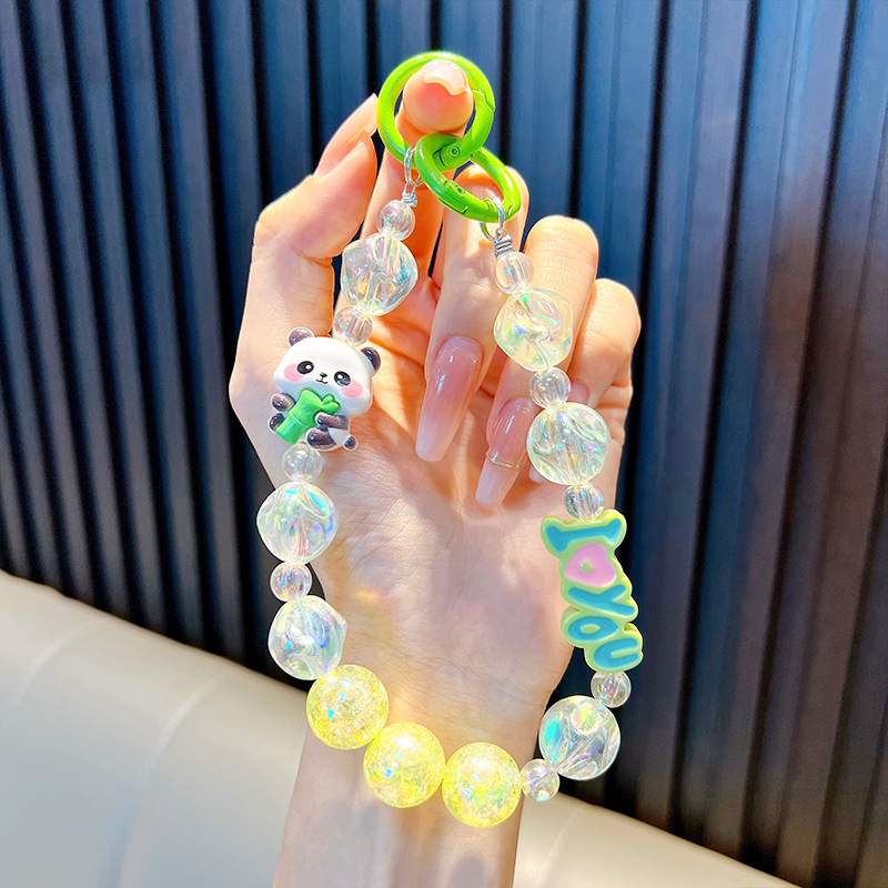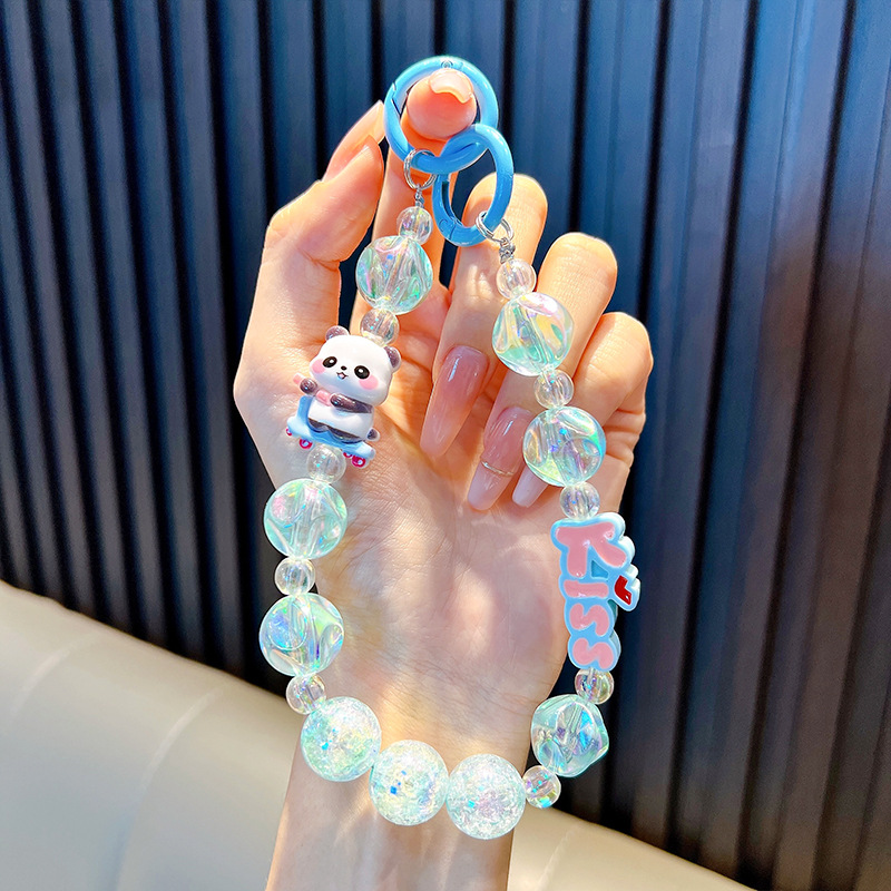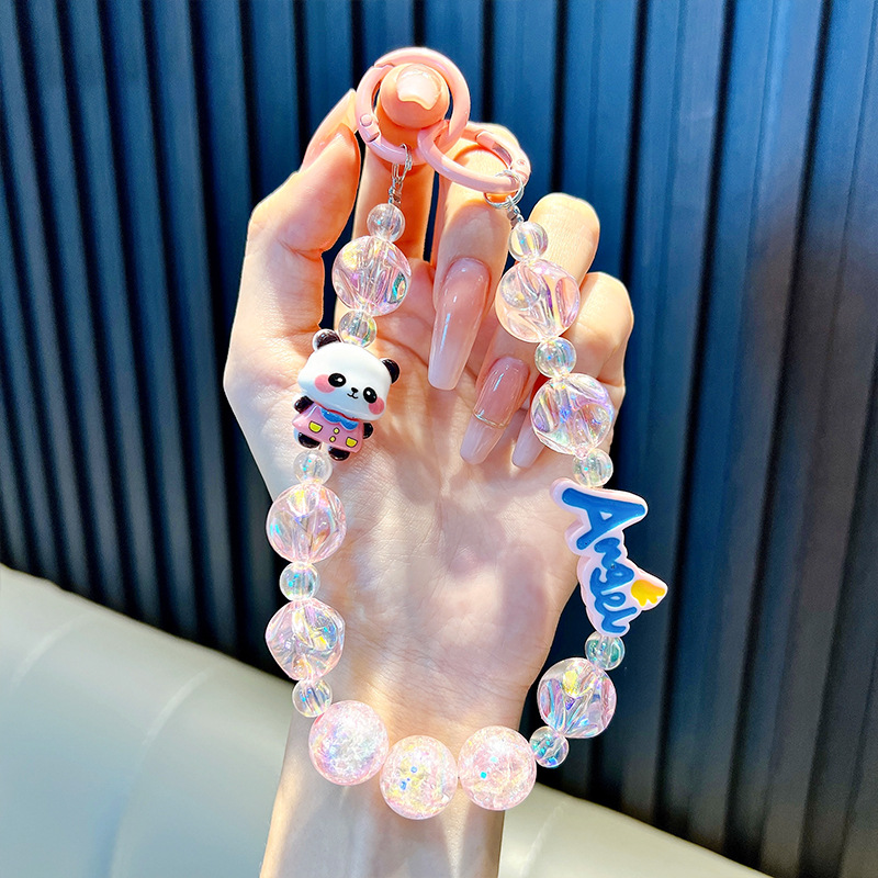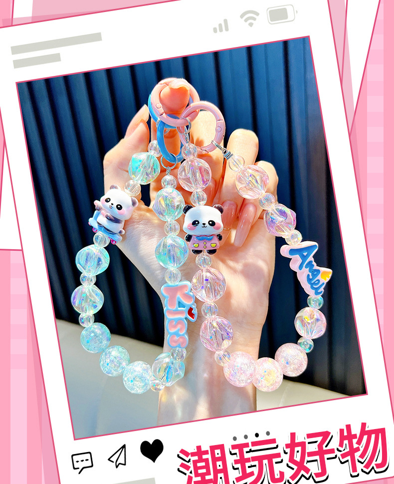 팬더 구슬 키 체인 펜던트 동요 음성 라이브 전화 쉘 걸이 체인 체인 가방 교수형 작은 선물 도매