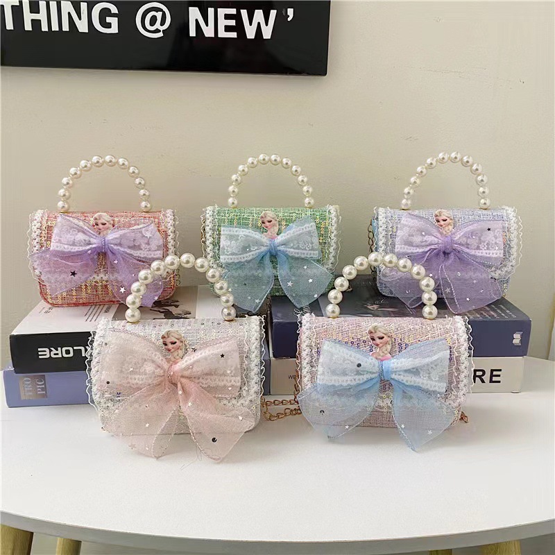 새로운 어린이 가방 작은 소녀의 활 진주 핸드백 패션 세련된 공주 어깨 크로스 바디 동전 지갑