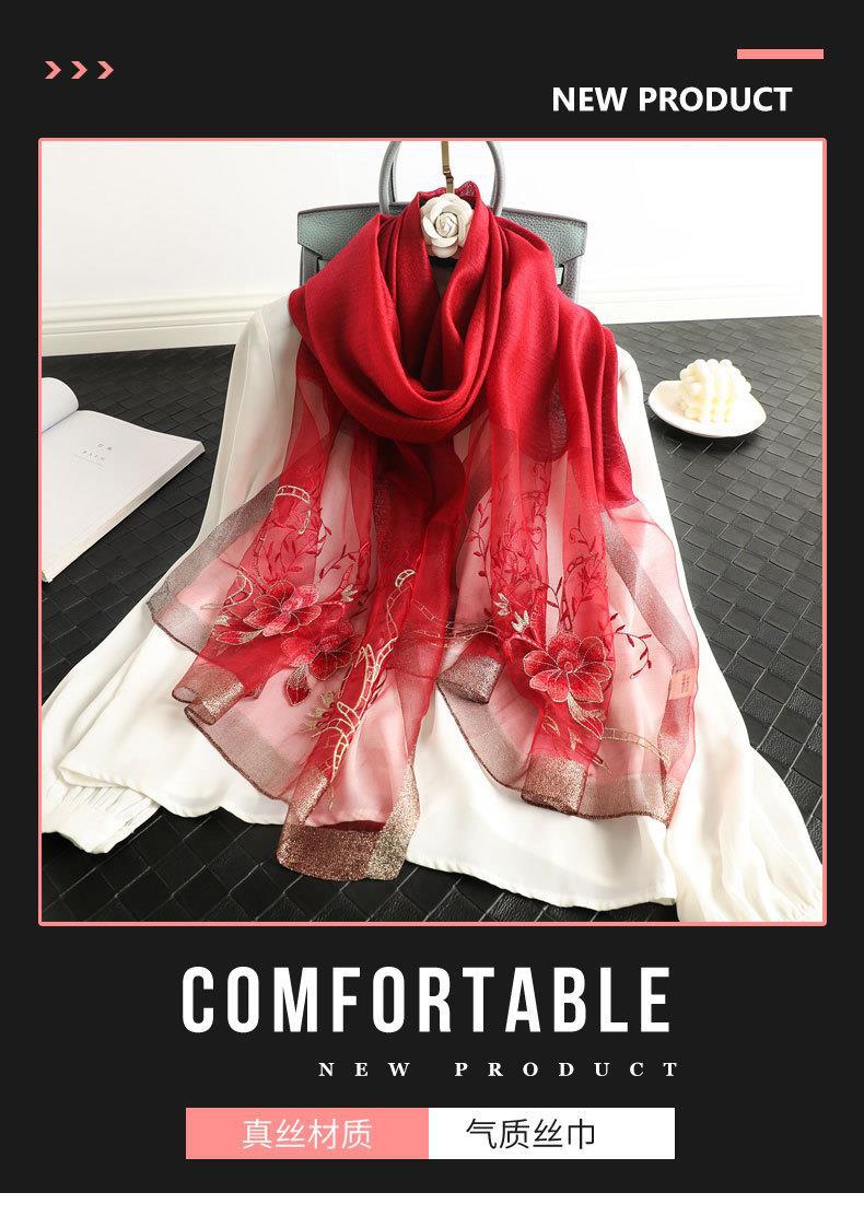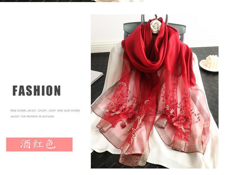 봄과 가을 새로운 자수 실크 울 스카프 여성의 우아한 올 매치 모란 실크 울 블렌드 자수 스카프 도매스토어 가기