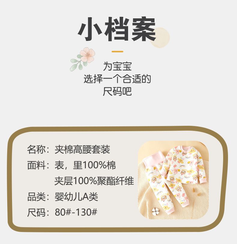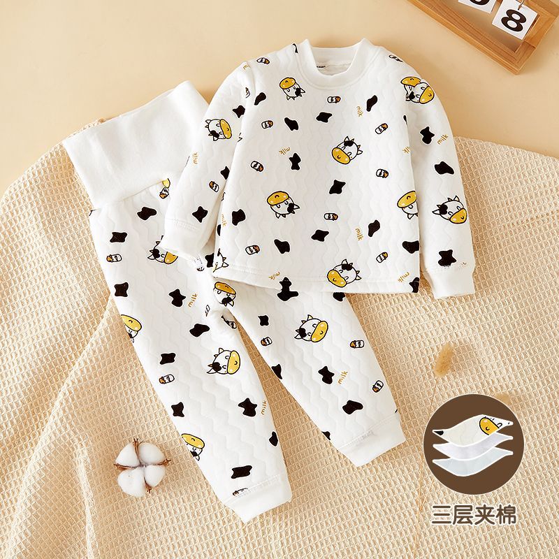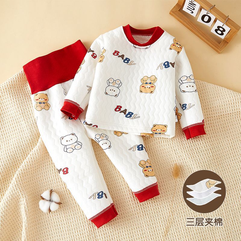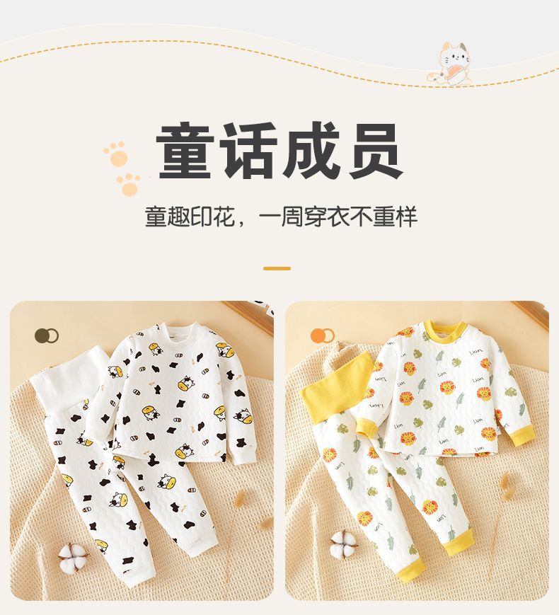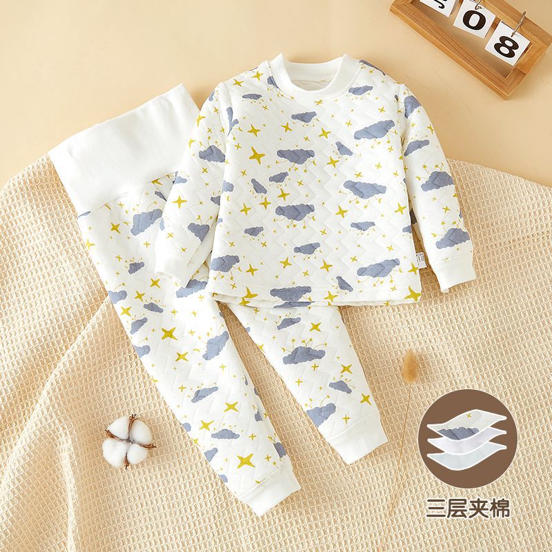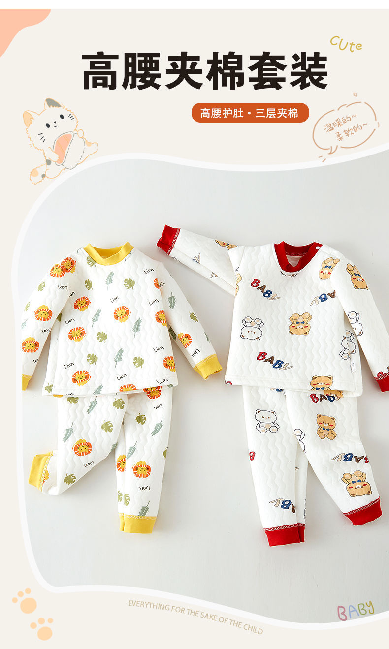 아기의 분할 세트 퀼트 봄 가을과 겨울 높은 허리 따뜻한 속옷 세트 소년 소녀스토어 가기
