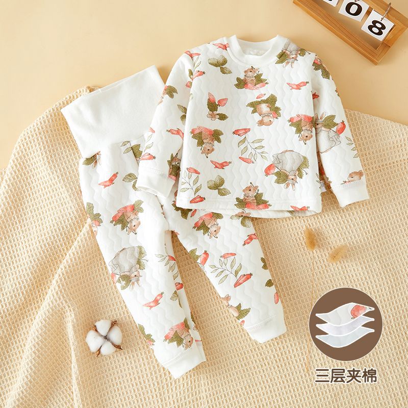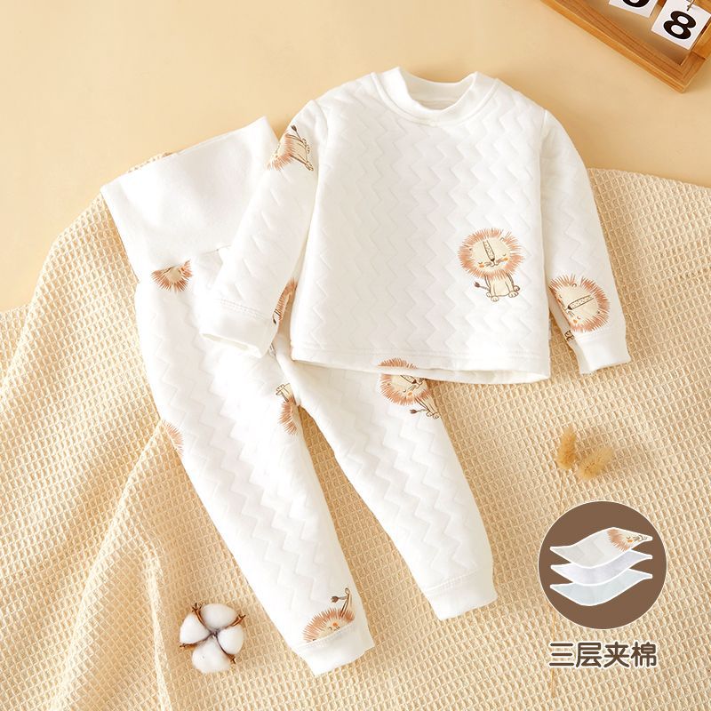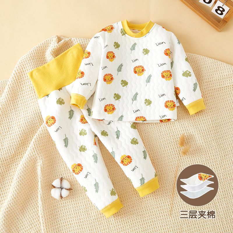 아기의 분할 세트 퀼트 봄 가을과 겨울 높은 허리 따뜻한 속옷 세트 소년 소녀
