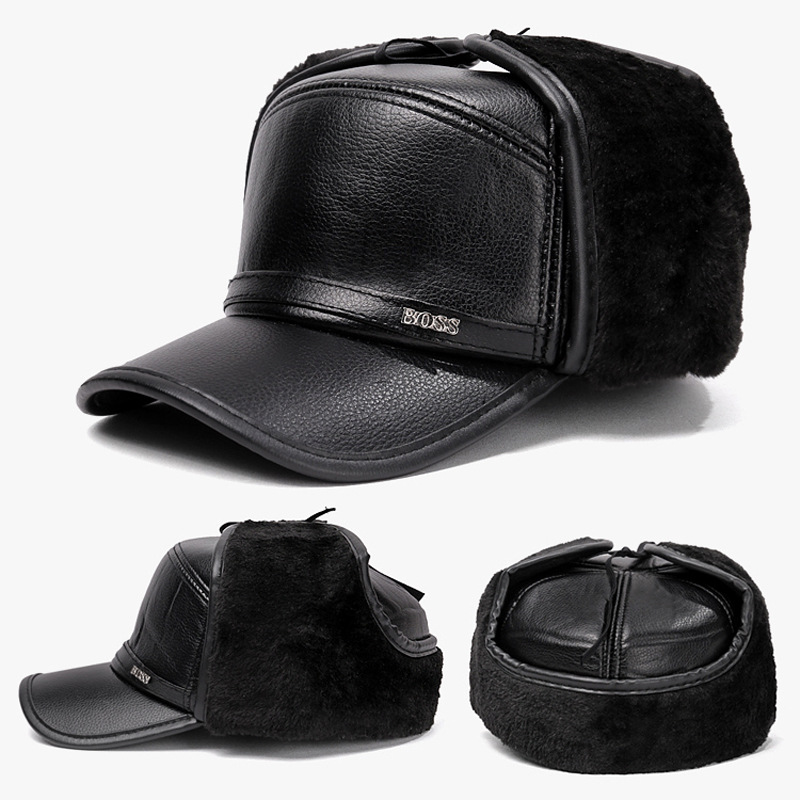 • 두꺼워진 귀보호대 [가죽챙/울 S라벨] 블랙