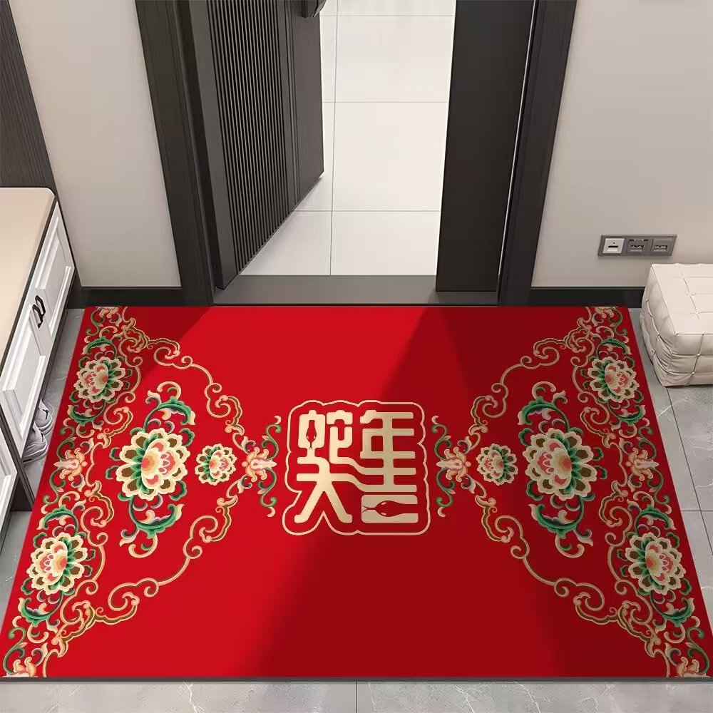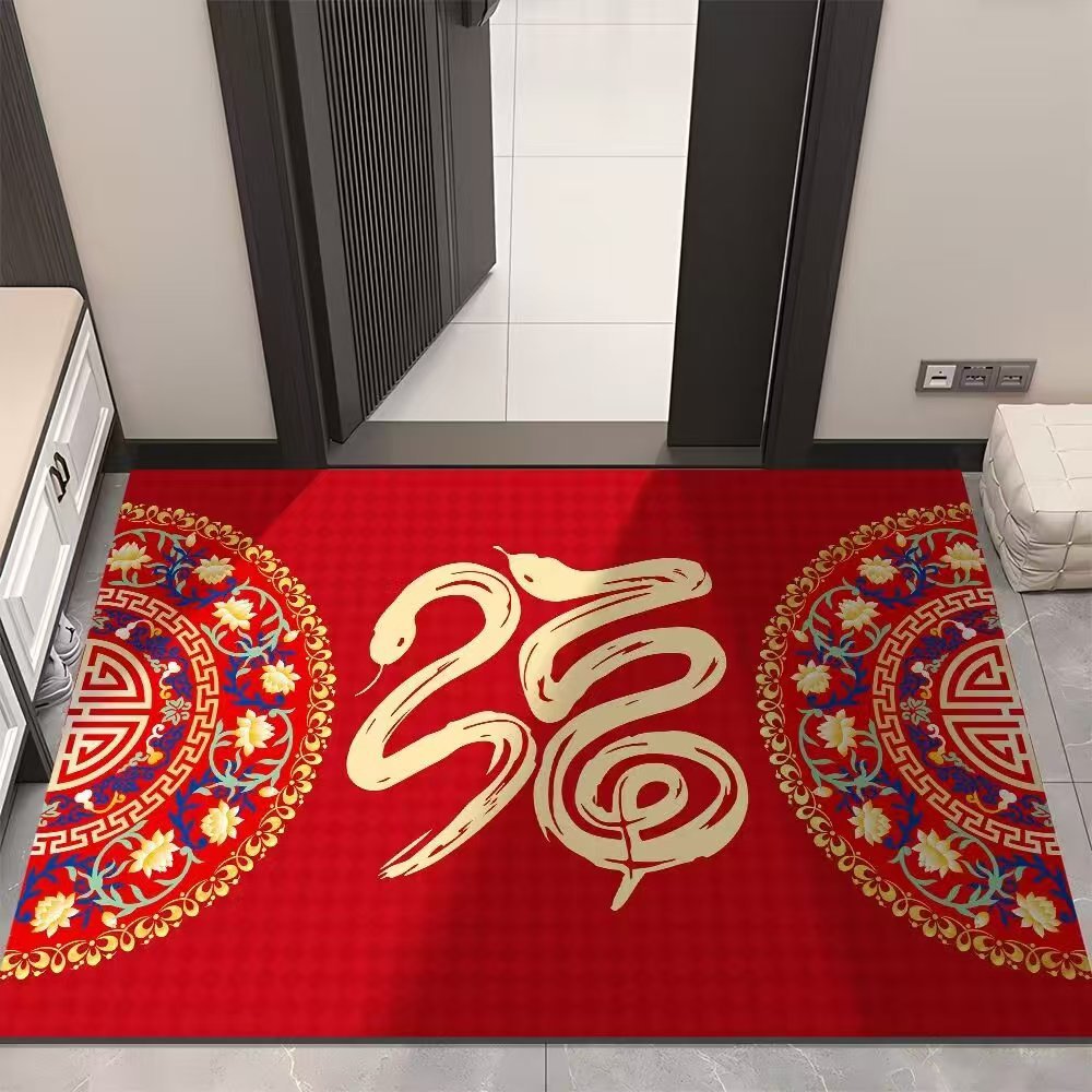 뱀 바닥 매트 홈 입구 문 붉은 축제 입구 문 매트 크리스탈 벨벳 비 슬립 더러운 방지 발 매트