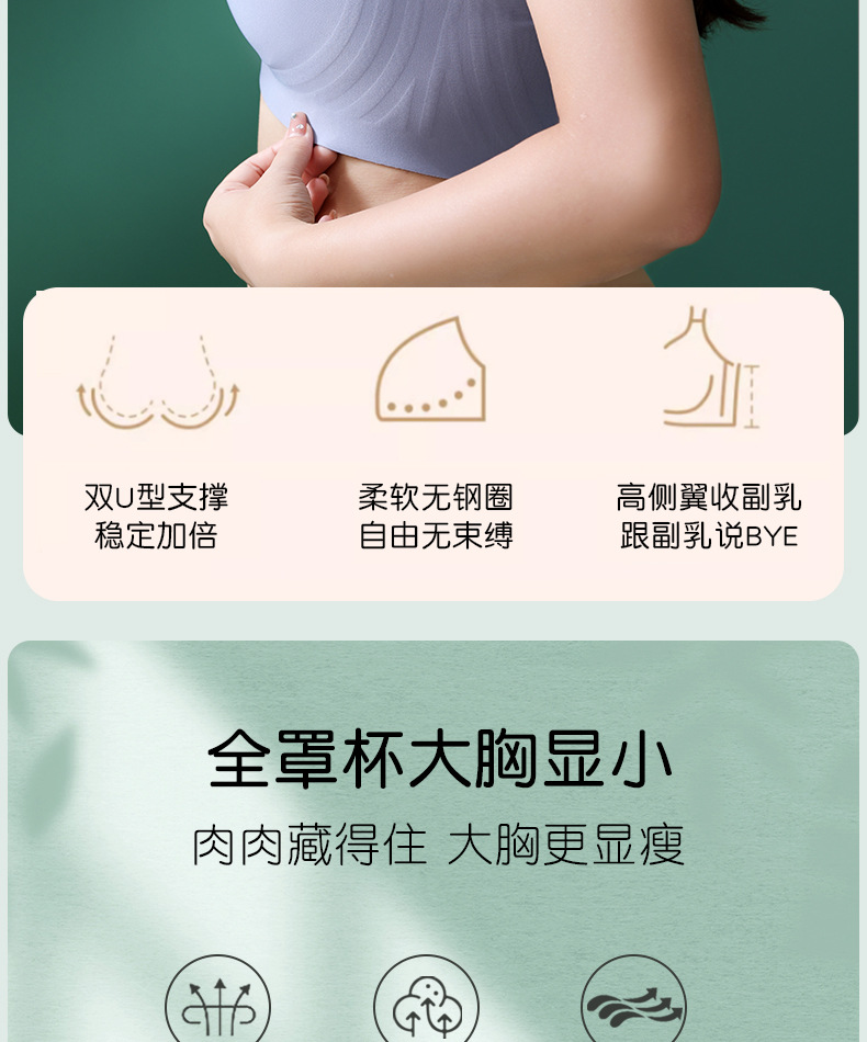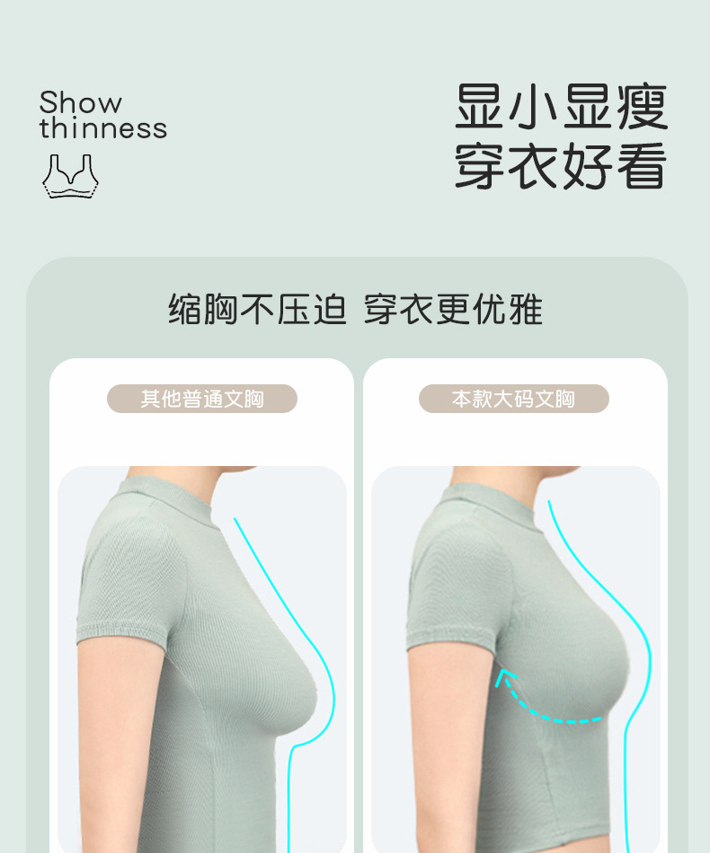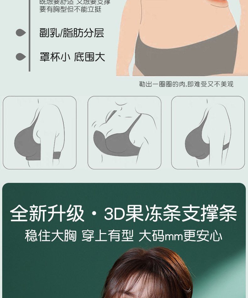 국경 간 비료 플러스 크기의 Traceless 플러스 사이즈 속옷 여성의 얇은 편안한 대형 가슴 작은 처짐 방지 림 방지 브래지어스토어 가기