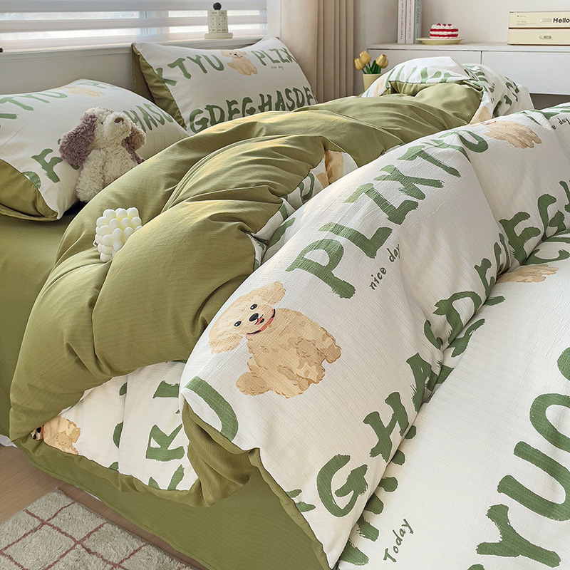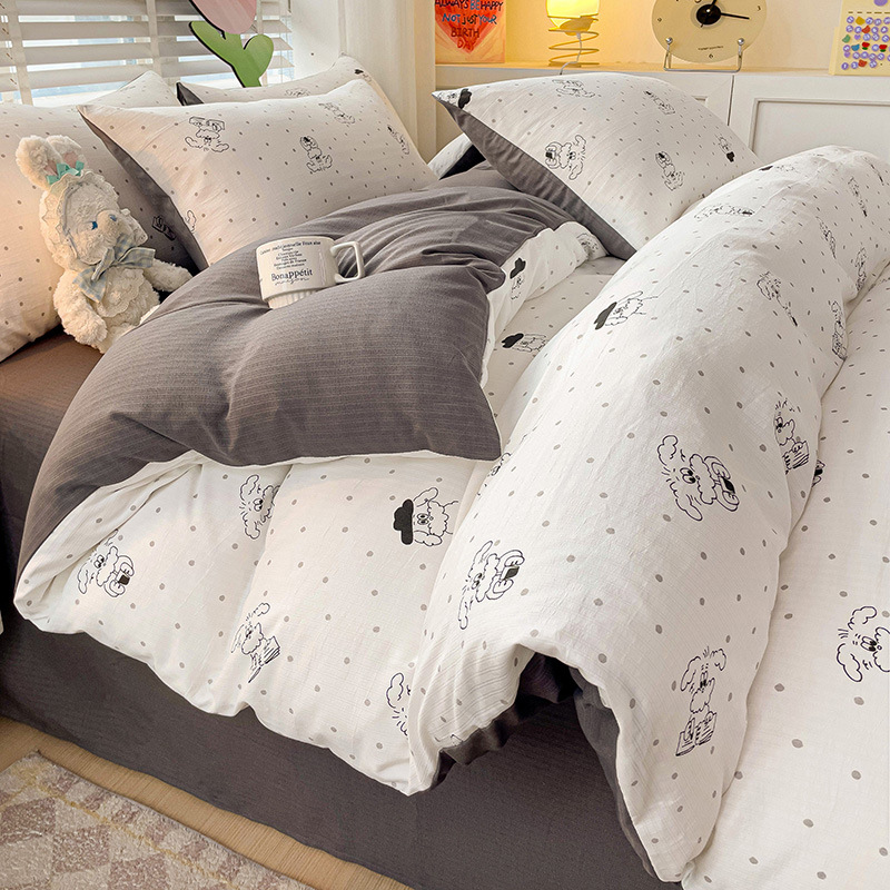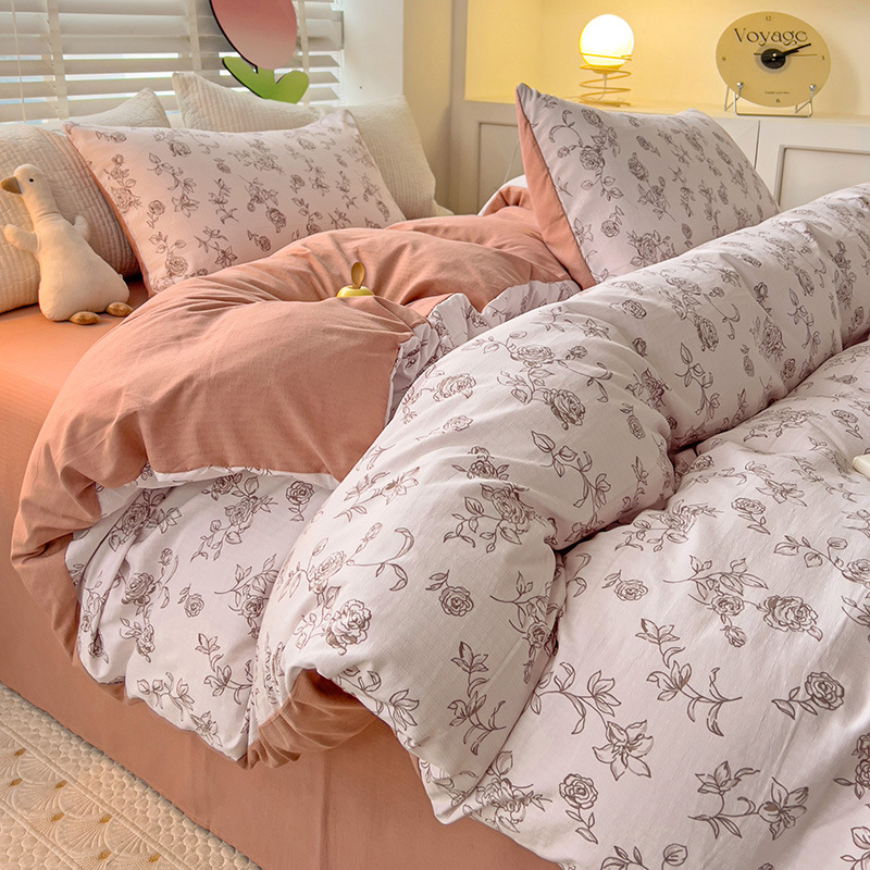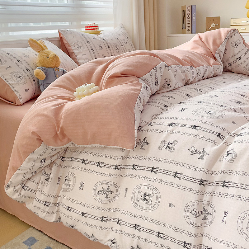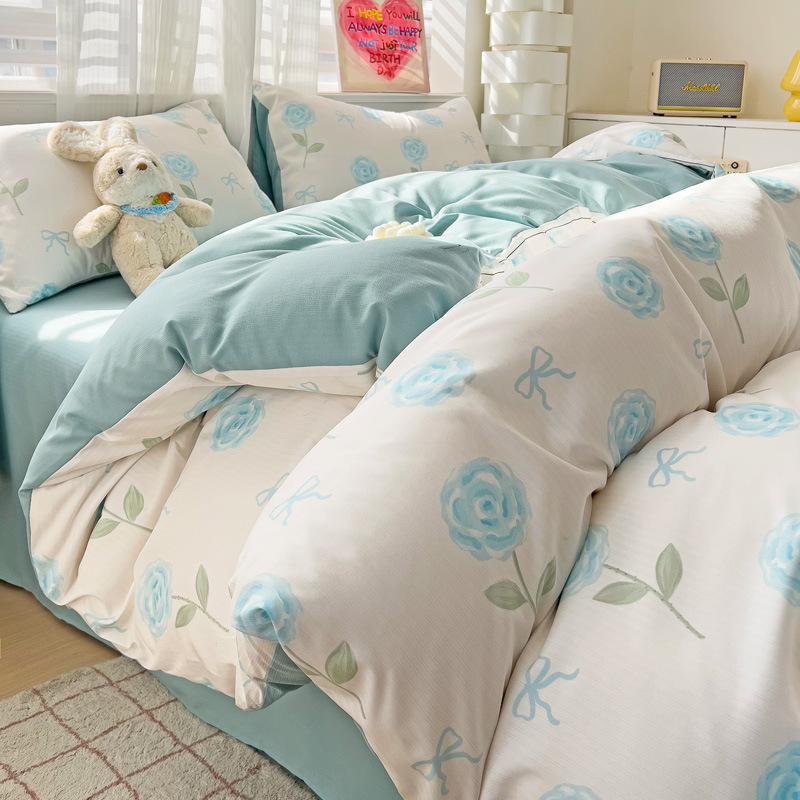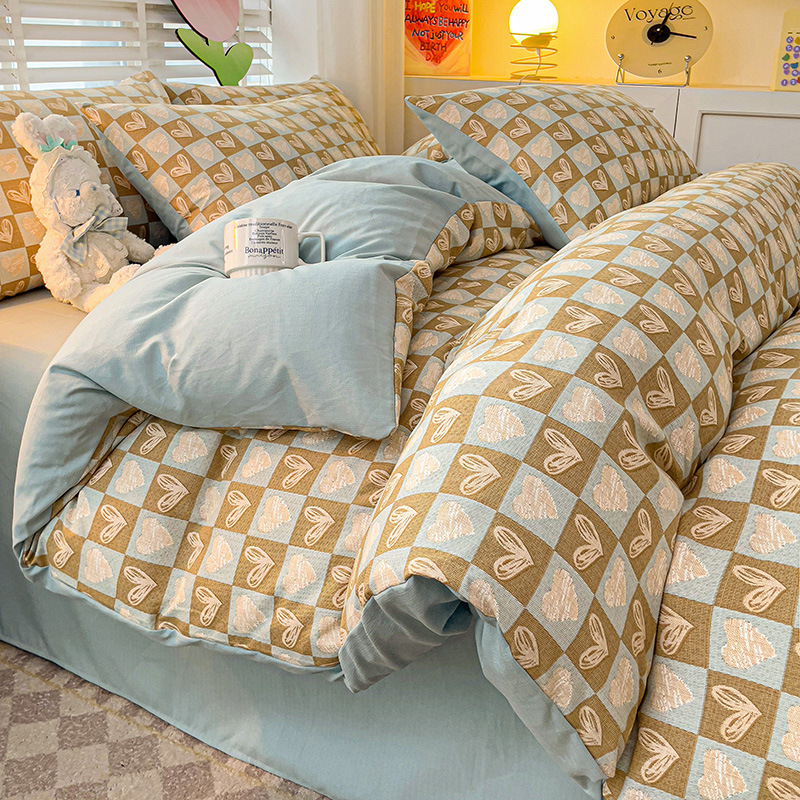 순면 자카드 더블 레이어 원사 Nantong 클래스 A 순면 겨울 고급 4피스 침대 시트 및 이불 커버 기숙사 홈스토어 가기