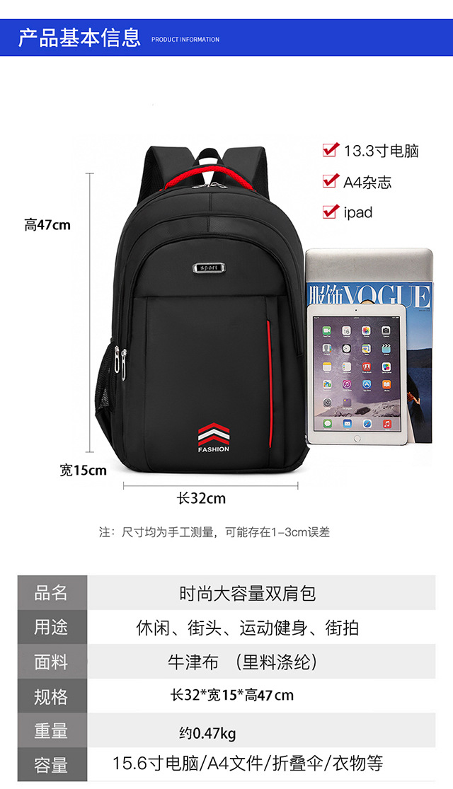 배낭 남성 대용량 레저 여행 여성 고등학교 중학교 학생 학생 컴퓨터 배낭