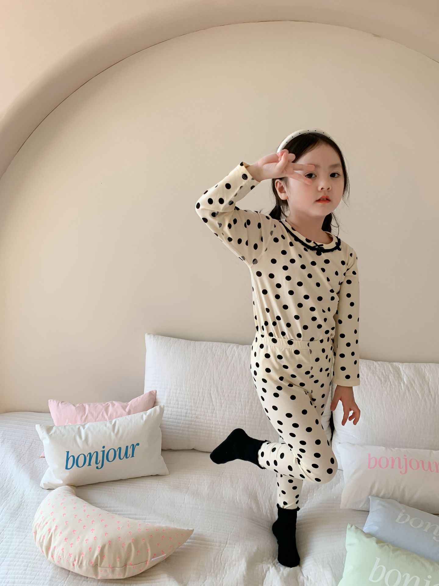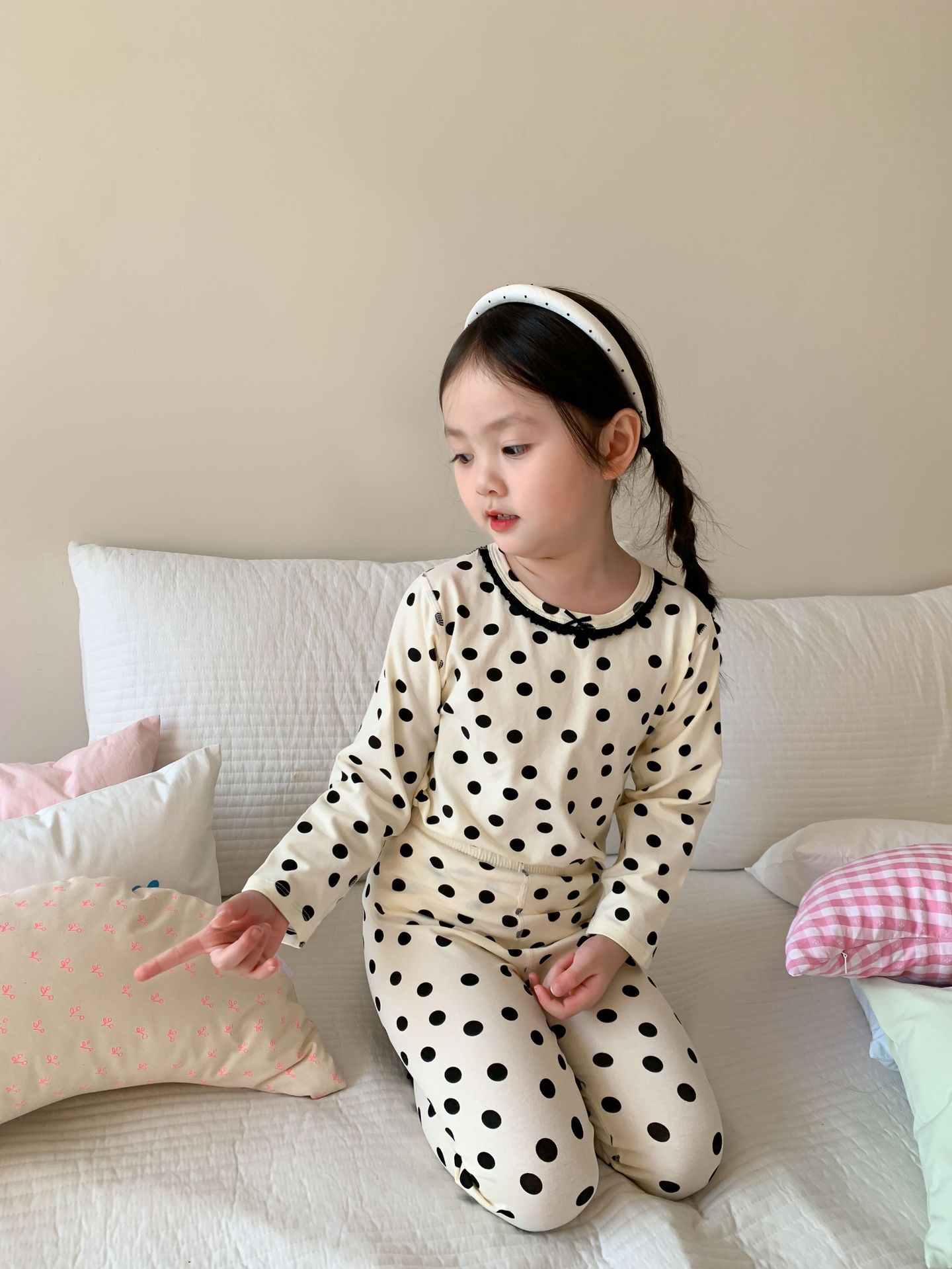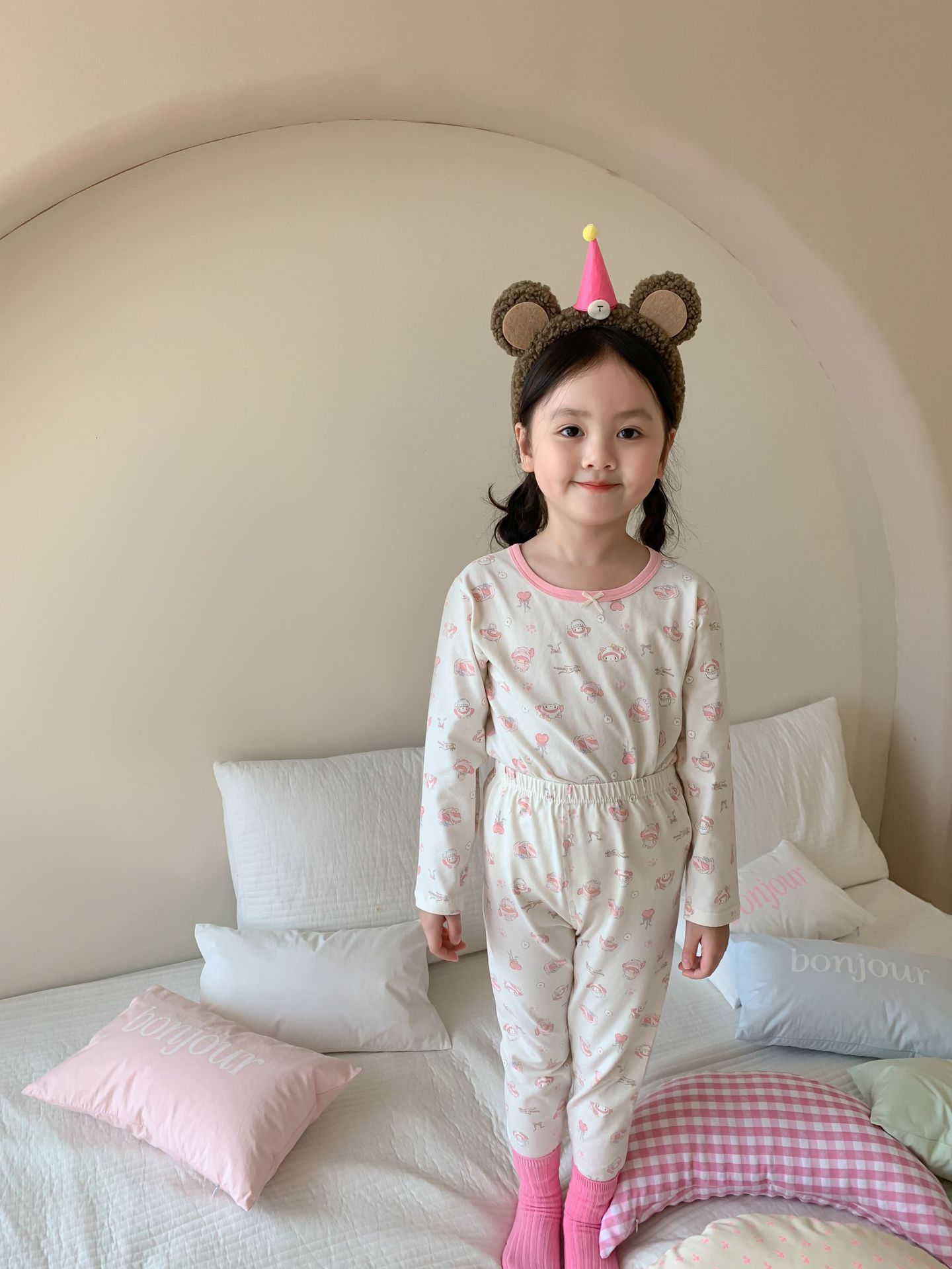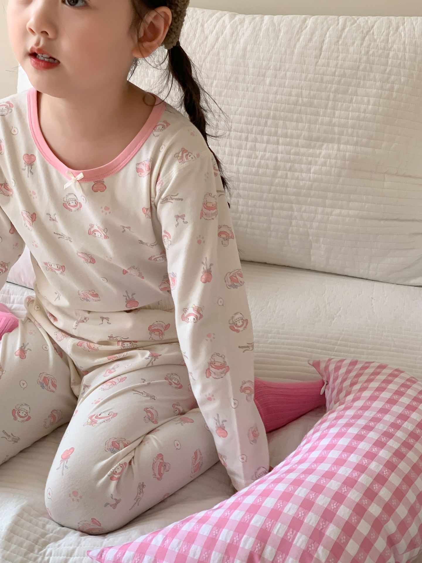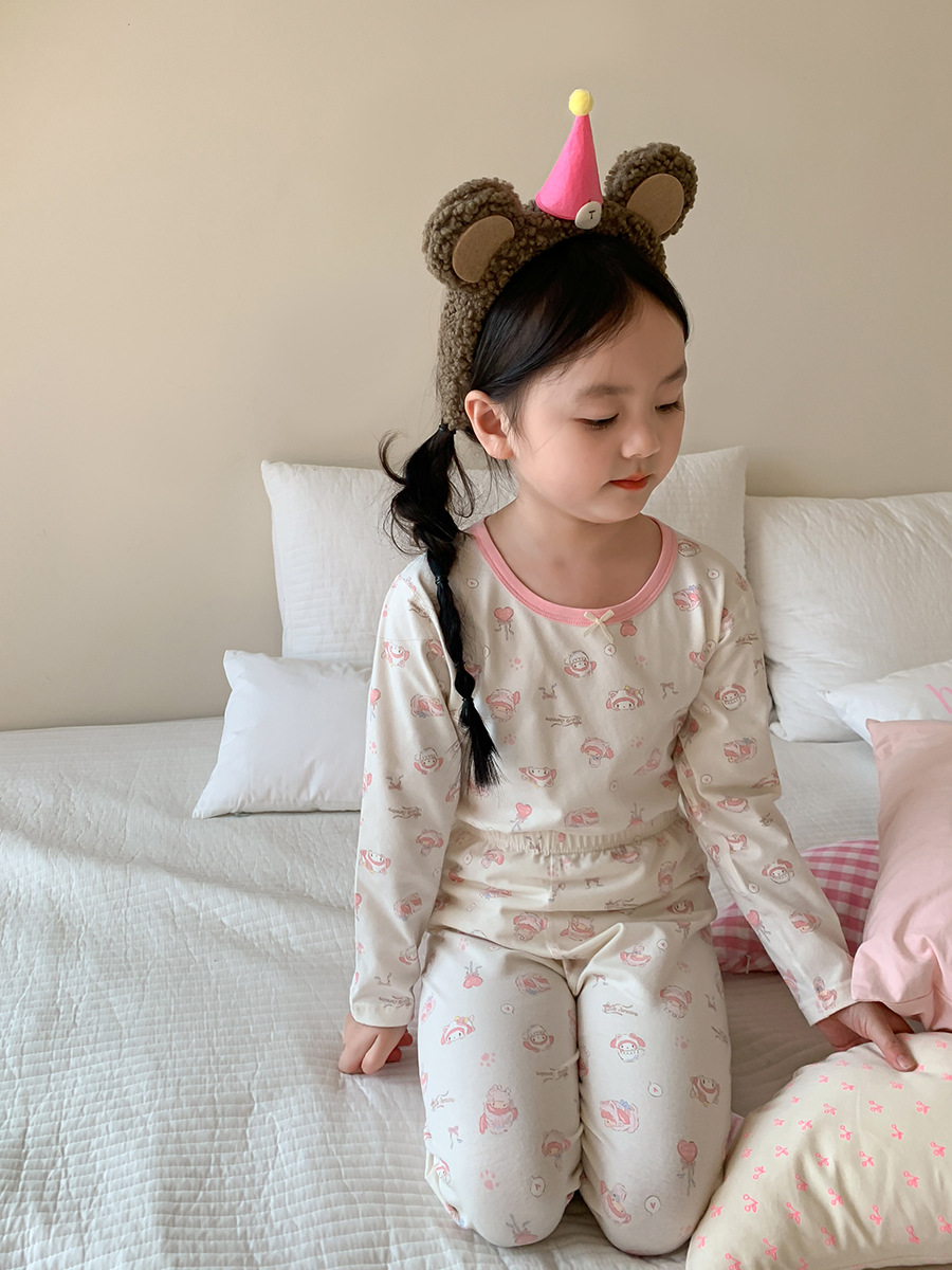 웨이무 아동복 여아 홈웨어 세트 2024 가을 어린이 귀여운 캐주얼 잠옷 가을옷 여자 아기 옷스토어 가기