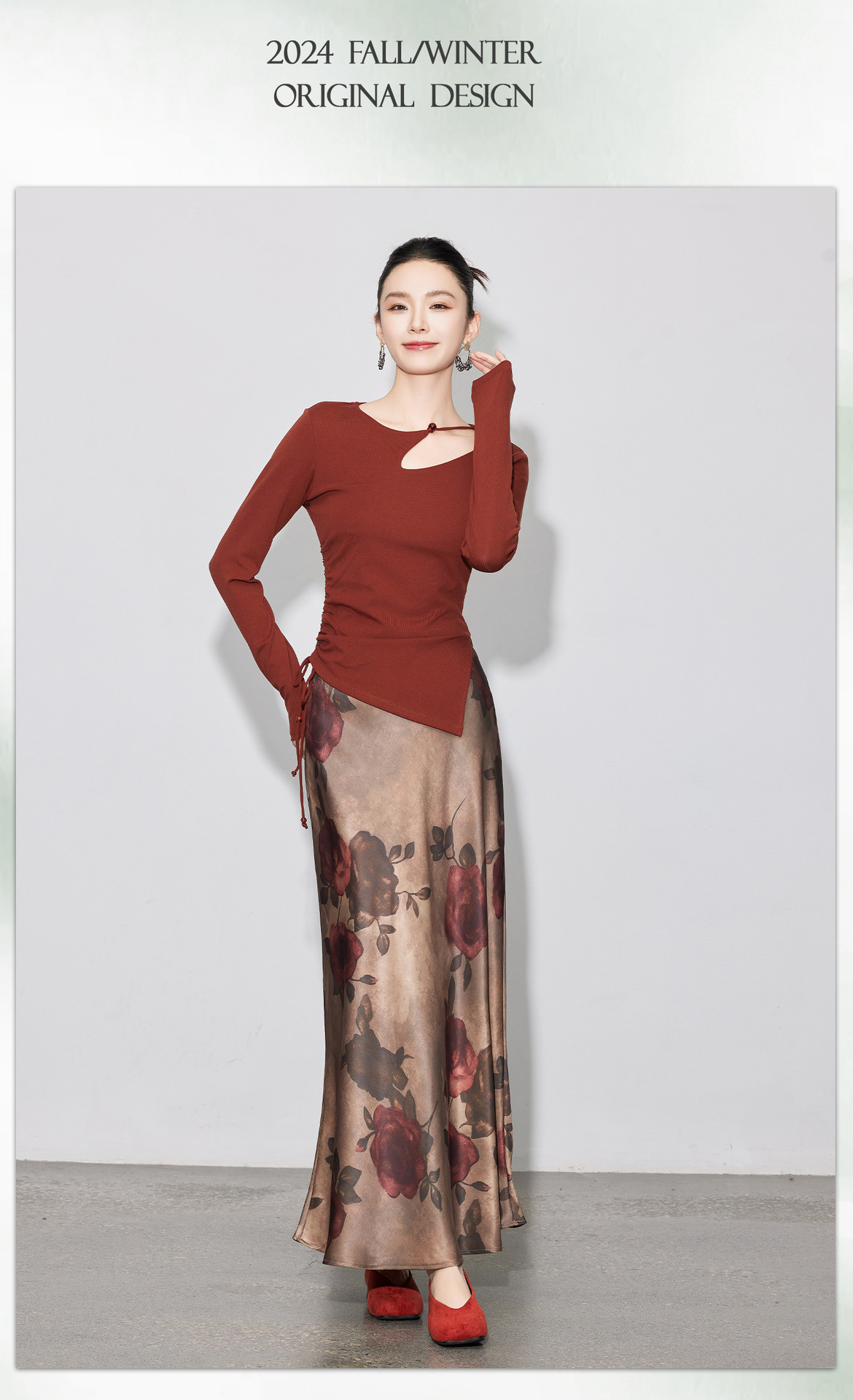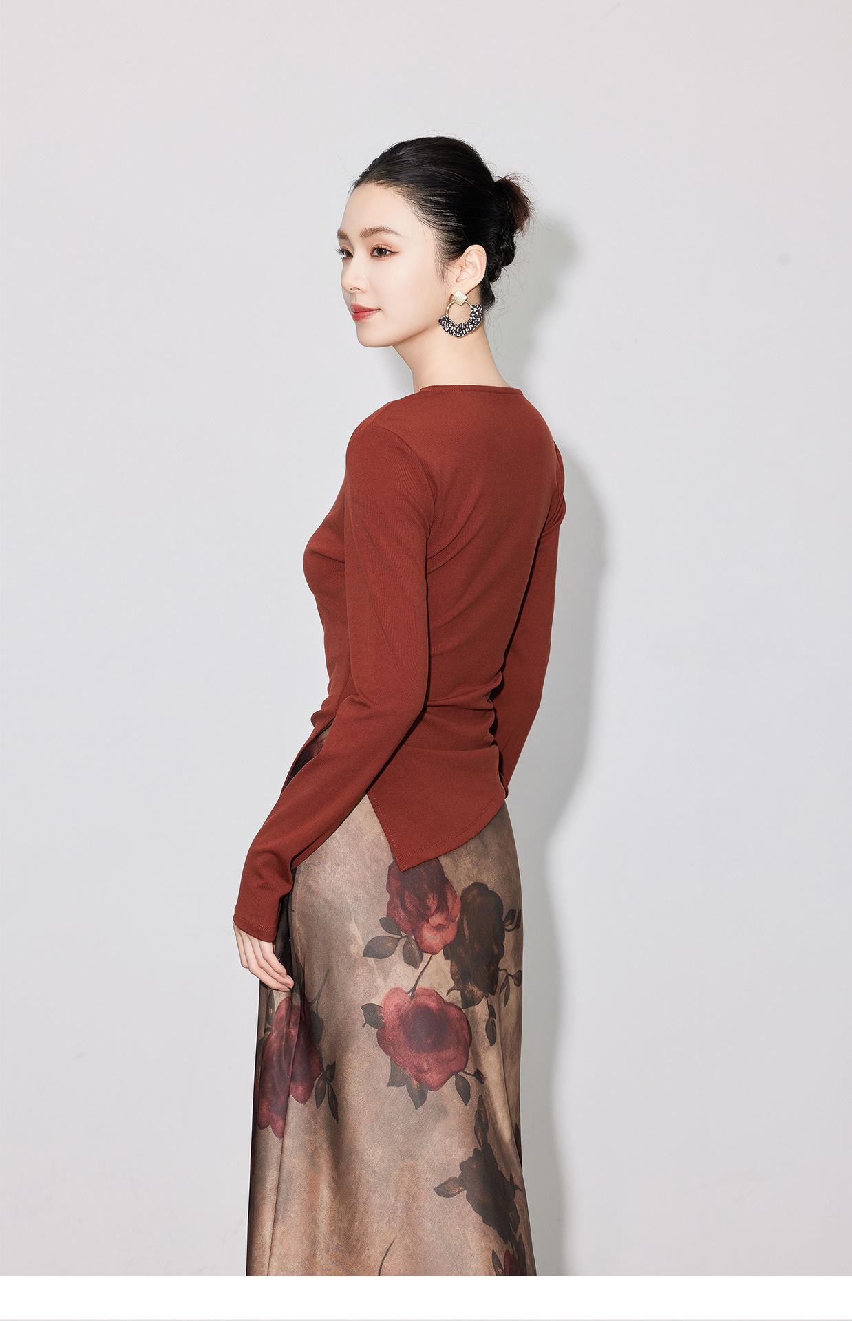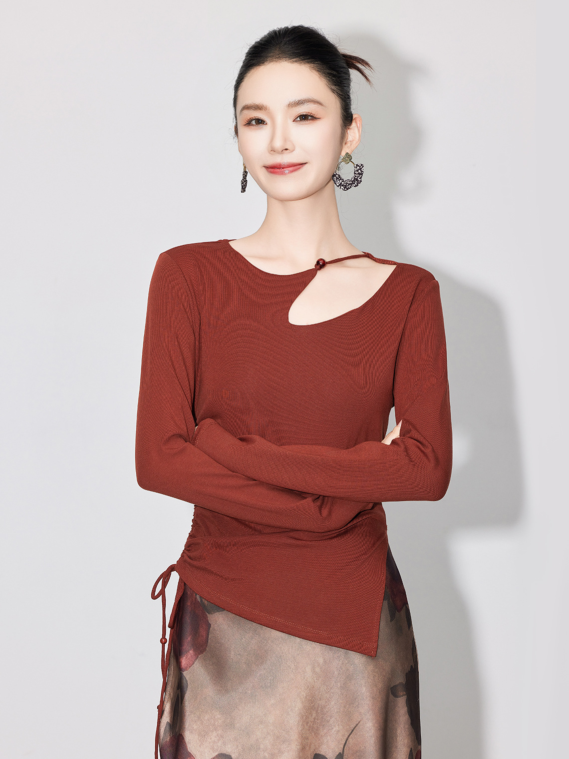 【知合堂】여성용 레이스업 라운드넥 니트 스웨터, 불규칙 레트로 슬림핏 다용도 탑, 긴팔, 예술적인 레트로 스타일