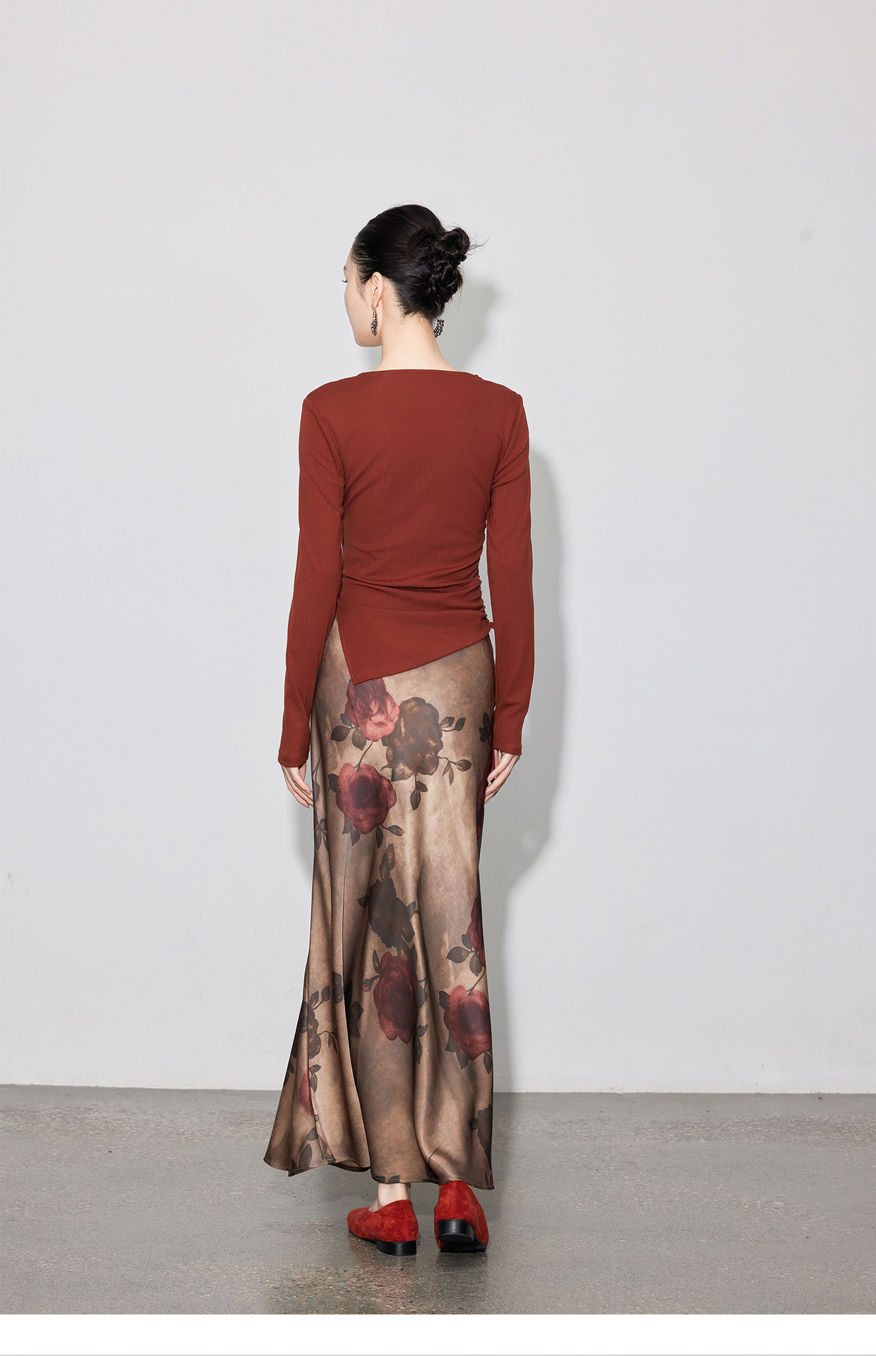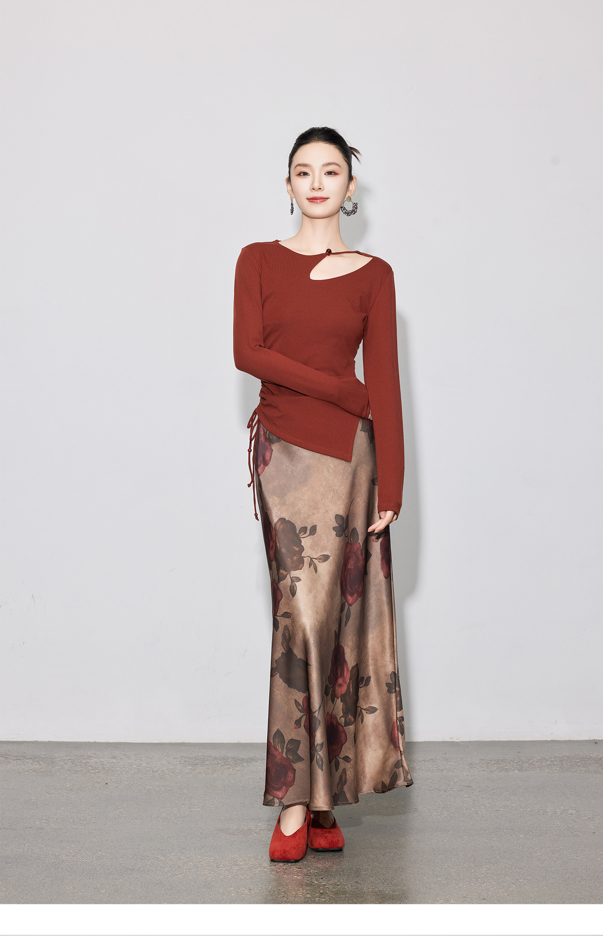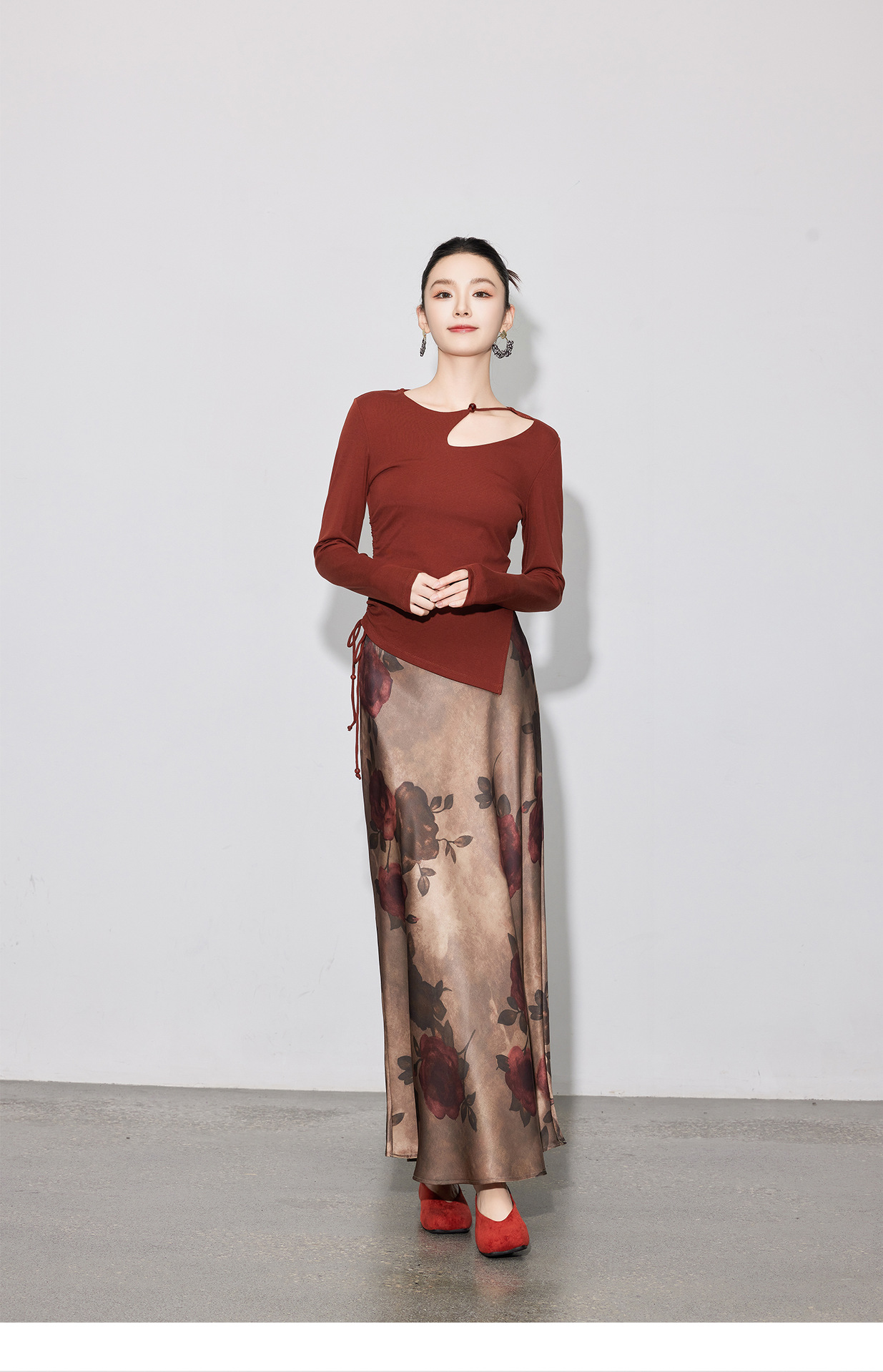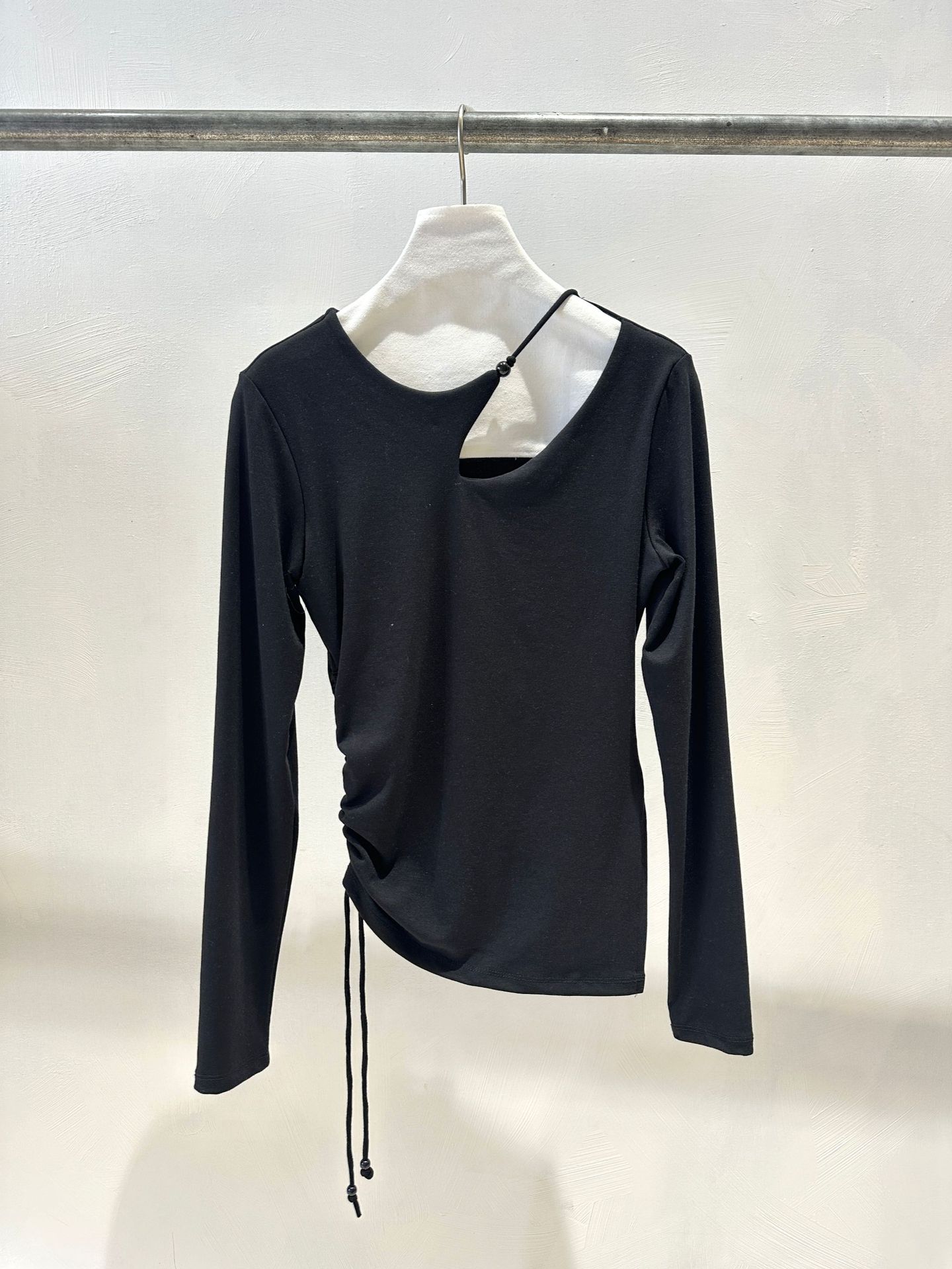 【知合堂】여성용 레이스업 라운드넥 니트 스웨터, 불규칙 레트로 슬림핏 다용도 탑, 긴팔, 예술적인 레트로 스타일