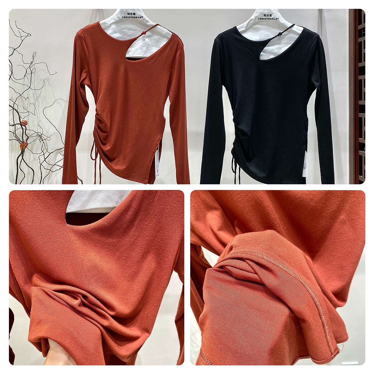 【知合堂】여성용 레이스업 라운드넥 니트 스웨터, 불규칙 레트로 슬림핏 다용도 탑, 긴팔, 예술적인 레트로 스타일스토어 가기