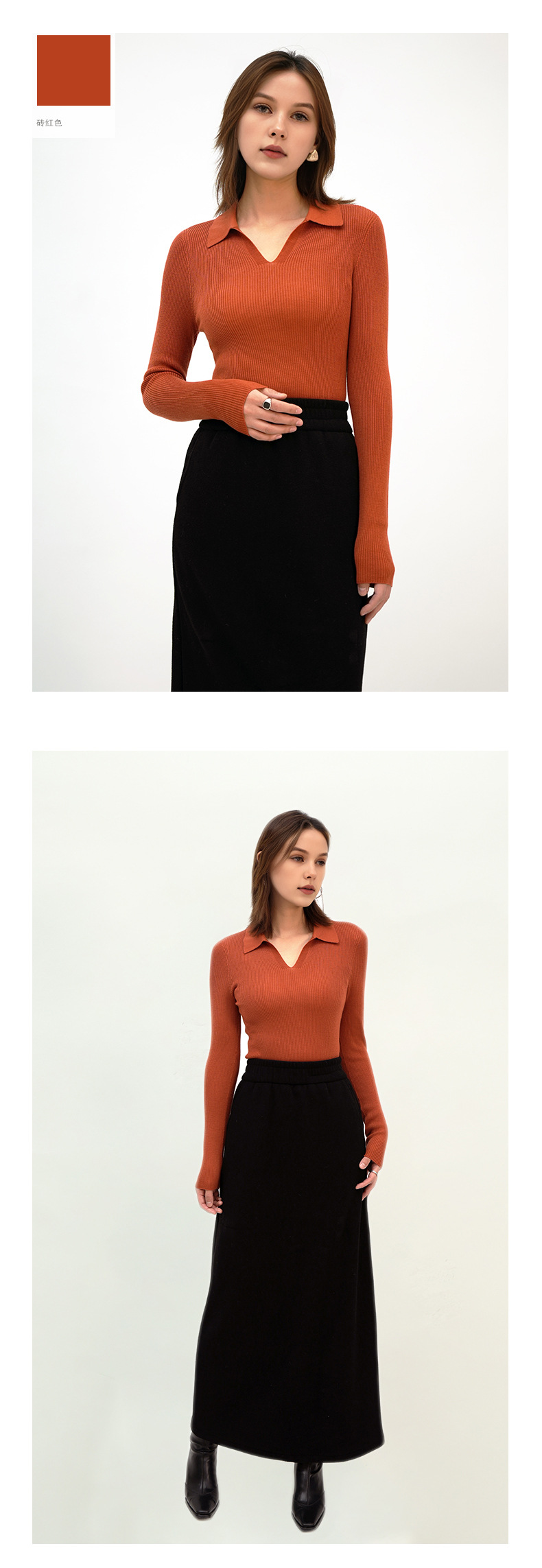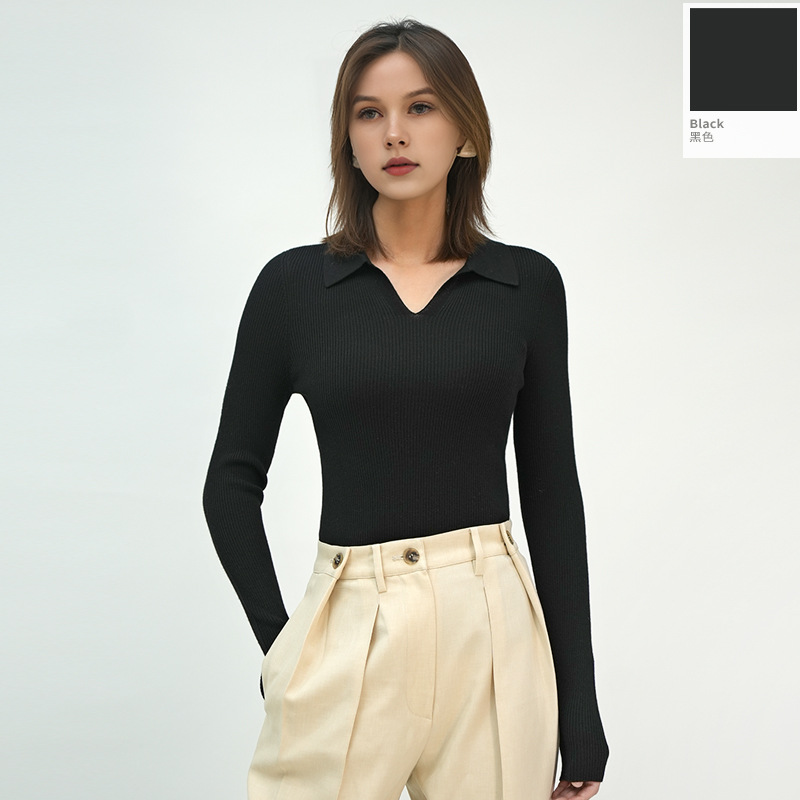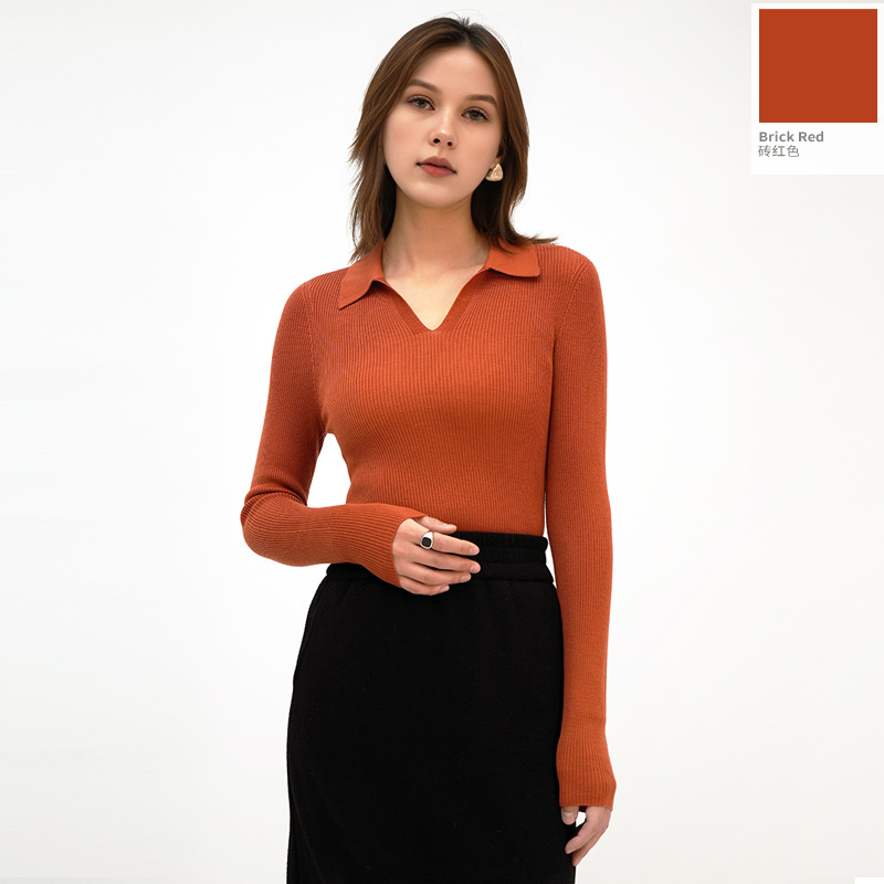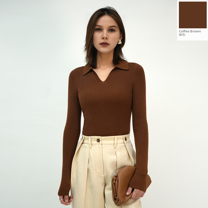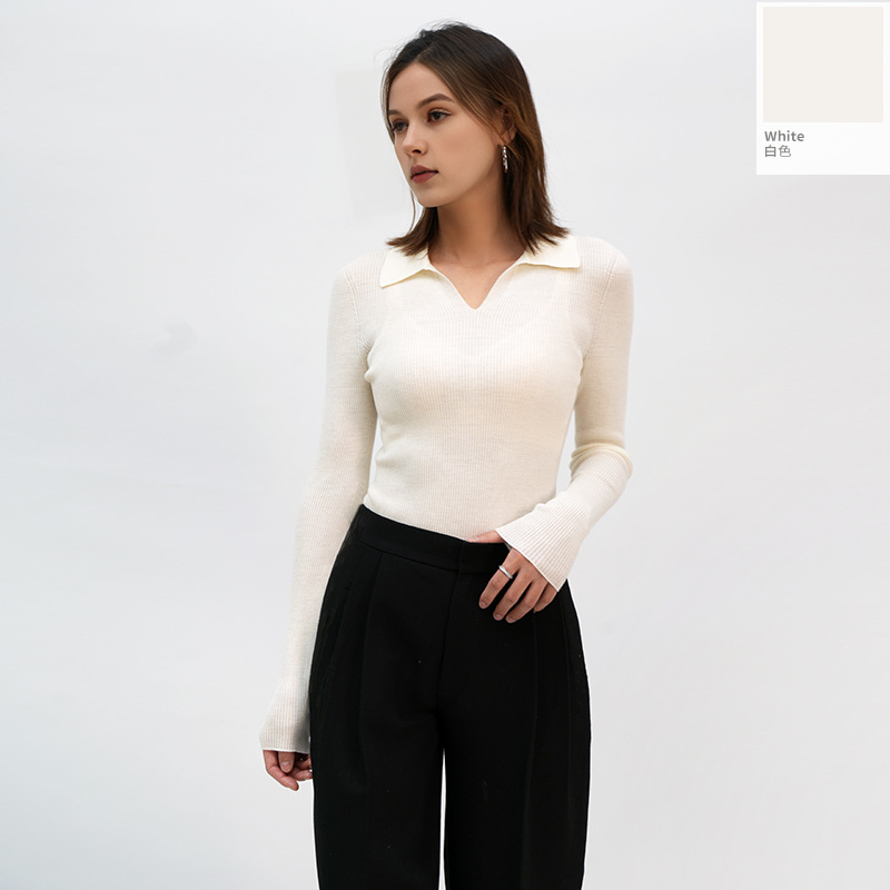 2025 봄/가을 신상품 OL 스타일 라펠 100% 울 니트웨어 18니트 부드럽고 피부 친화적인 다용도 폴로 여성용