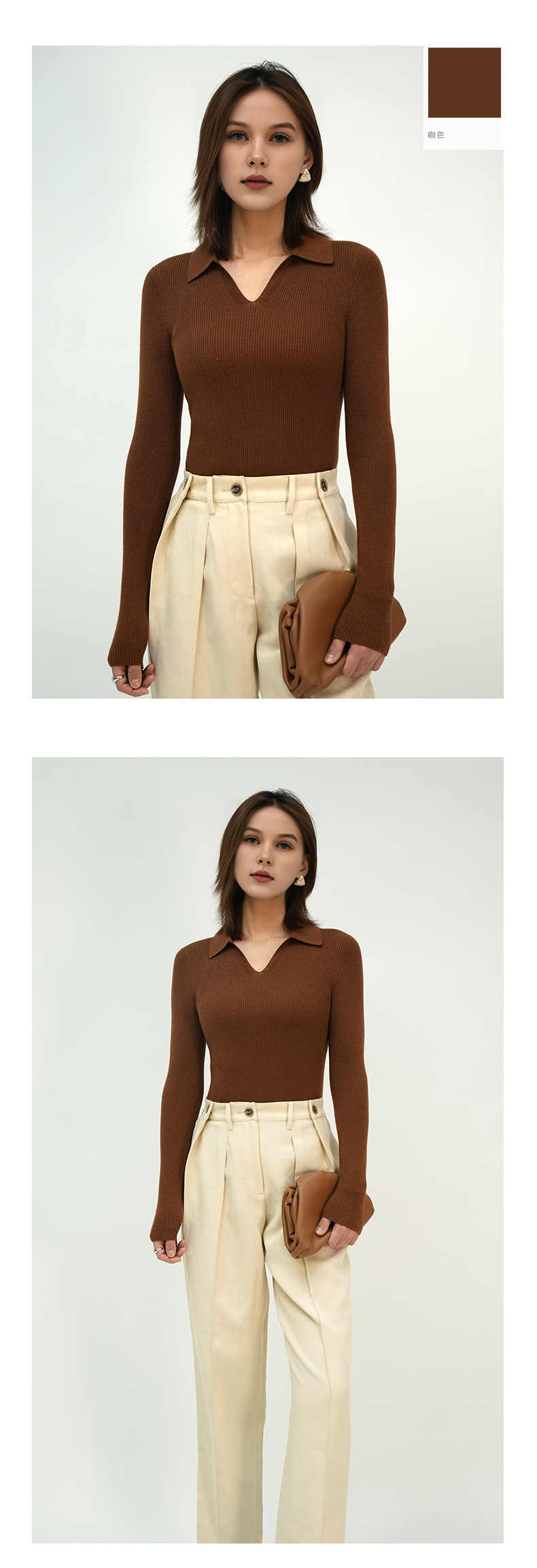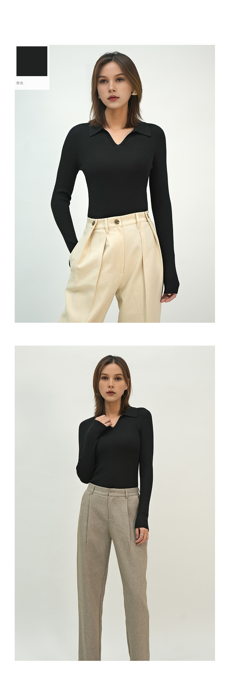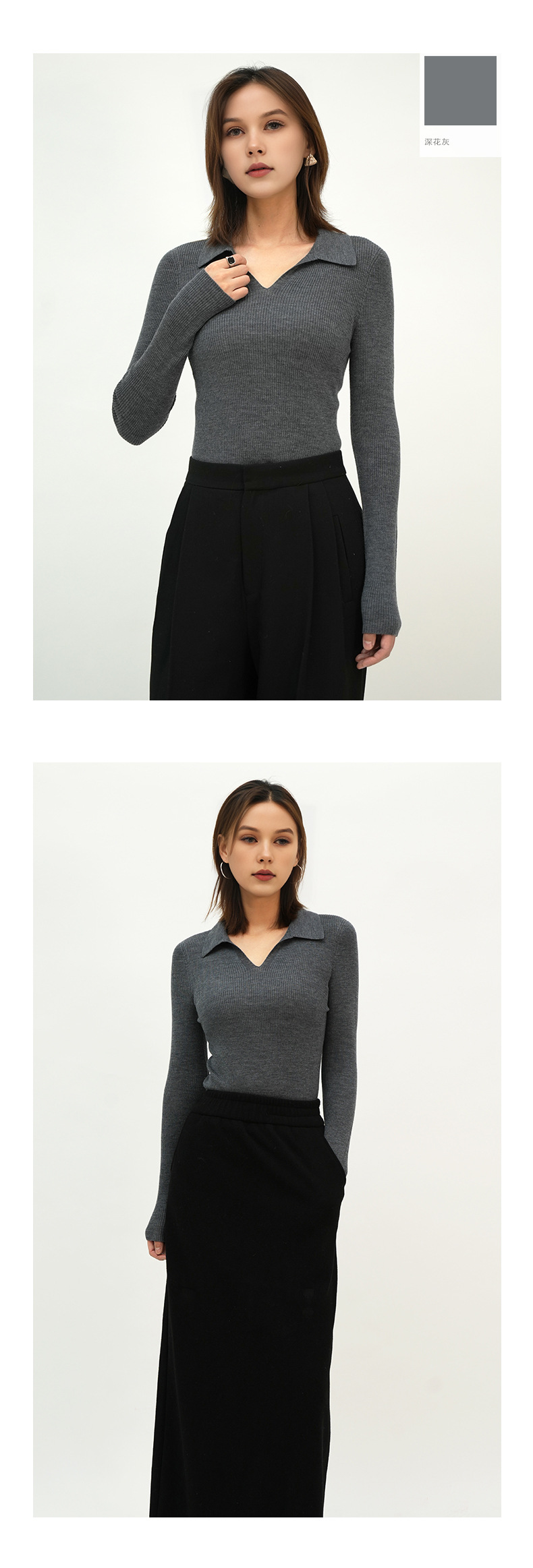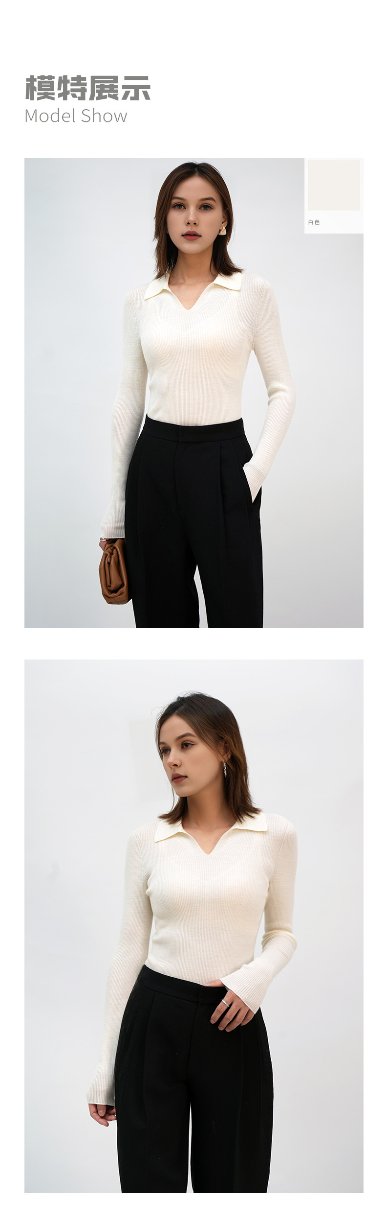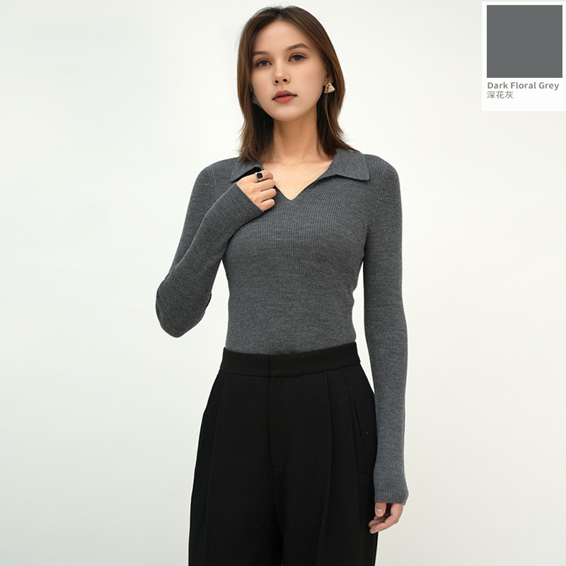 2025 봄/가을 신상품 OL 스타일 라펠 100% 울 니트웨어 18니트 부드럽고 피부 친화적인 다용도 폴로 여성용스토어 가기
