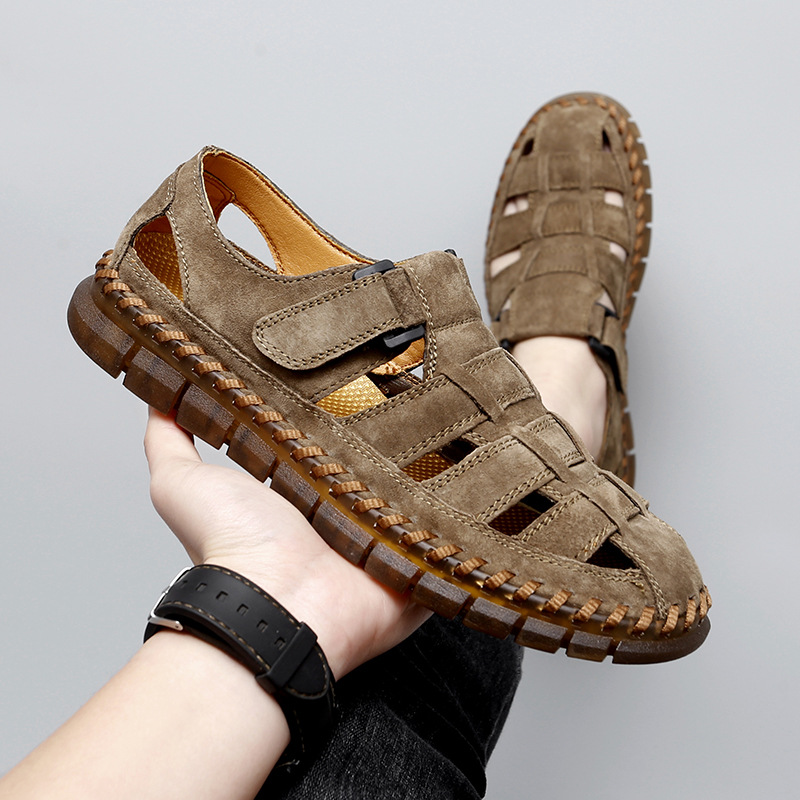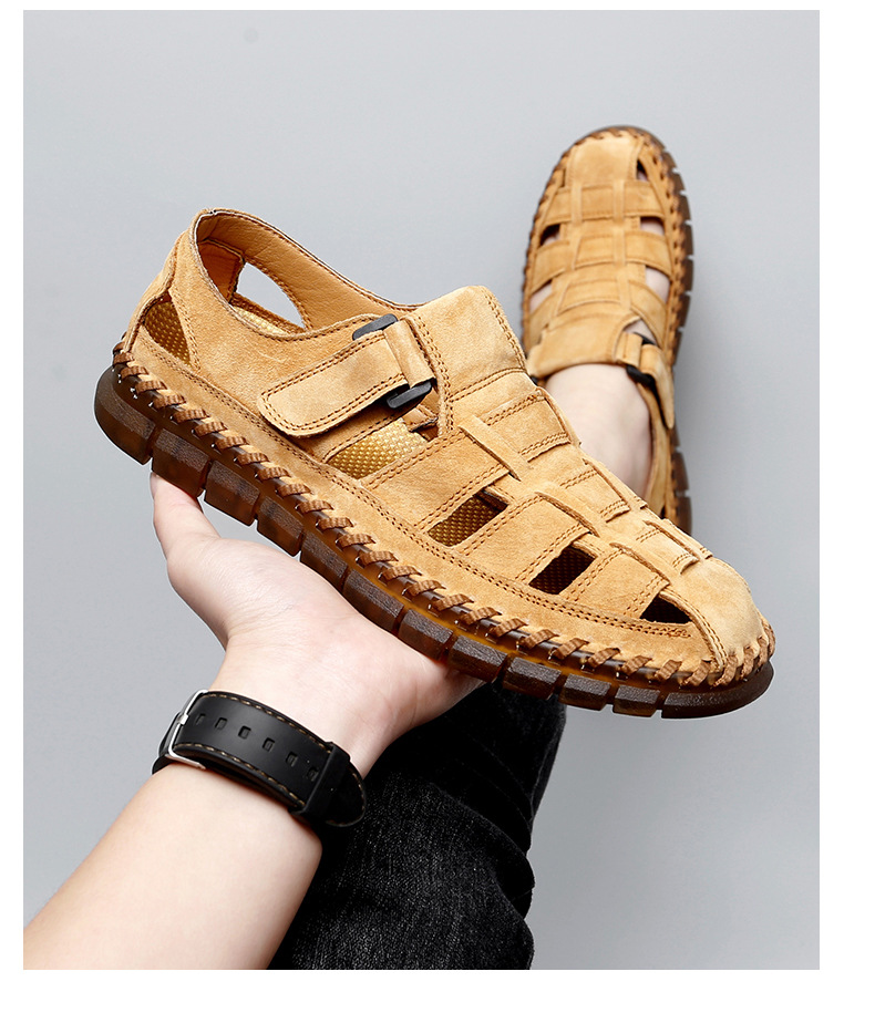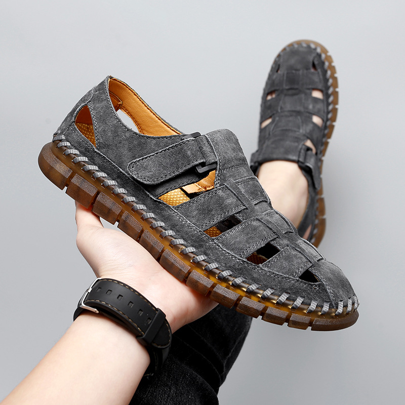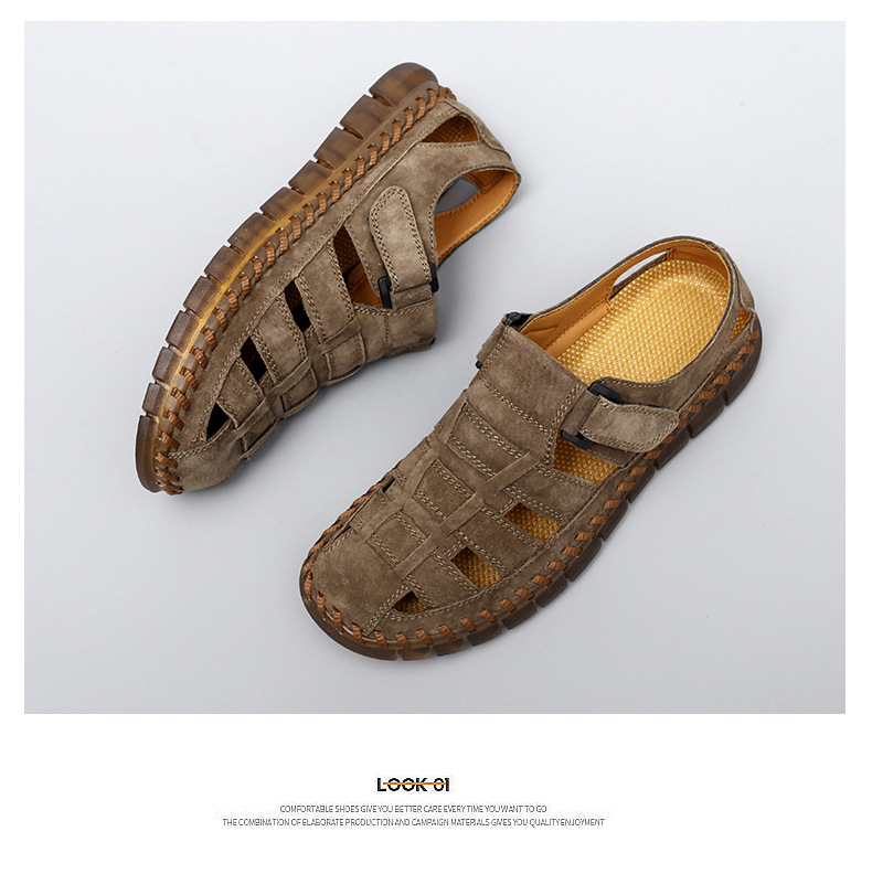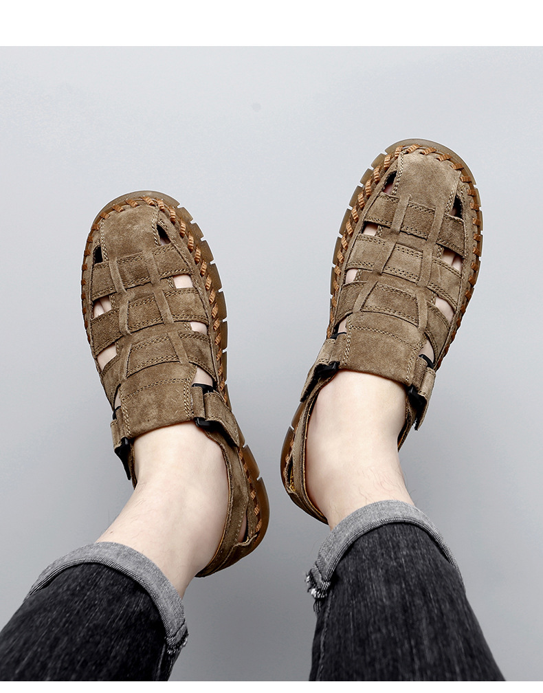 국경 간 남성 샌들 정품 가죽 비치 샌들 빈티지 여름 수제 플러스 사이즈 남성 샌들 캐주얼 수제 샌들