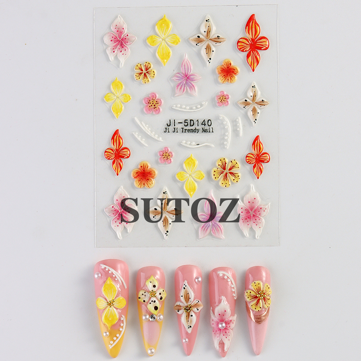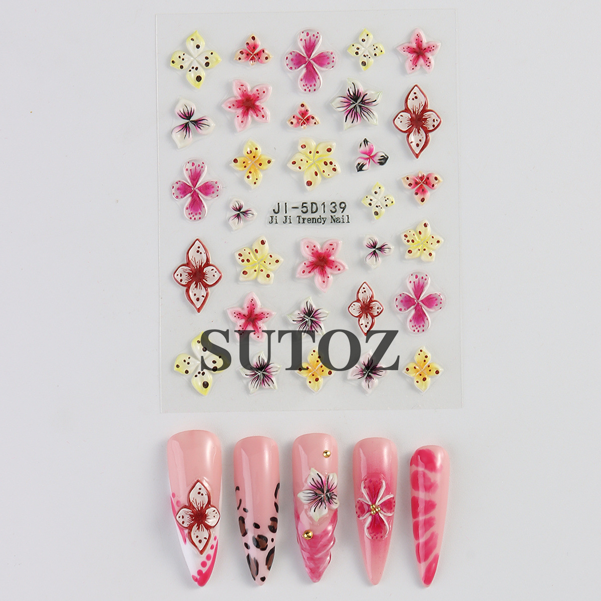 2024 새로운 5D 구호 네일 아트 스티커 히비스커스 꽃 히비스커스 꽃 네일 백 접착 스티커를 통해 복고풍 3 차원 얼음