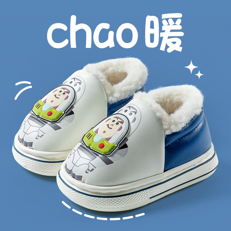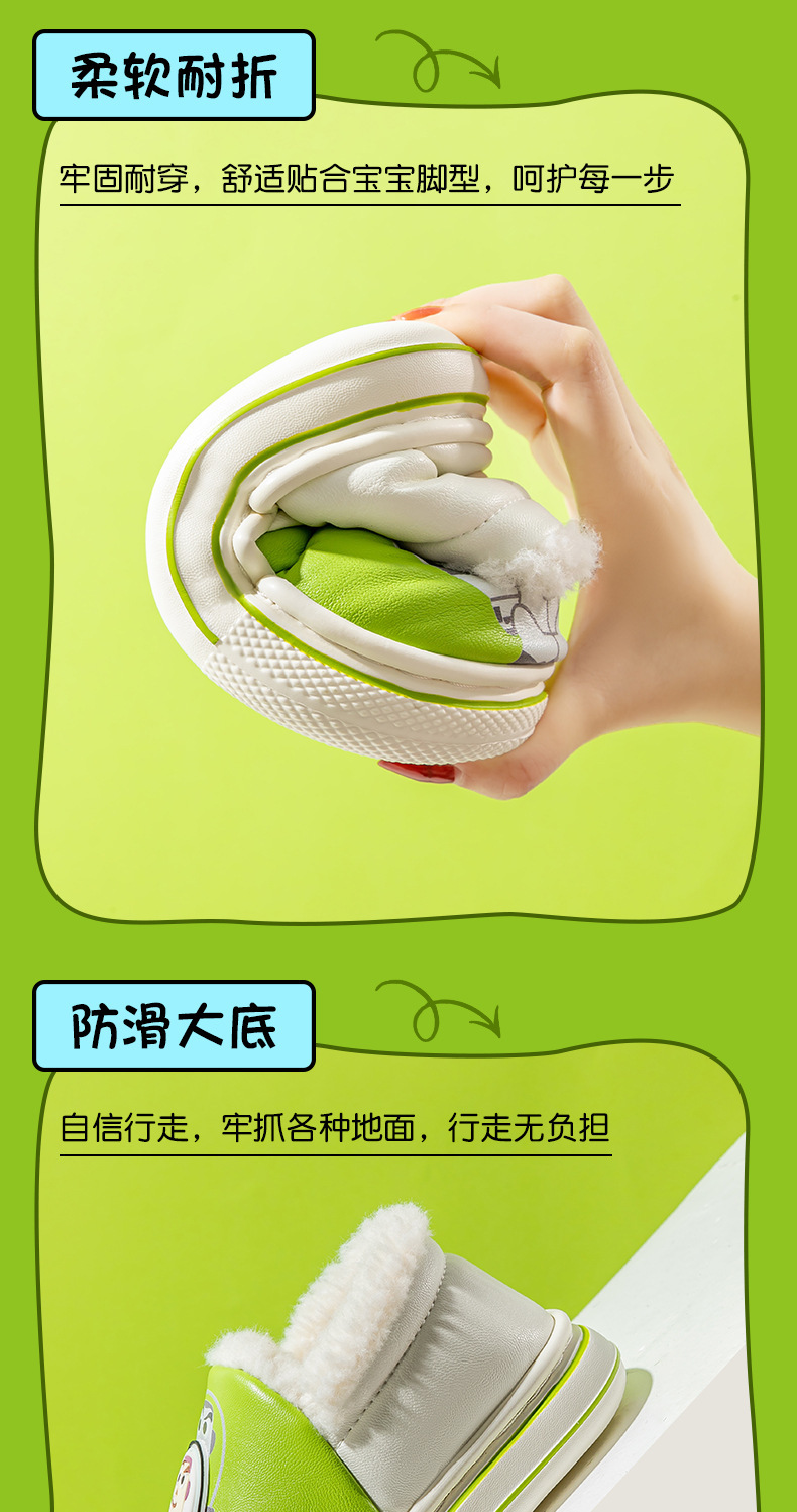 Qidan 신발 공장 어린이 면 슬리퍼 가을 및 겨울 방 추가 벨벳 따뜻한 방수 미끄럼 방지 아기 외부 가방 발 뒤꿈치 코튼 신발스토어 가기