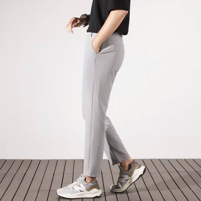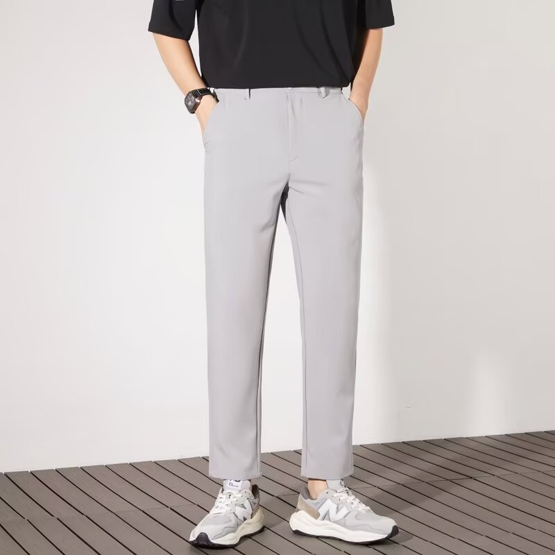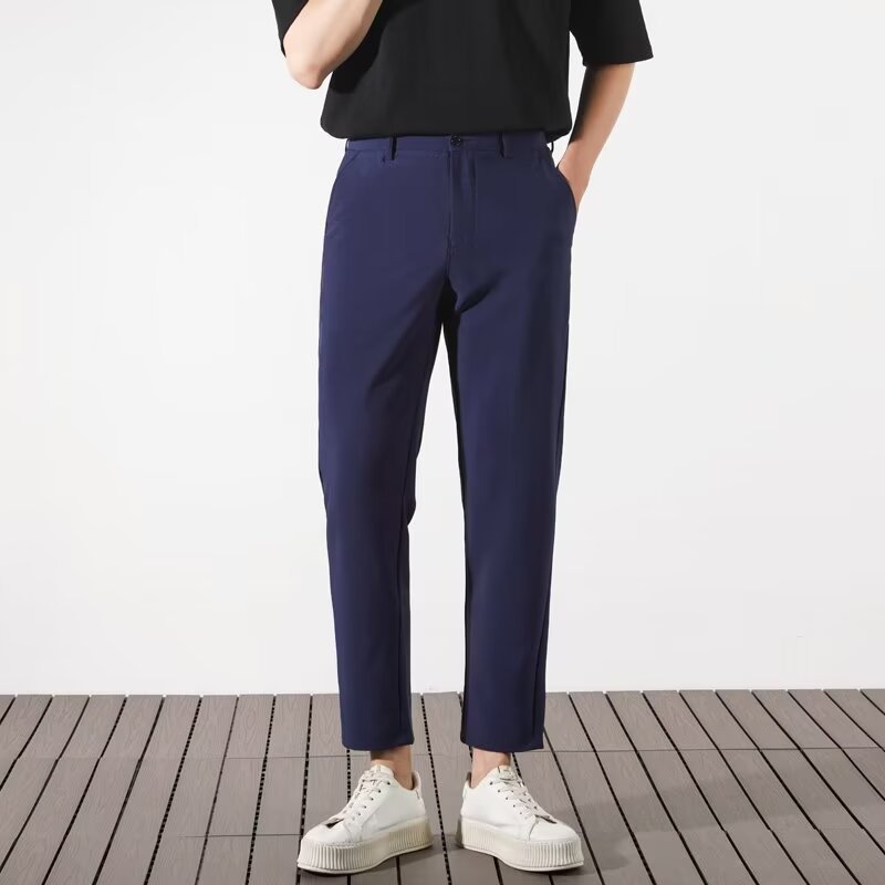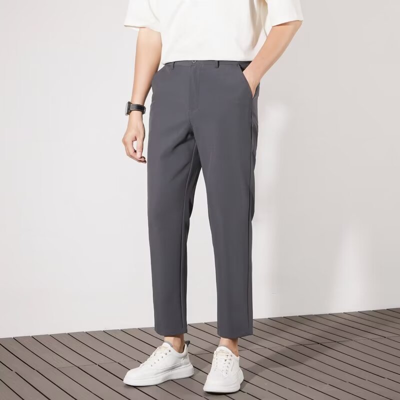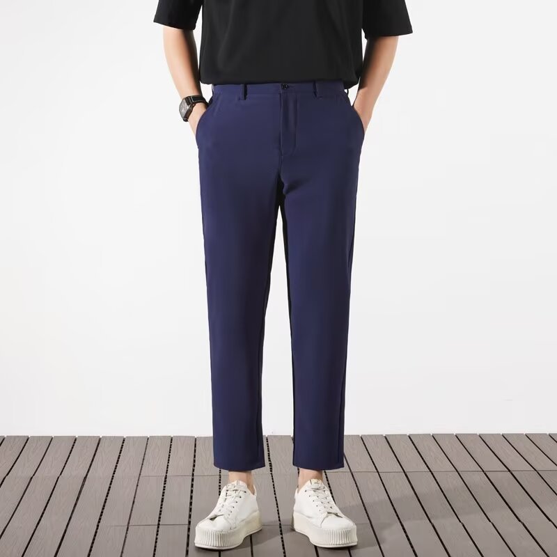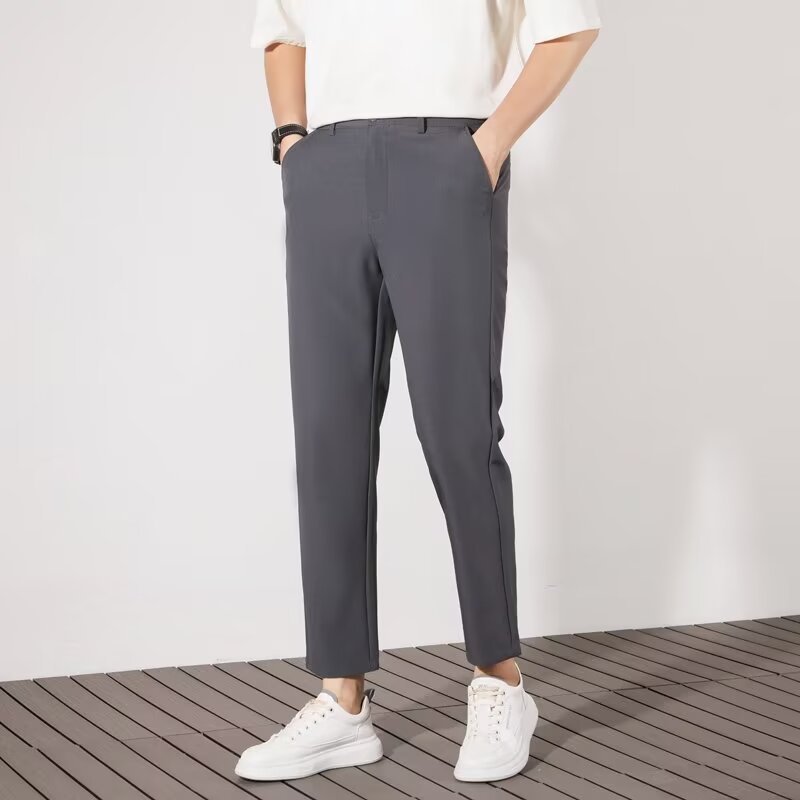 가을 2024 새로운 남성 스트레이트 발목 길이 바지 사업 캐주얼 슬림 핏 작은 세트 바지 비 다림질 고급 남성용 바지스토어 가기