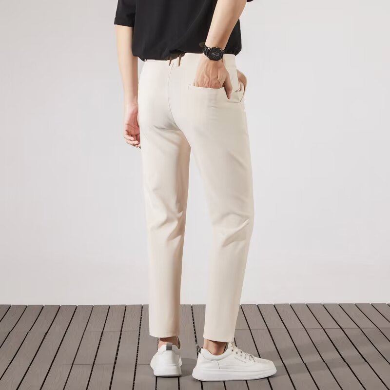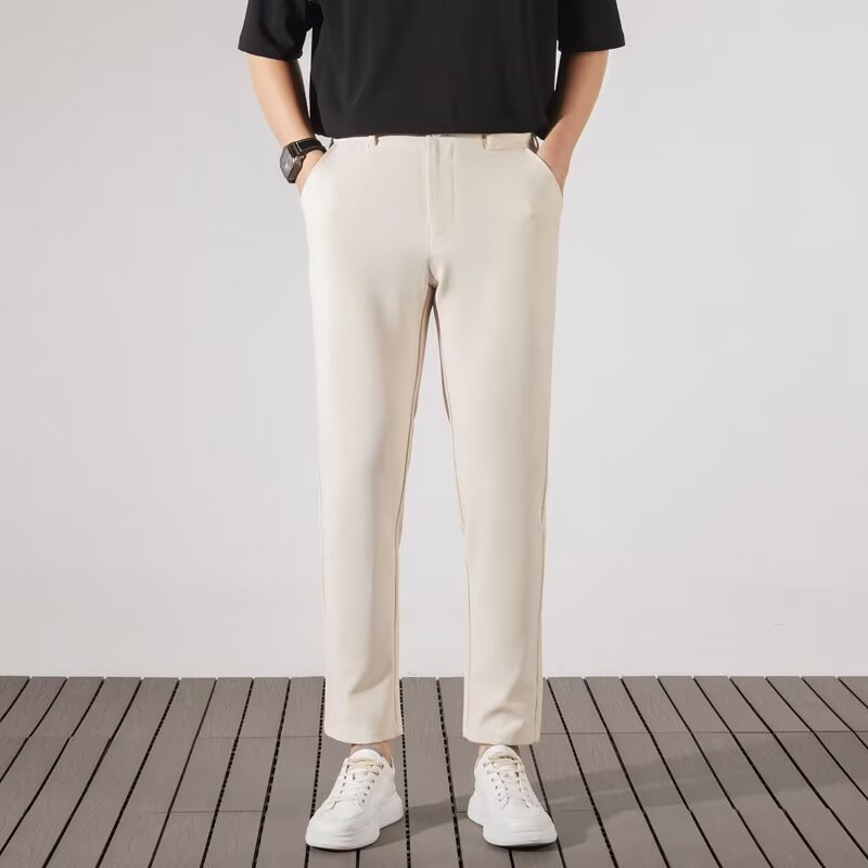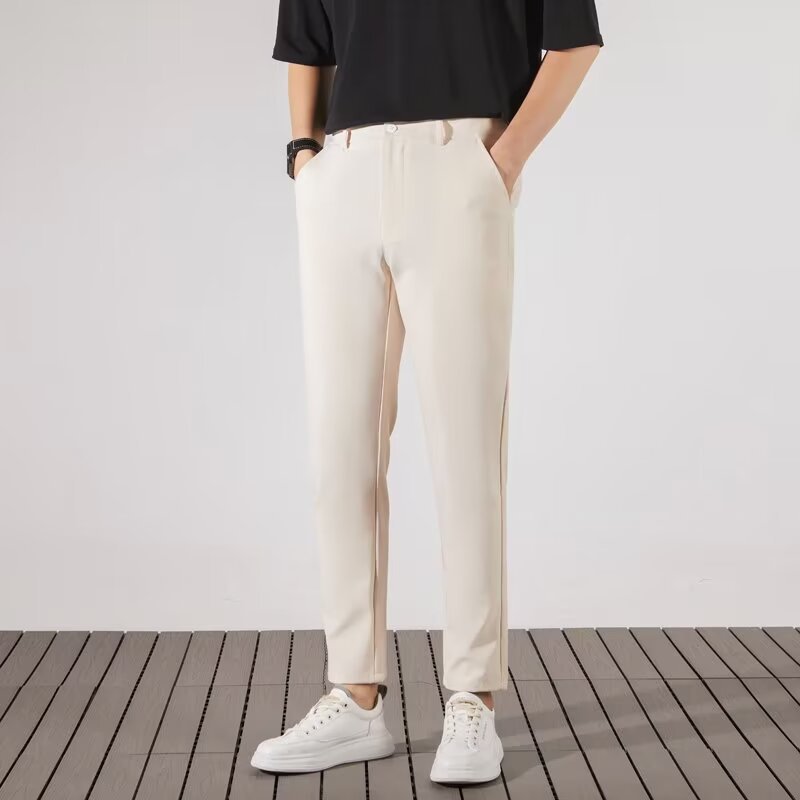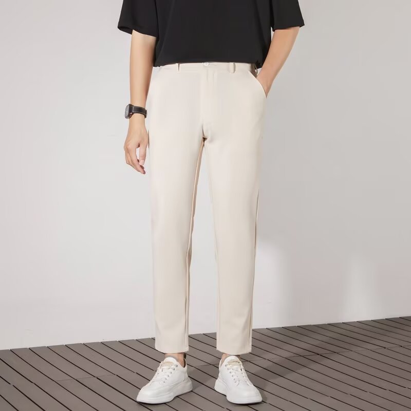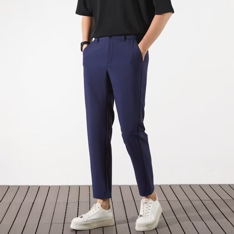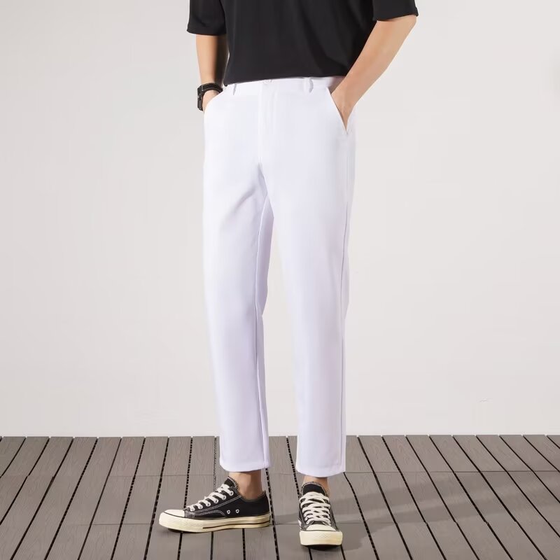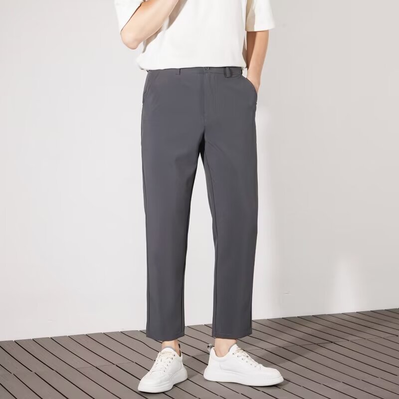가을 2024 새로운 남성 스트레이트 발목 길이 바지 사업 캐주얼 슬림 핏 작은 세트 바지 비 다림질 고급 남성용 바지스토어 가기