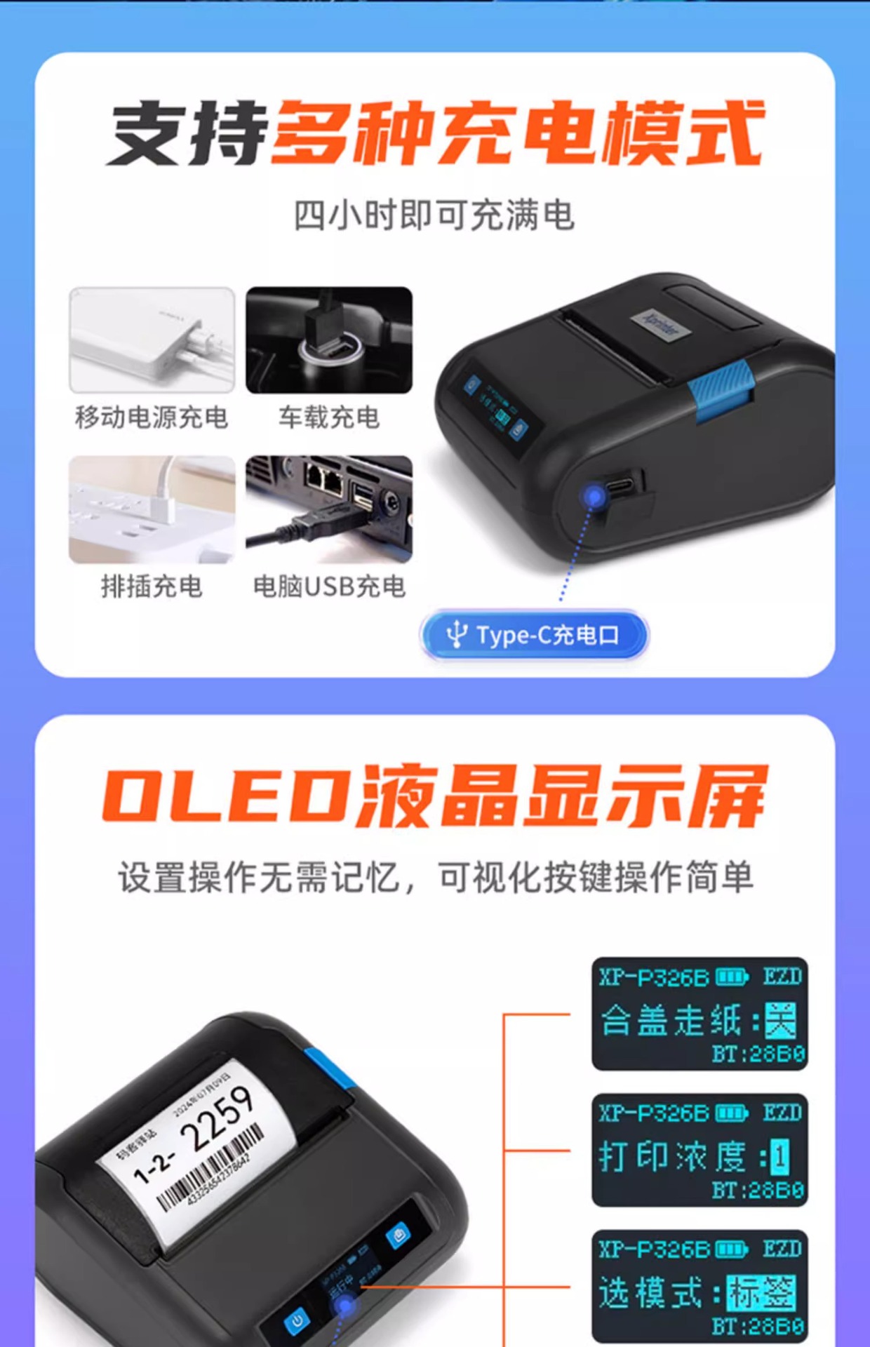 Xinye XP-P326B 익스프레스 스테이션 픽업 코드 프린터 휴대용 익스프레스맨 블루투스 익스프레스맨 일반 버전스토어 가기