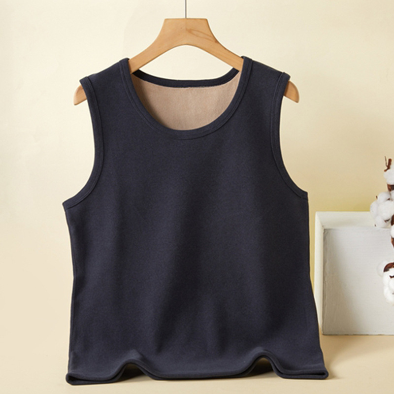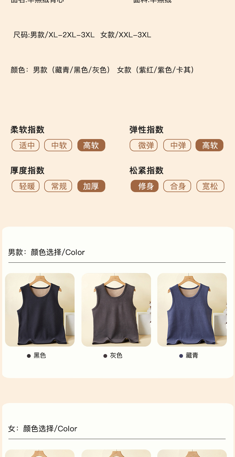 여성용 보온 조끼 두꺼운 낙타털 발열 가을 겨울 라운드넥 중년 및 노년층용 플러스 벨벳 조끼 외출복 남성용 체형 보정스토어 가기