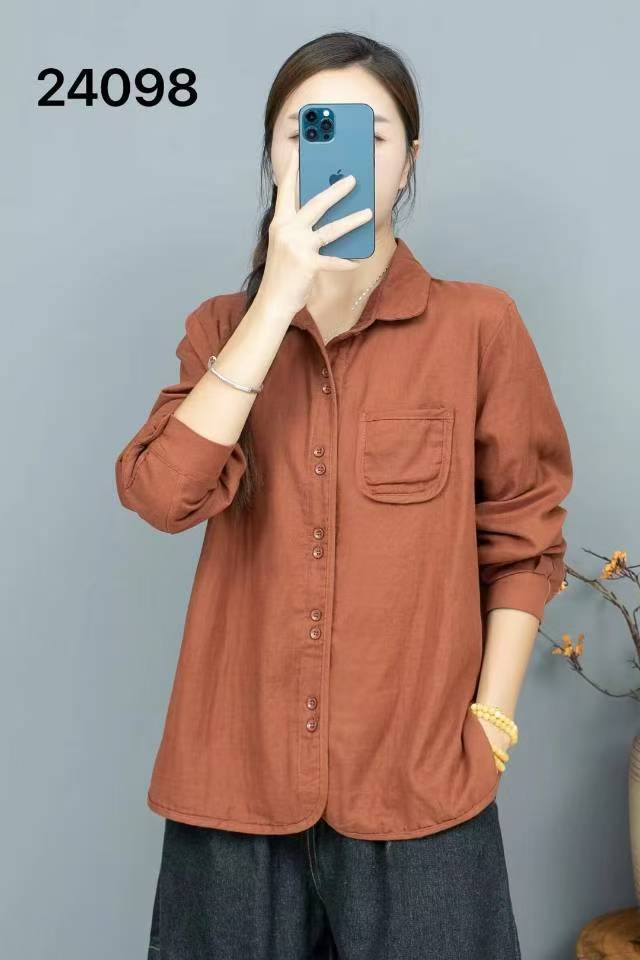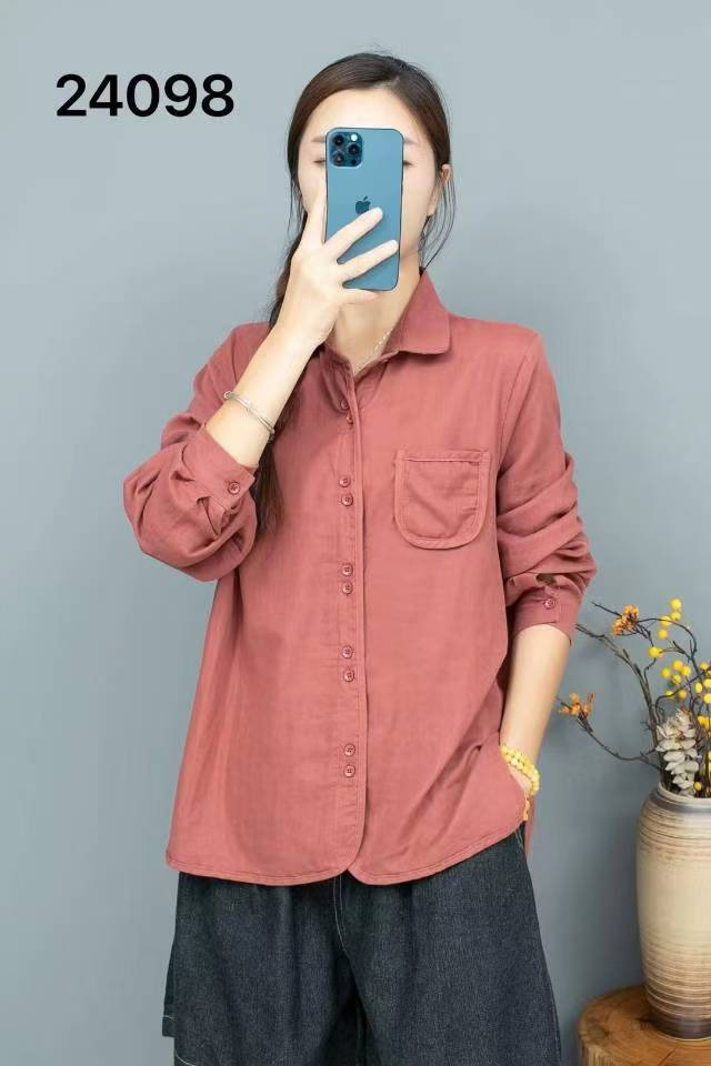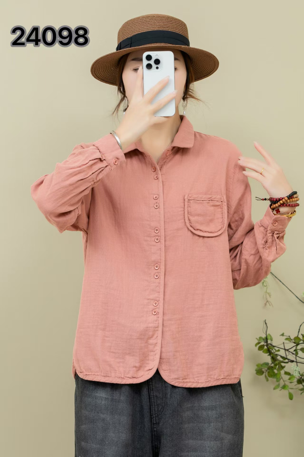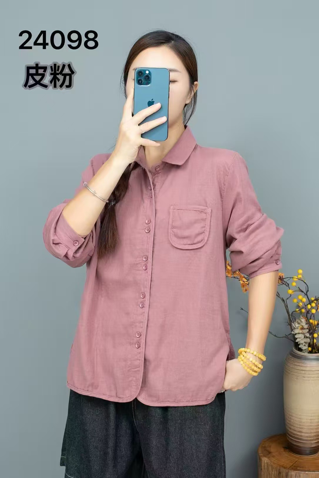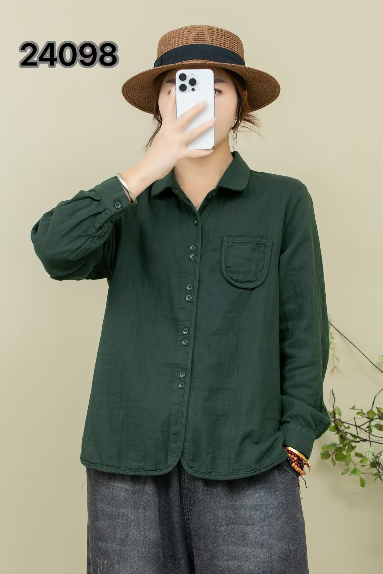 2025 봄 새로운 여성 셔츠 느슨한 캐주얼 코튼 및 린넨 탑 여성 문학 복고풍 단색 긴 소매 도매
