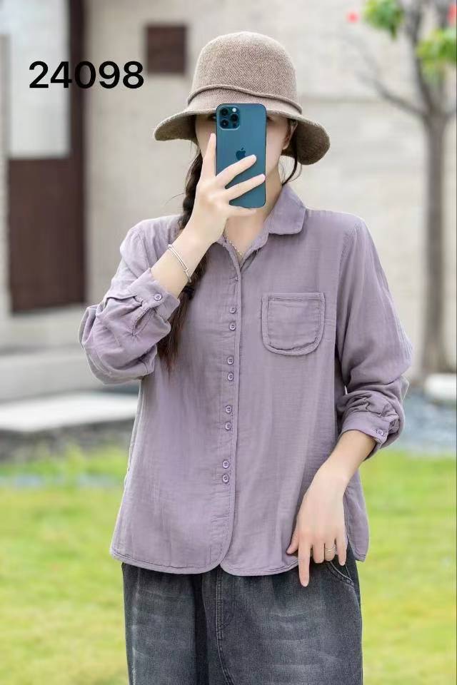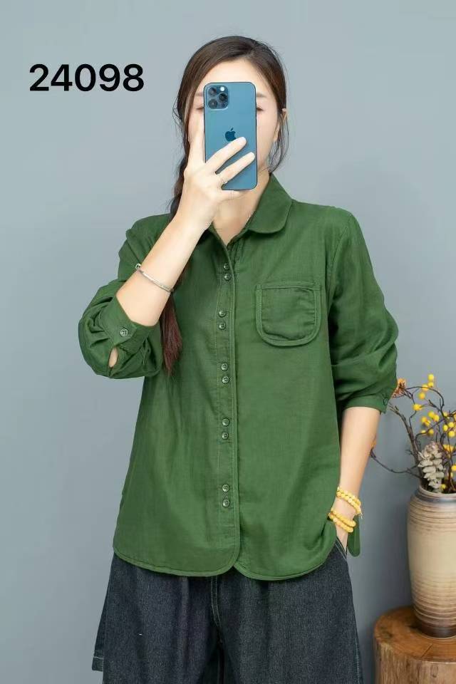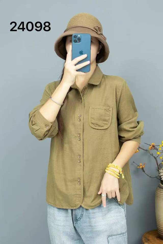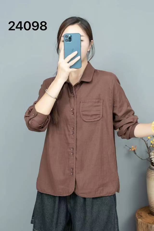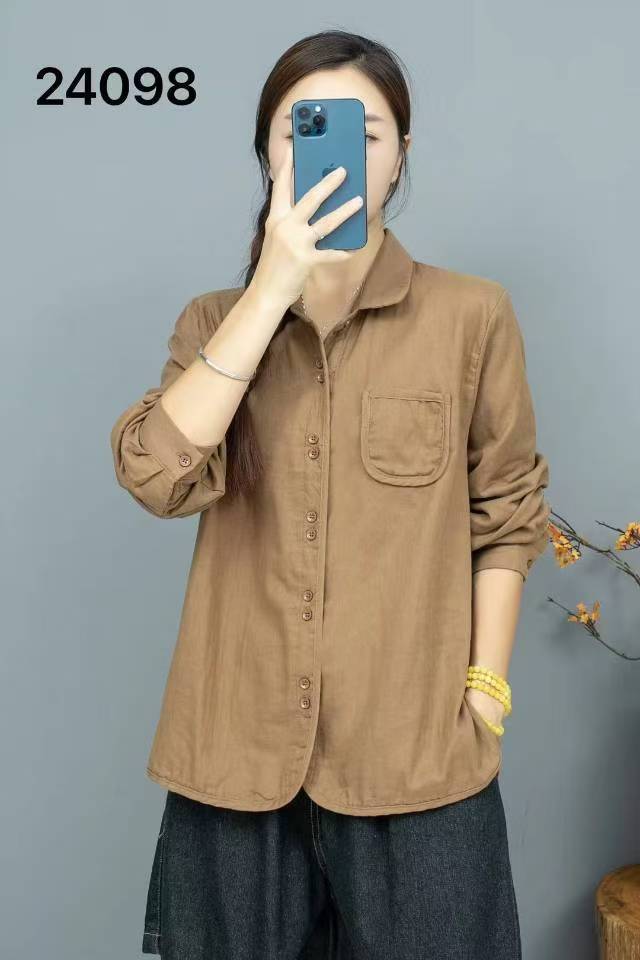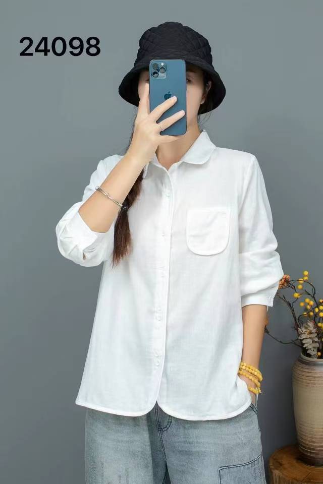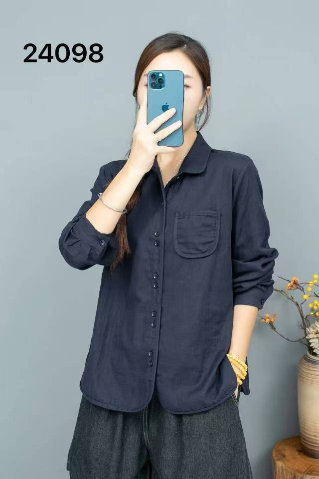 2025 봄 새로운 여성 셔츠 느슨한 캐주얼 코튼 및 린넨 탑 여성 문학 복고풍 단색 긴 소매 도매스토어 가기