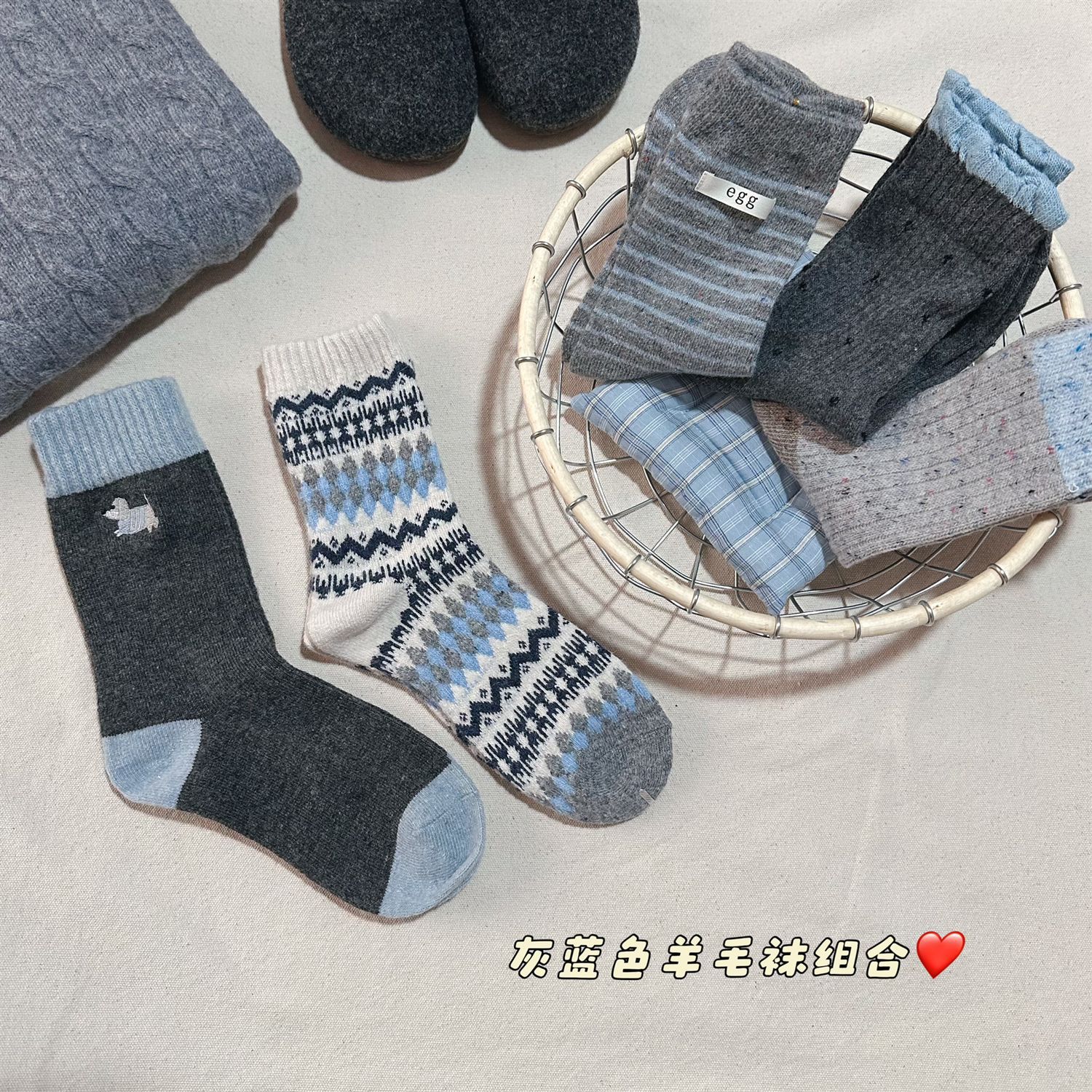 2024 양말 여성 가을과 겨울 새로운 도착 안그레이 스타일 안코라 붉은 활 줄무늬 면 중간 튜브 양말스토어 가기