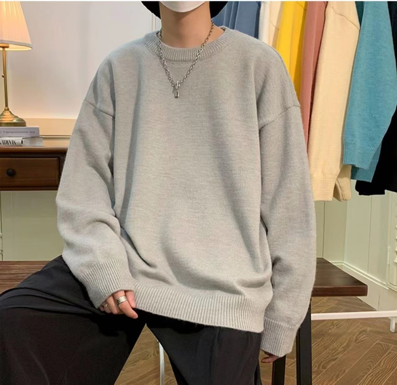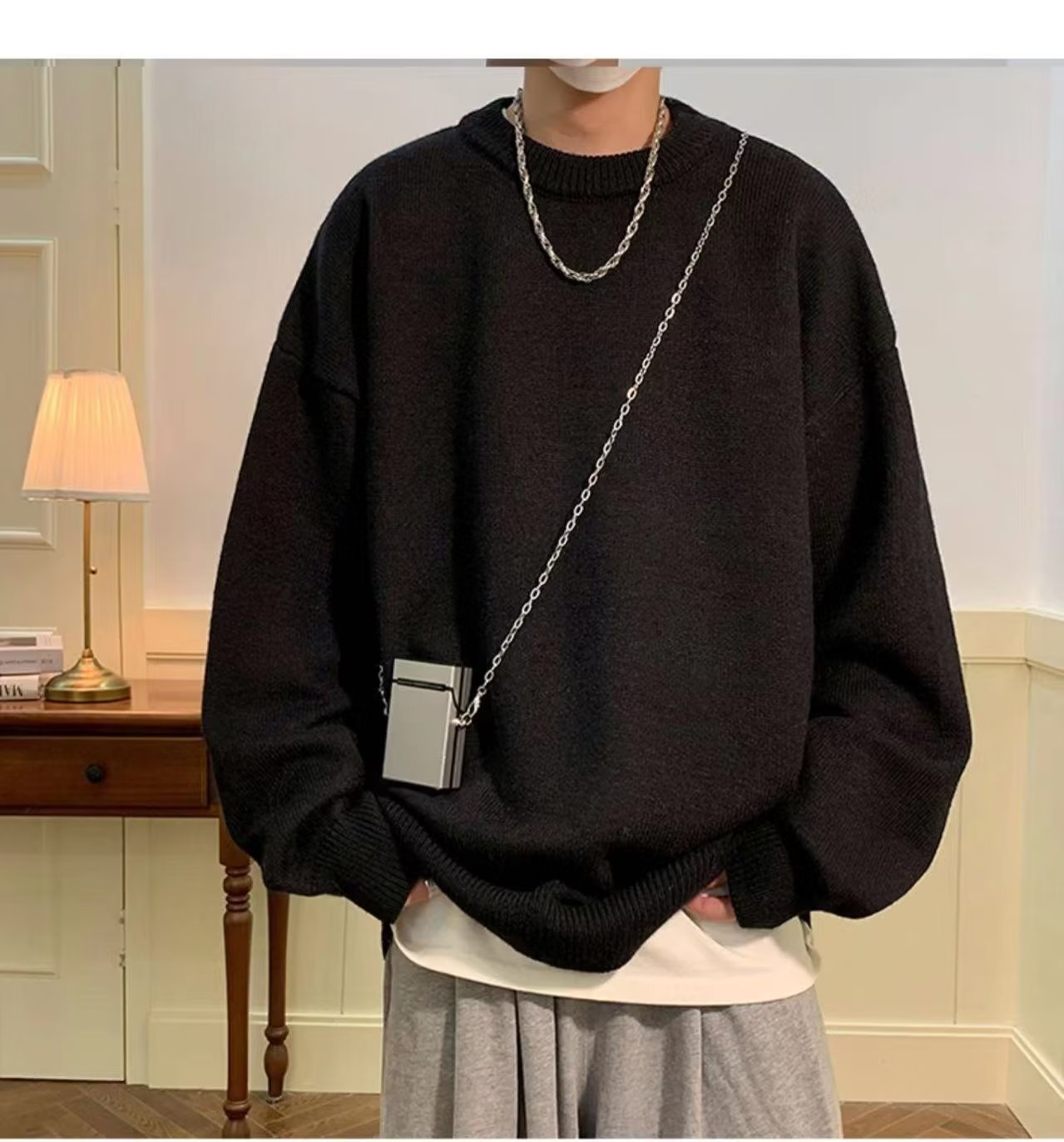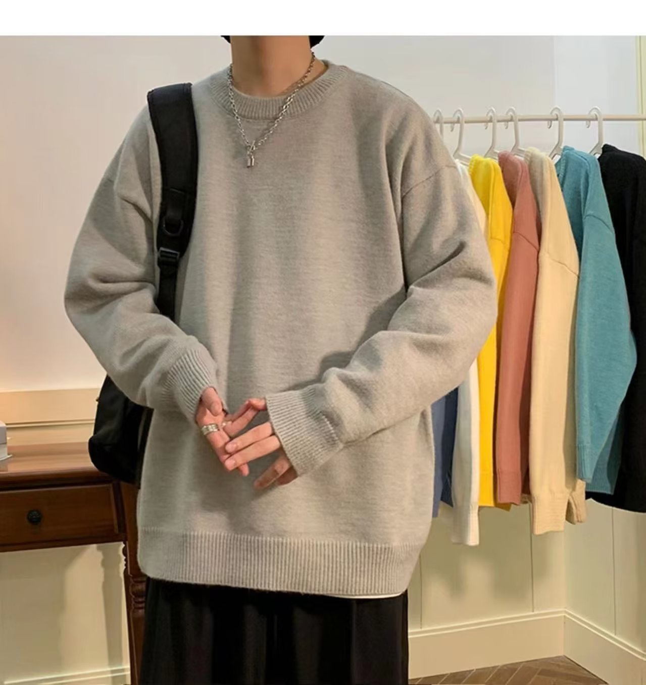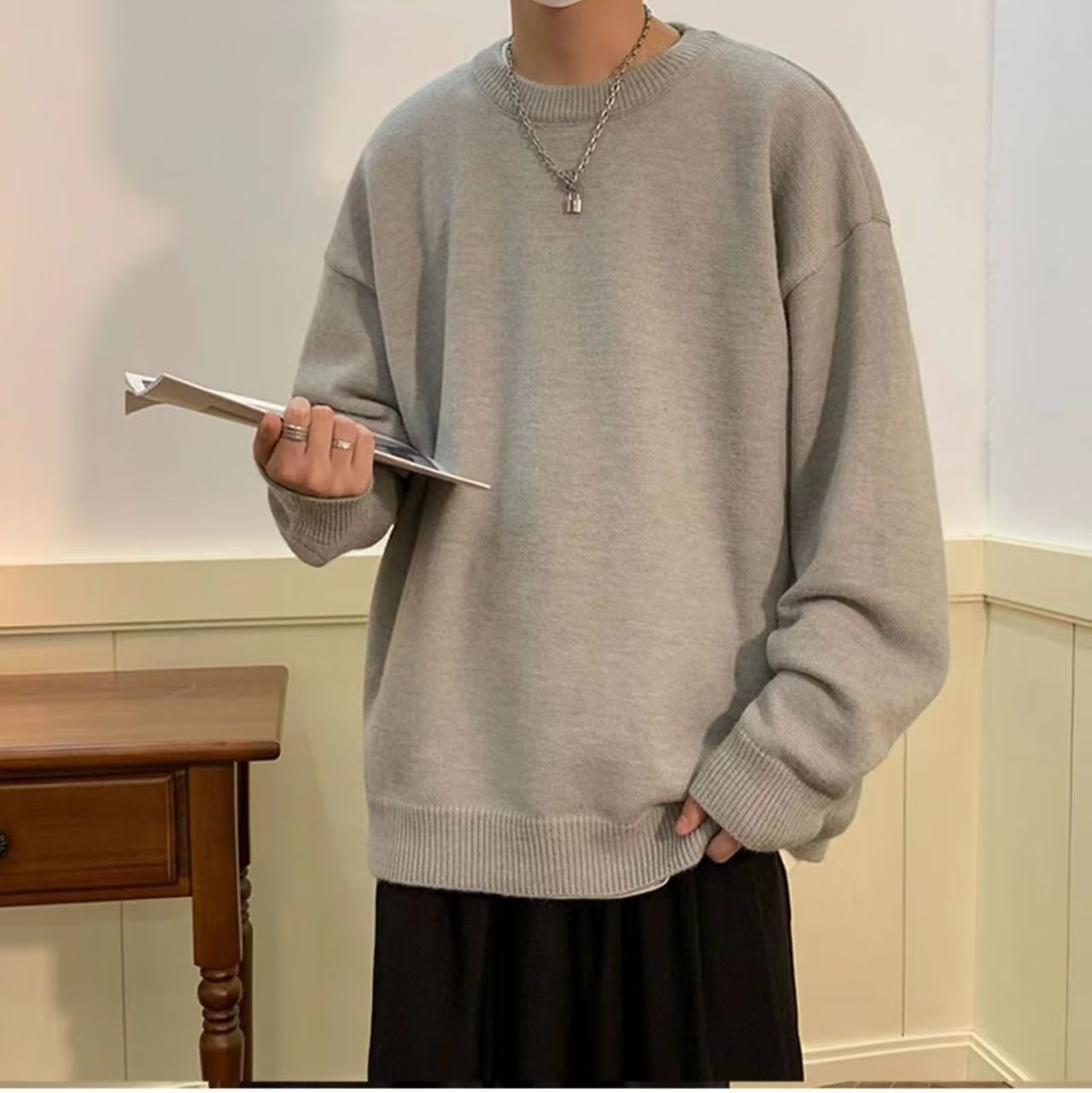 크루 넥 스웨터 남자 가을 및 겨울 Ins 하이 스트리트 올 매치 기모 솔리드 컬러 스웨터 홍콩 스타일 캐주얼 스웨터 재킷 트렌디