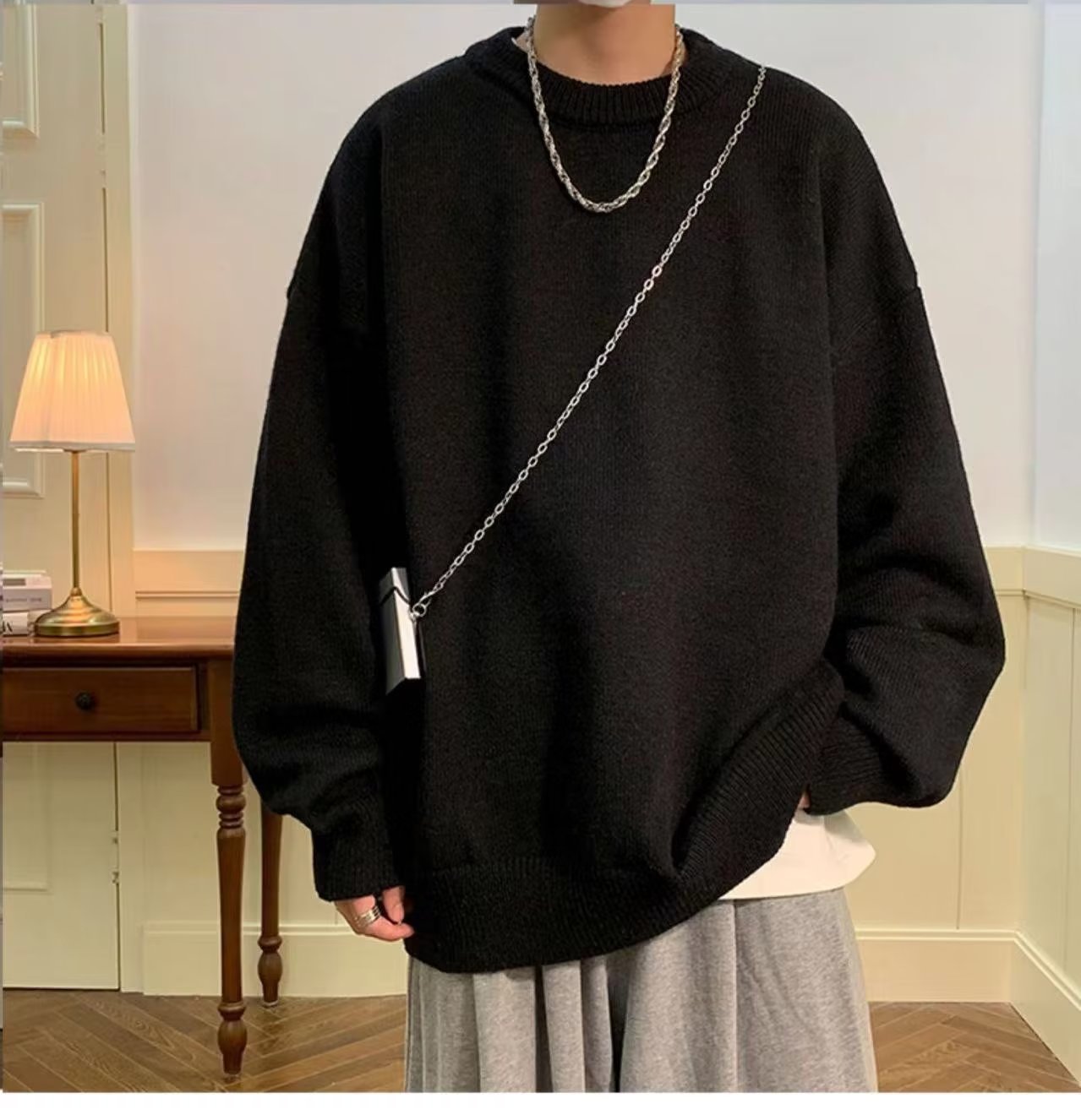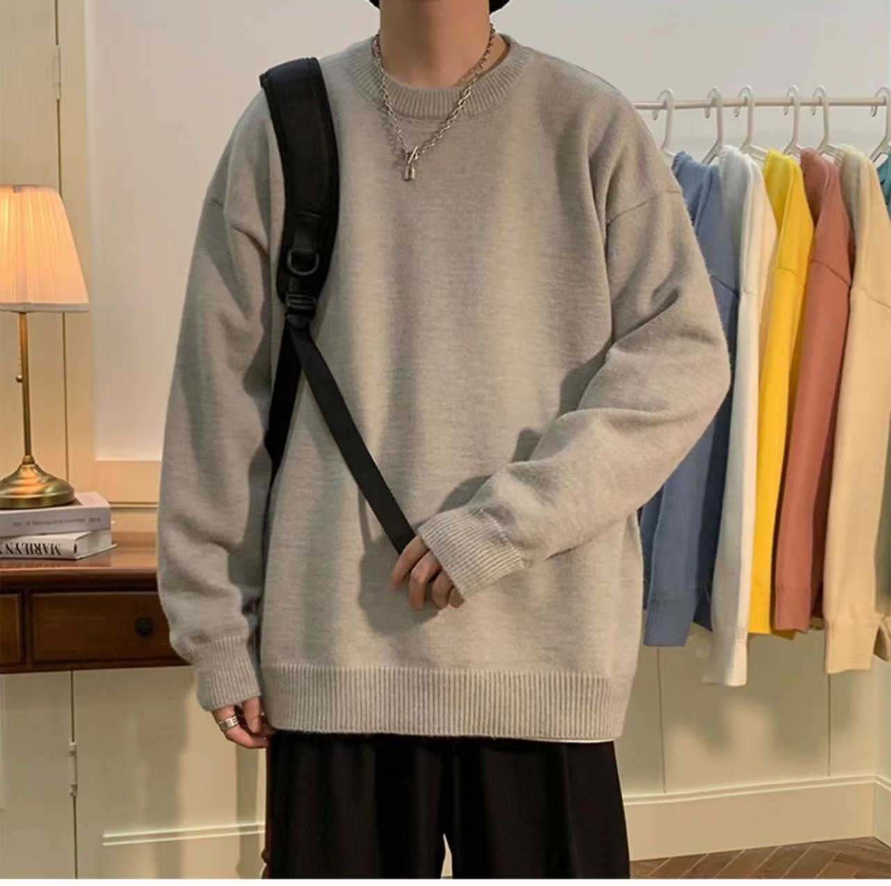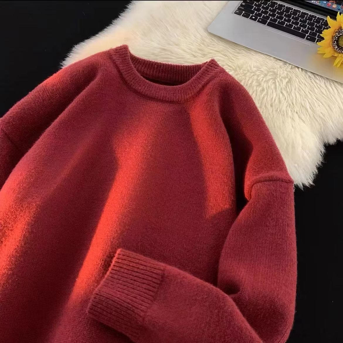 크루 넥 스웨터 남자 가을 및 겨울 Ins 하이 스트리트 올 매치 기모 솔리드 컬러 스웨터 홍콩 스타일 캐주얼 스웨터 재킷 트렌디