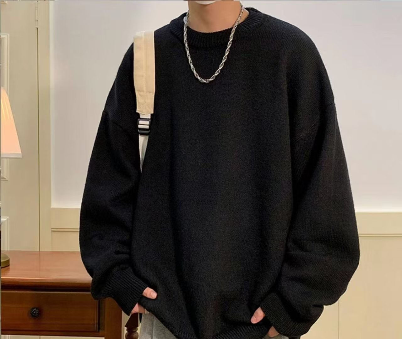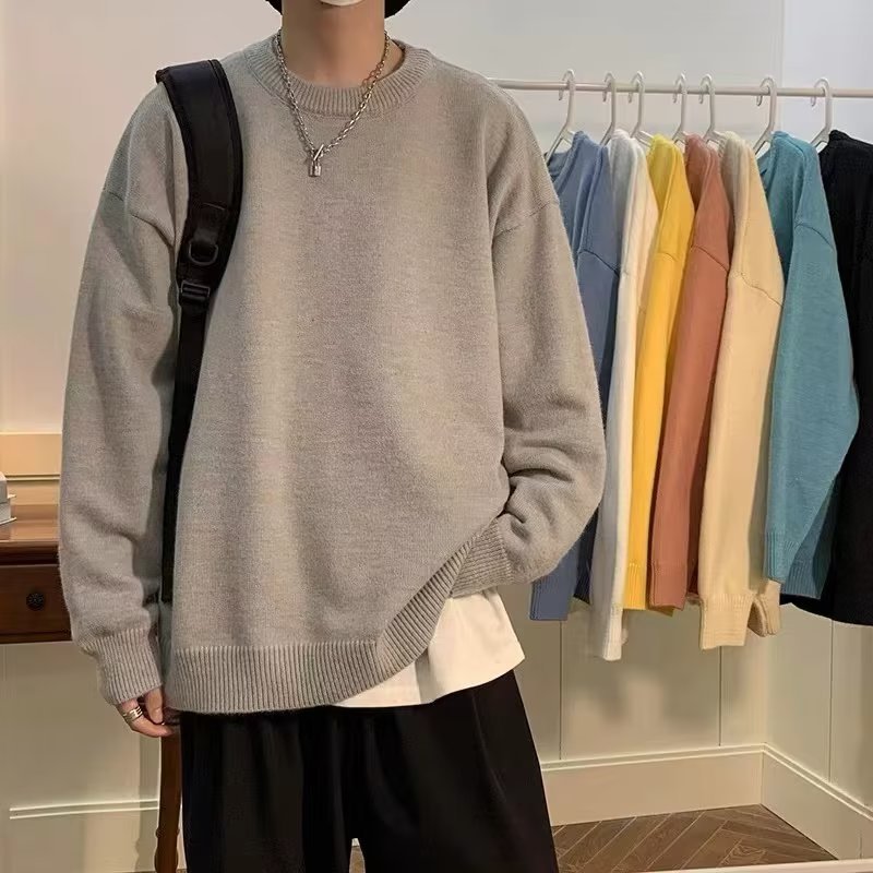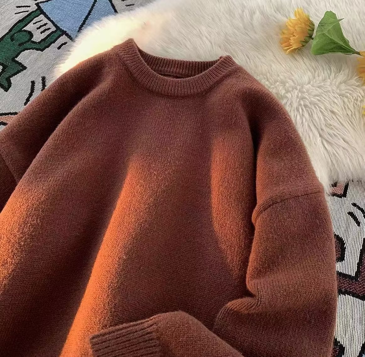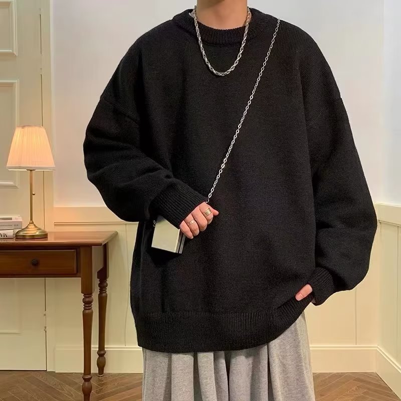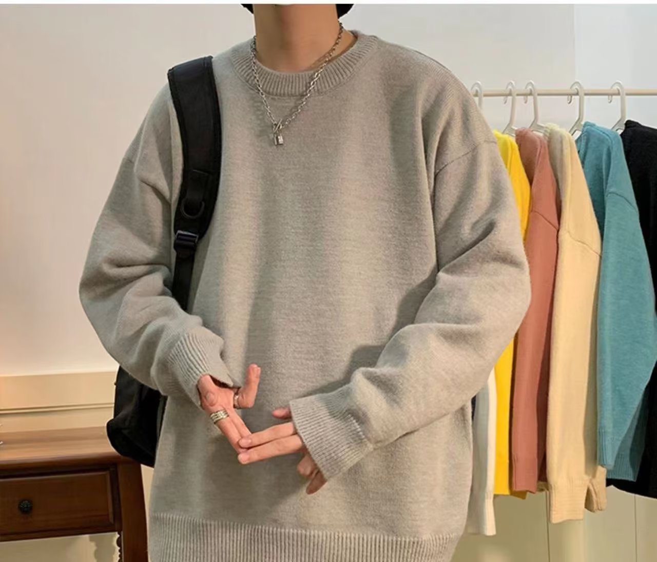 크루 넥 스웨터 남자 가을 및 겨울 Ins 하이 스트리트 올 매치 기모 솔리드 컬러 스웨터 홍콩 스타일 캐주얼 스웨터 재킷 트렌디