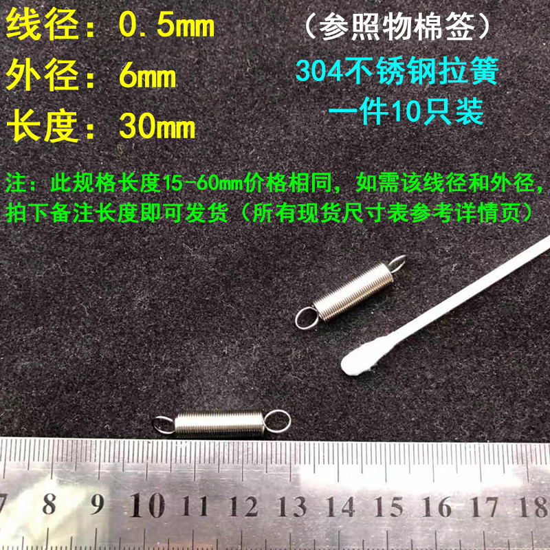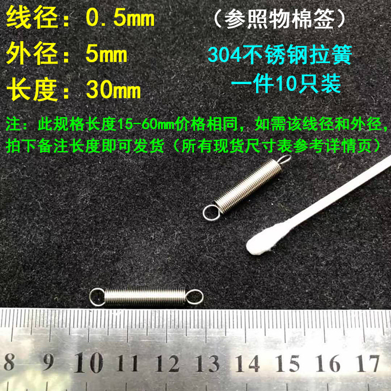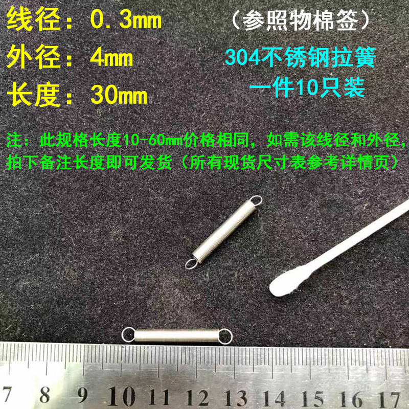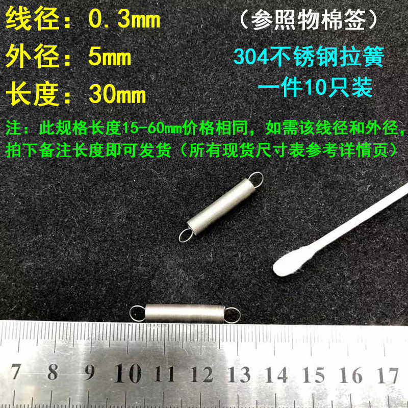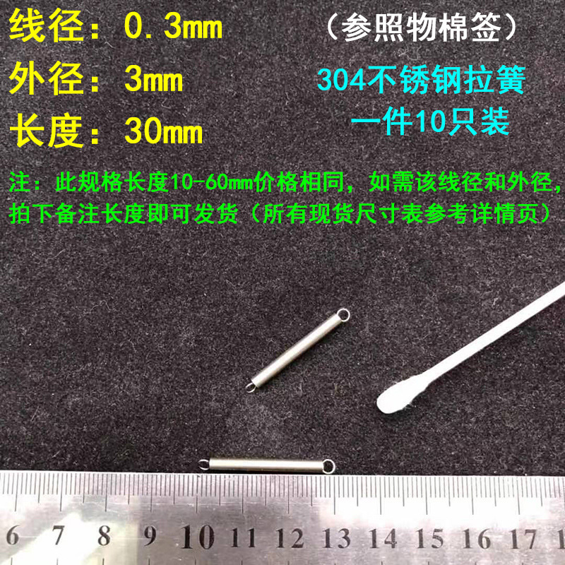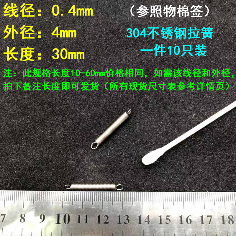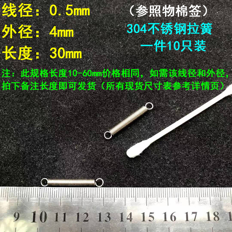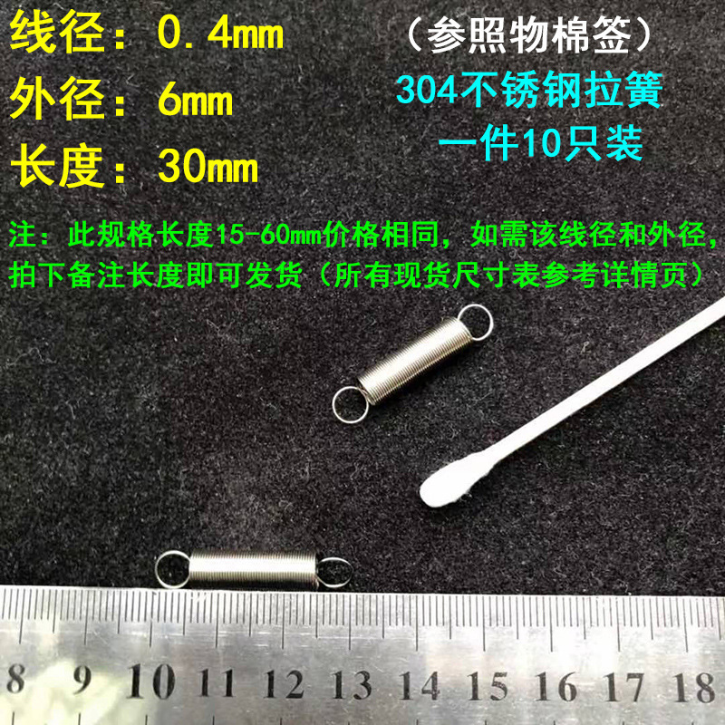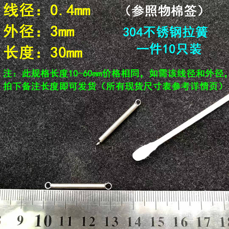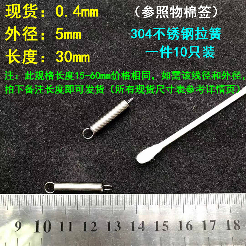304 스테인레스 스틸 장력 스프링 후크 작은 장력 고온 스프링 와이어 직경 0.3-2mm 길이 10-200 우송스토어 가기