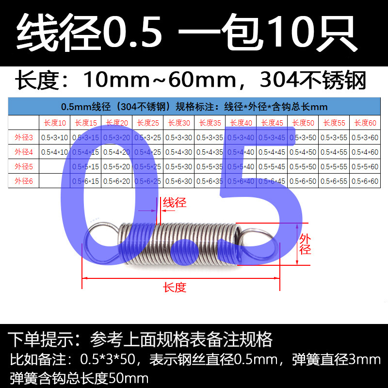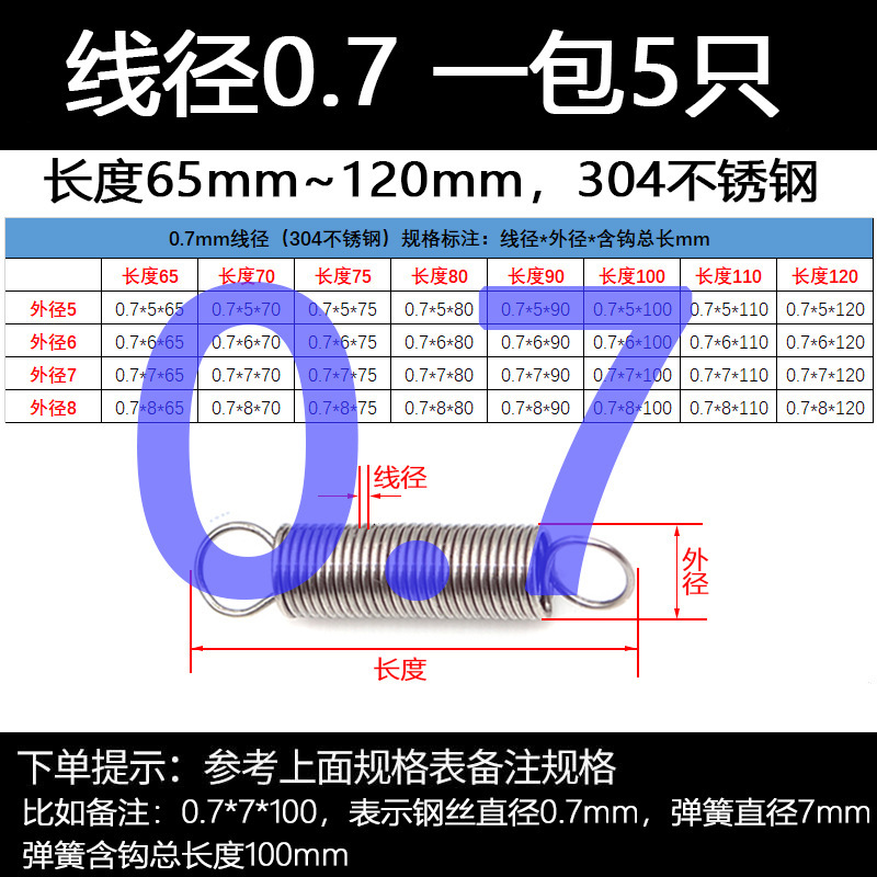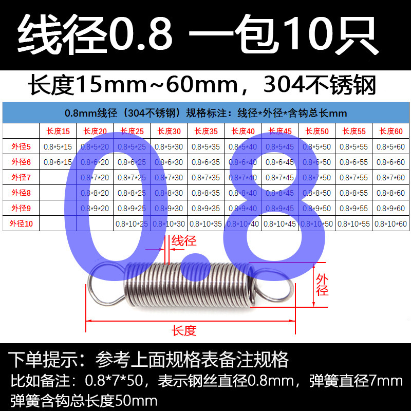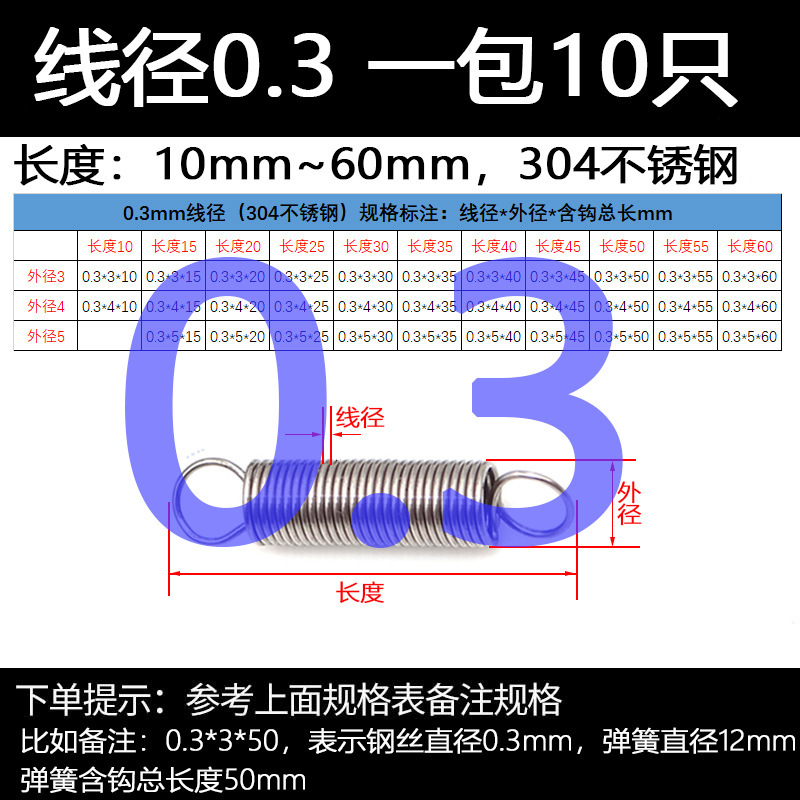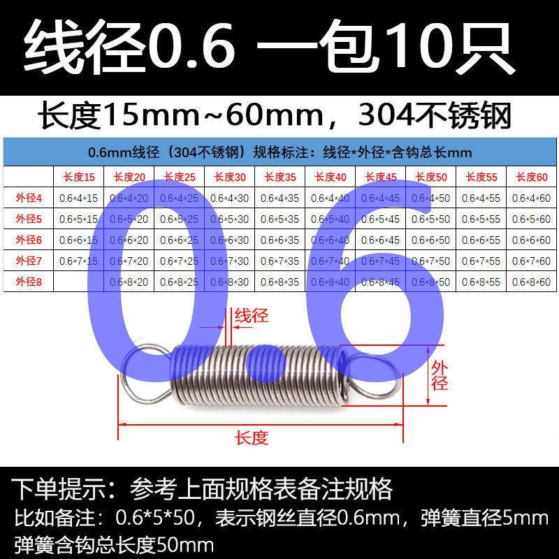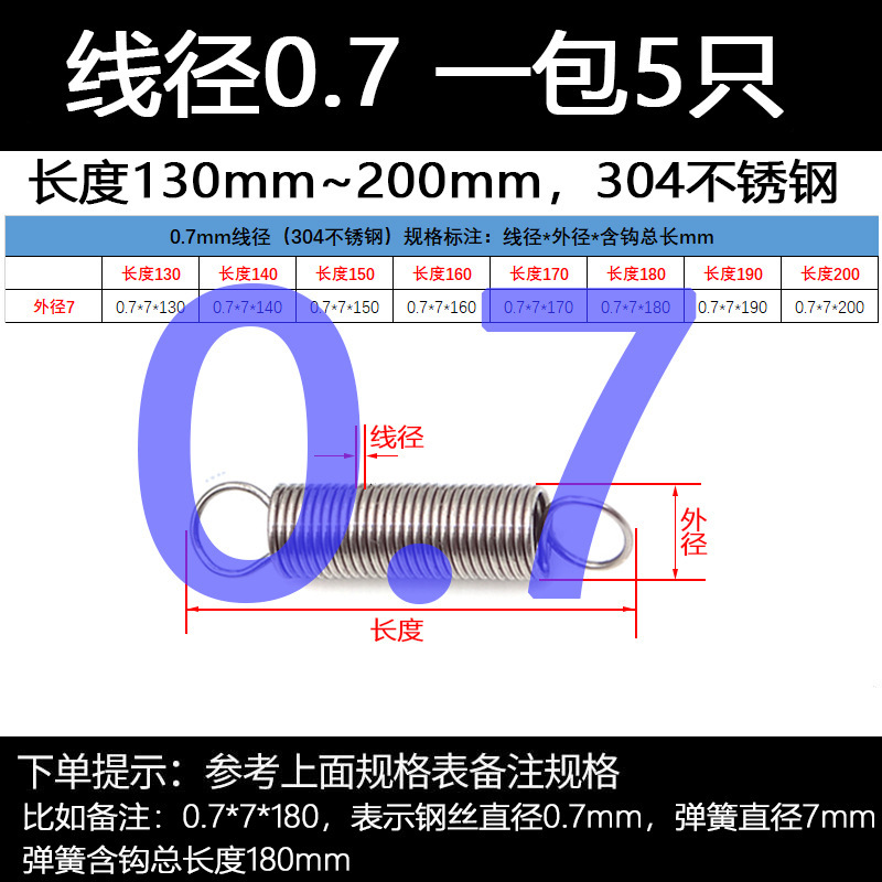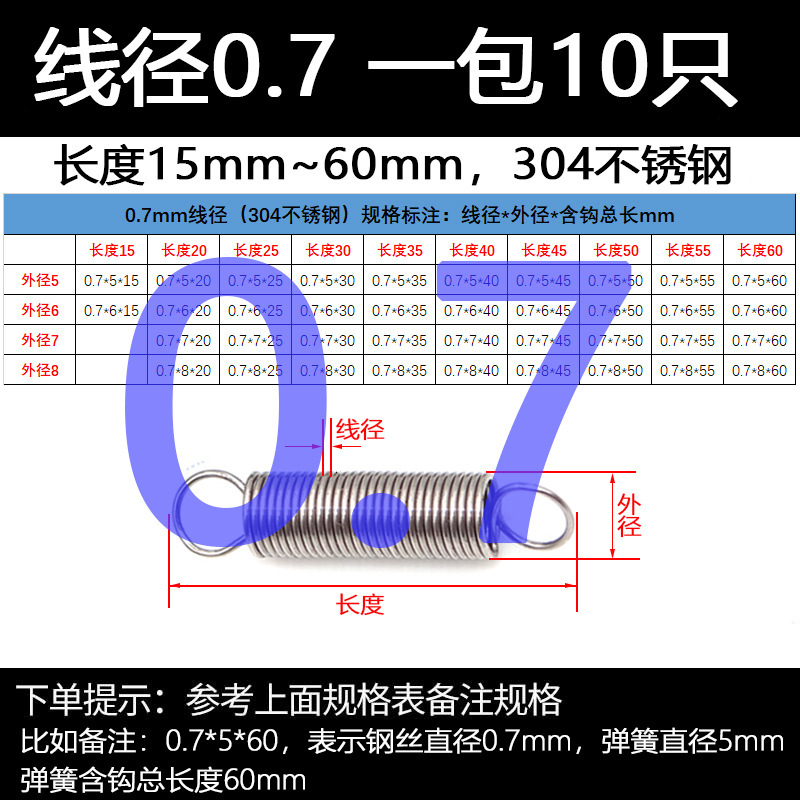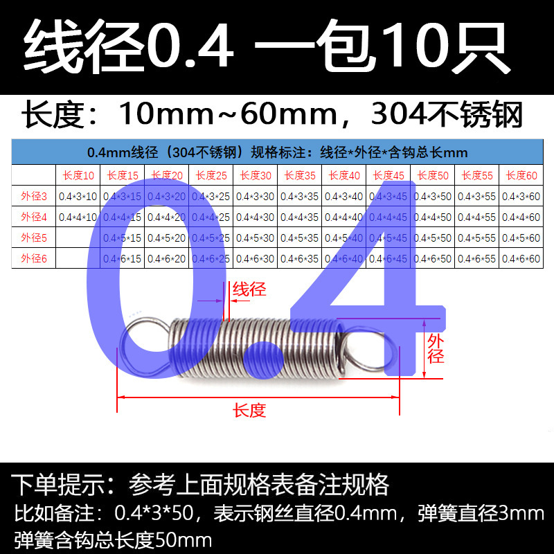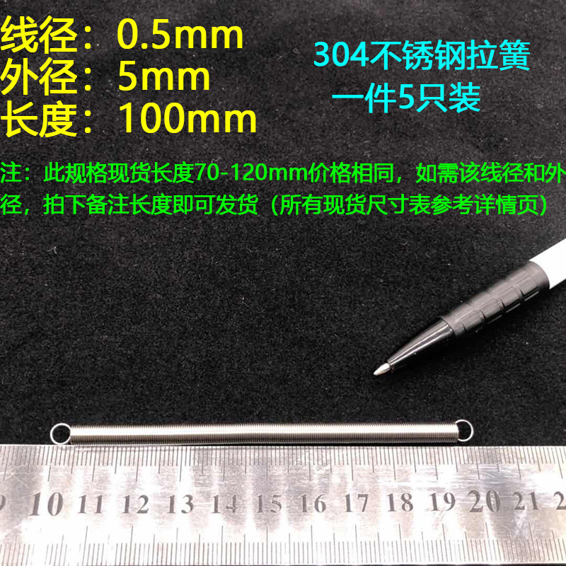 304 스테인레스 스틸 장력 스프링 후크 작은 장력 고온 스프링 와이어 직경 0.3-2mm 길이 10-200 우송스토어 가기