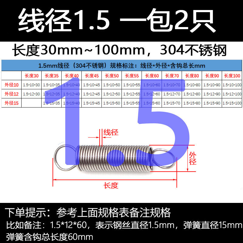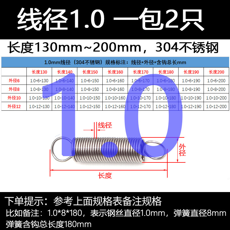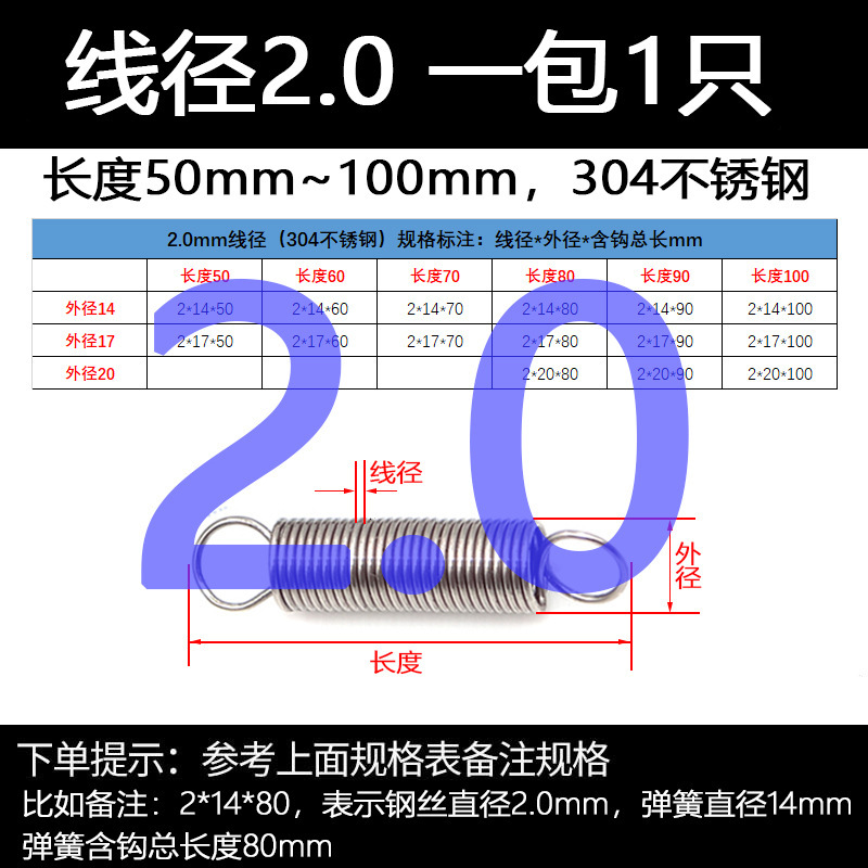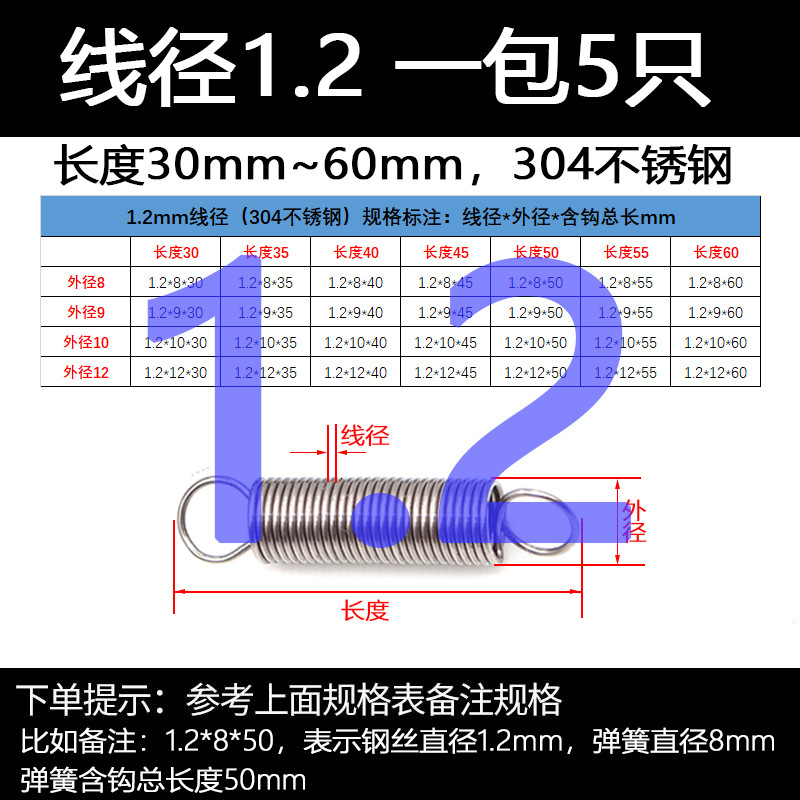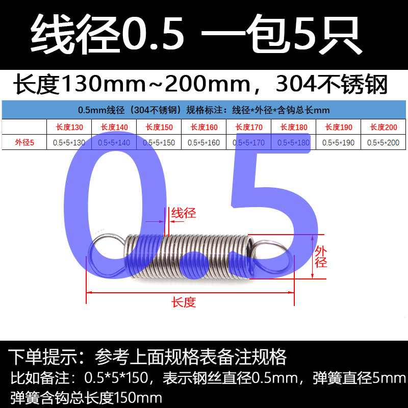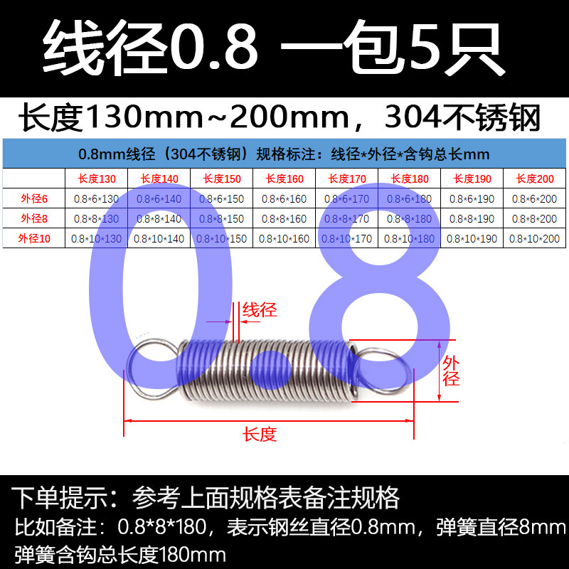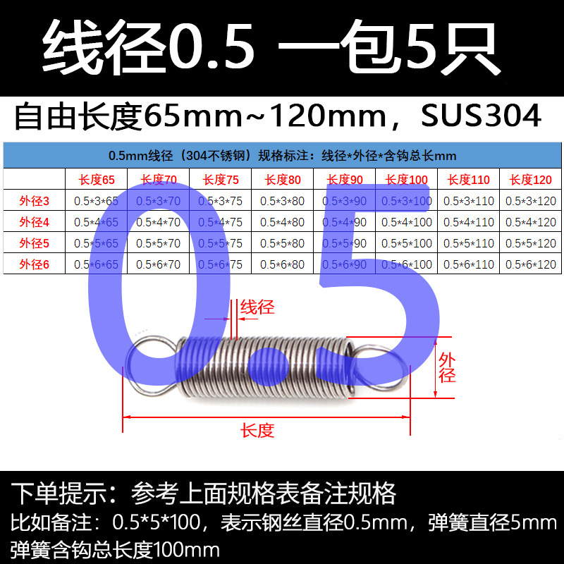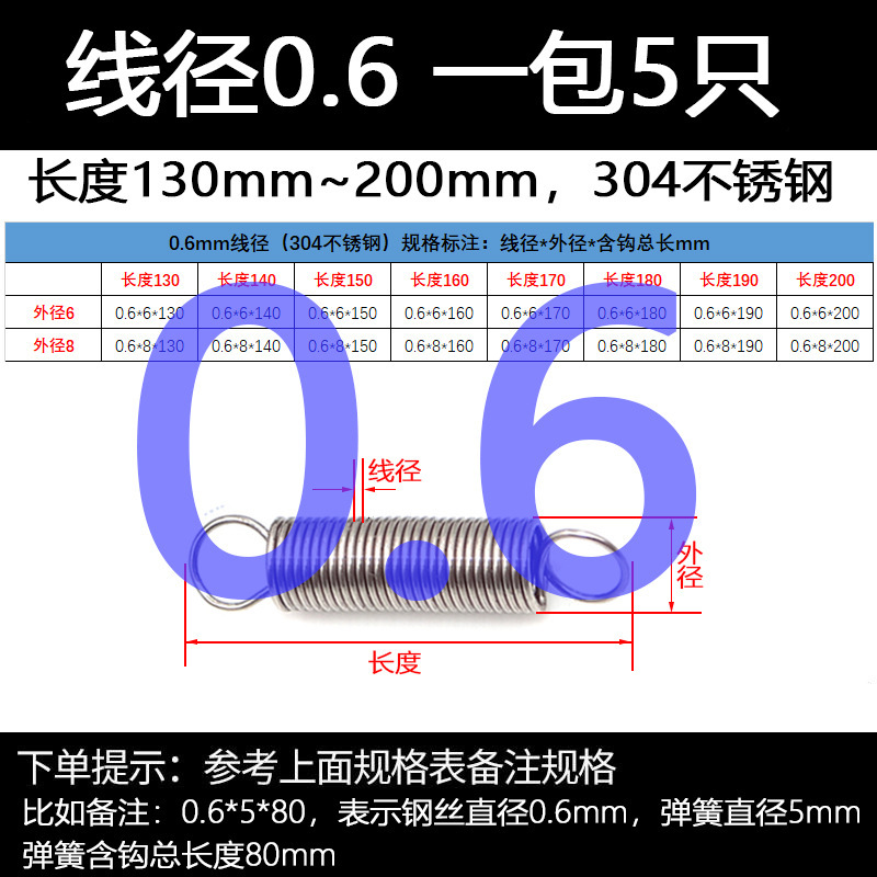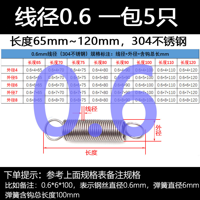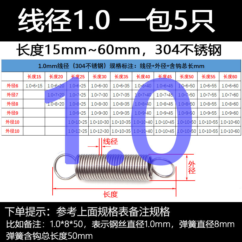 304 스테인레스 스틸 장력 스프링 후크 작은 장력 고온 스프링 와이어 직경 0.3-2mm 길이 10-200 우송스토어 가기