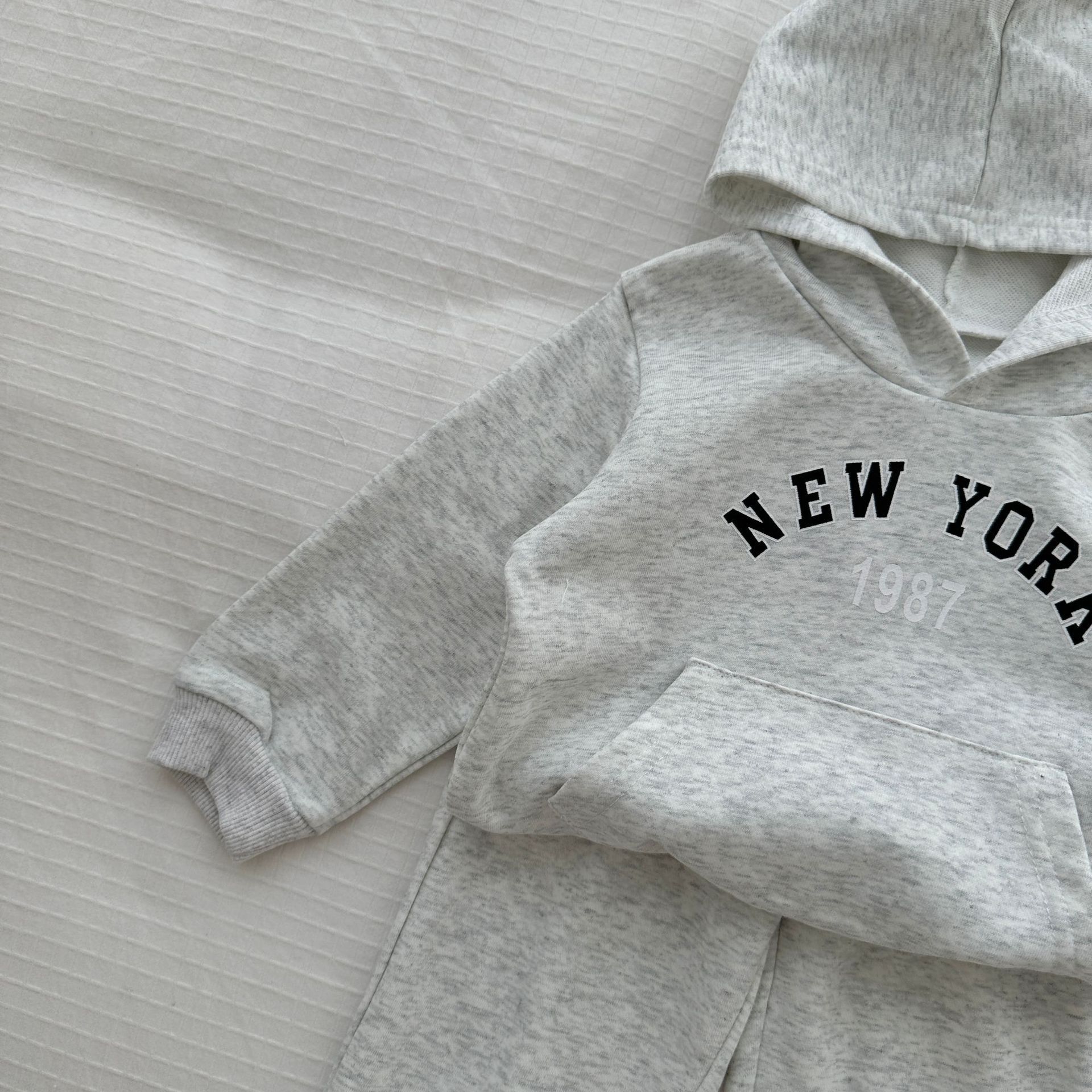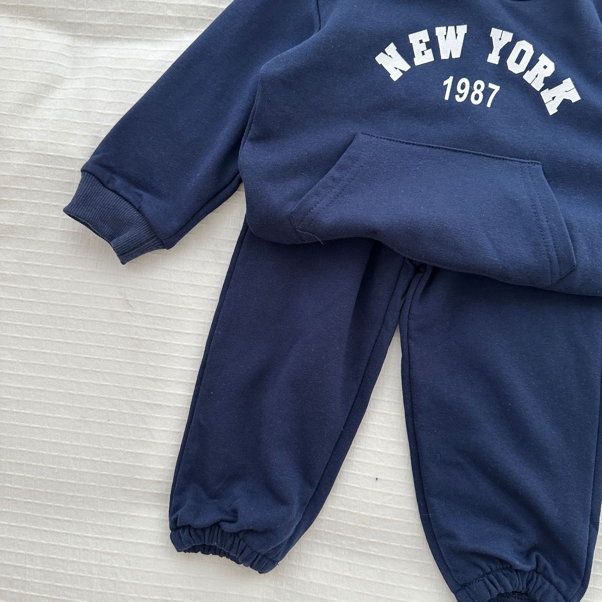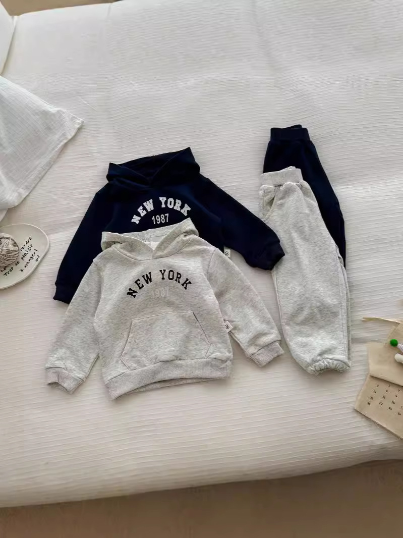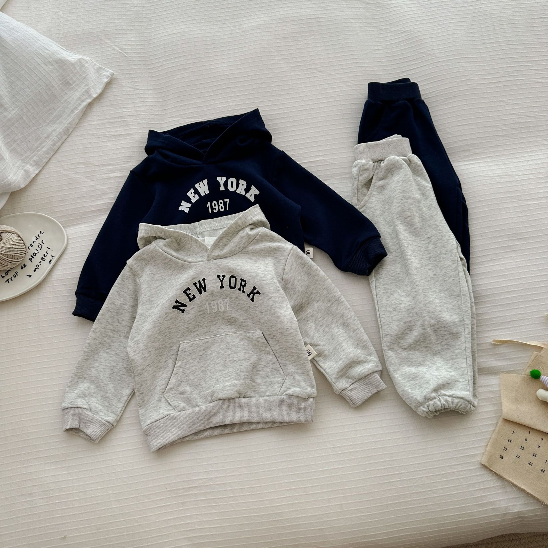남학생과 여학생을위한 한국식 다재다능한 아동복 면화 후드 스웨터 인쇄 편지 투피스 스포츠 스웨터 의류 세트