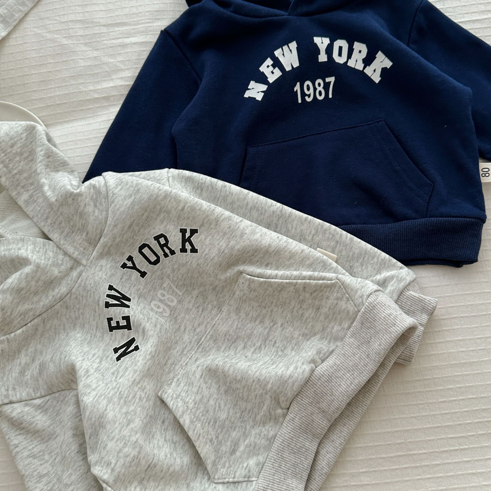 남학생과 여학생을위한 한국식 다재다능한 아동복 면화 후드 스웨터 인쇄 편지 투피스 스포츠 스웨터 의류 세트스토어 가기