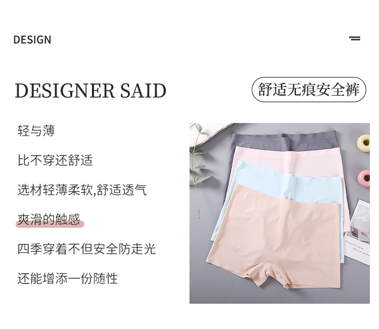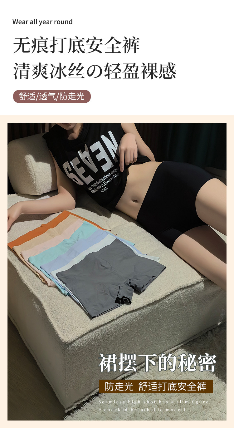 국경 간 특수 미드 웨이스트 안전 바지 벨리 타이트 복서 아이스 실크 원활한 속옷 안티 라이트 레깅스 여성용 복서
