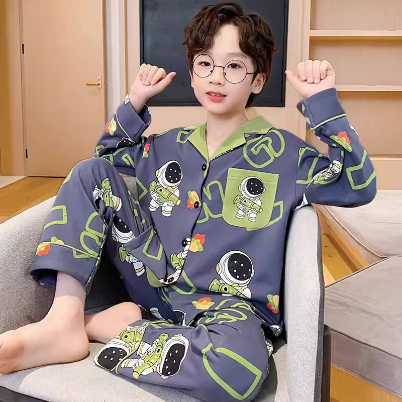 동남아 아이 소년 홈 옷 봄 가을 긴 소매 아기 2024 새로운 잠옷 어린이 빅 보이즈 아우터웨어