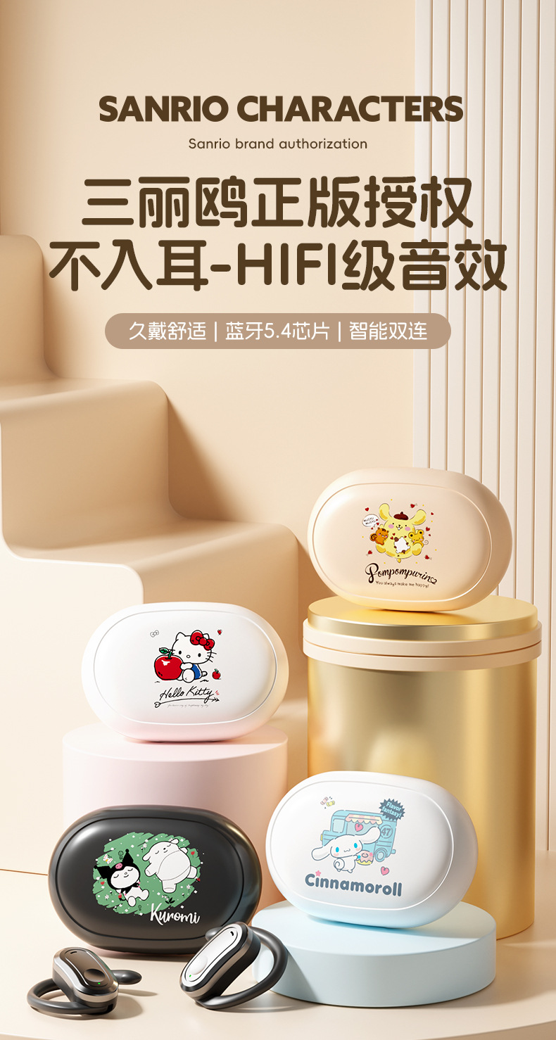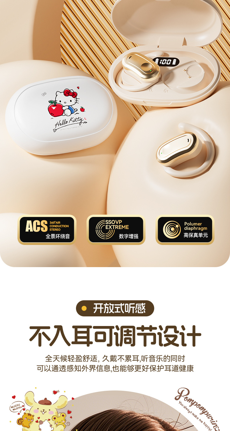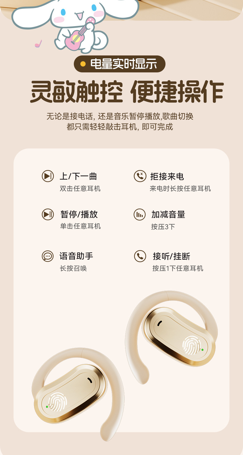 무선 귀 교수형 공기 뼈 전도 긴 내구성 스포츠 헤드셋 산리오 새로운 블루투스 헤드셋