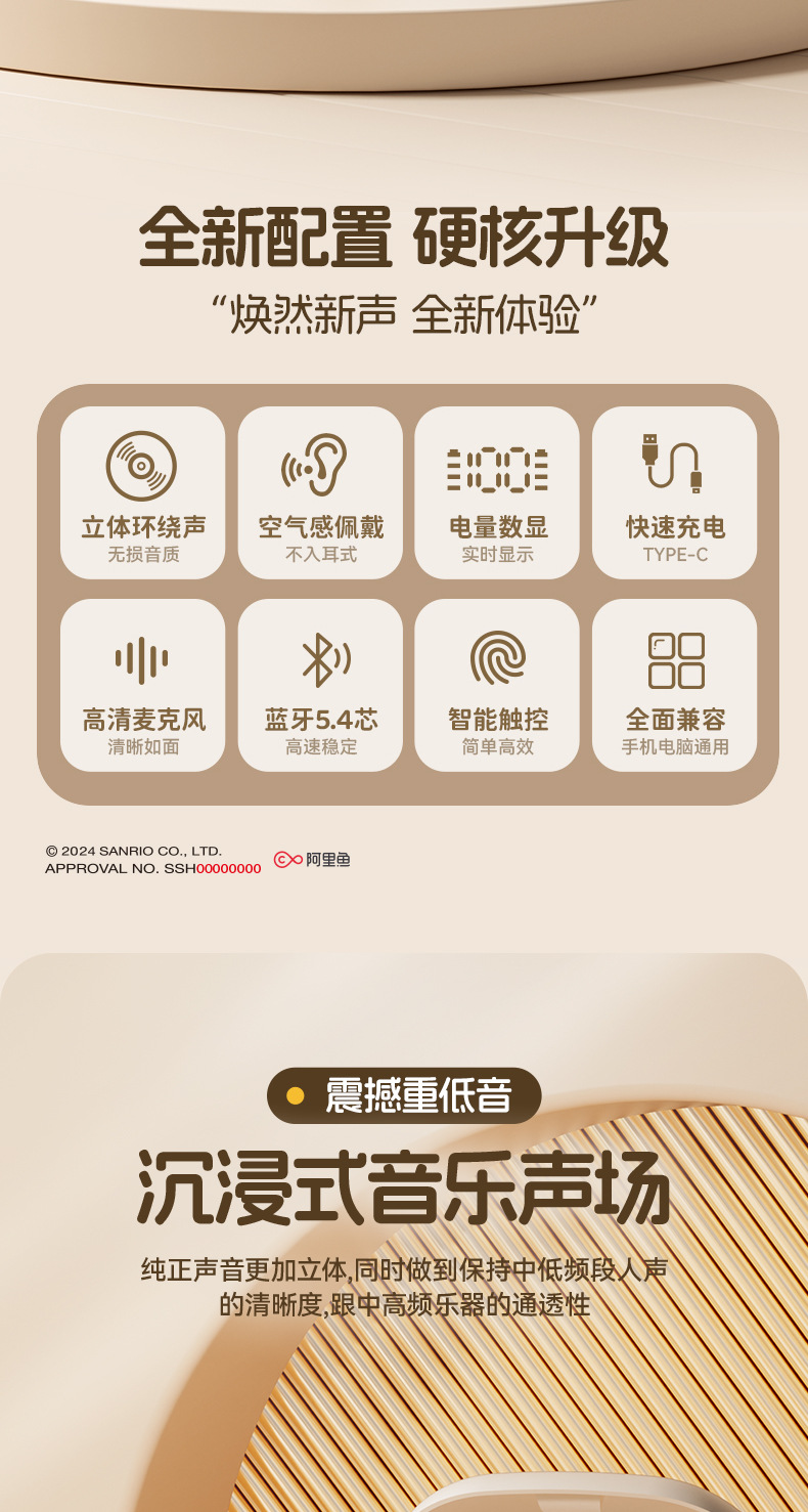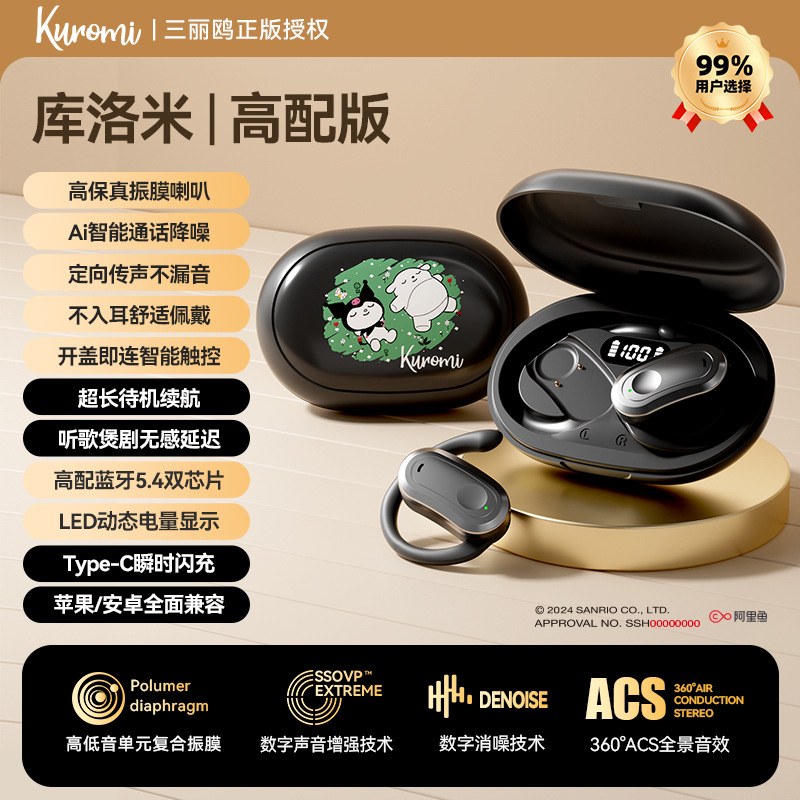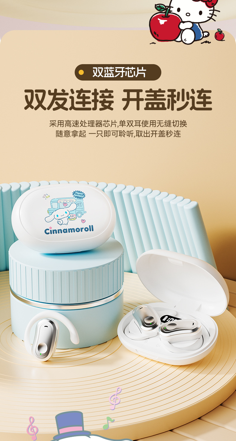 무선 귀 교수형 공기 뼈 전도 긴 내구성 스포츠 헤드셋 산리오 새로운 블루투스 헤드셋