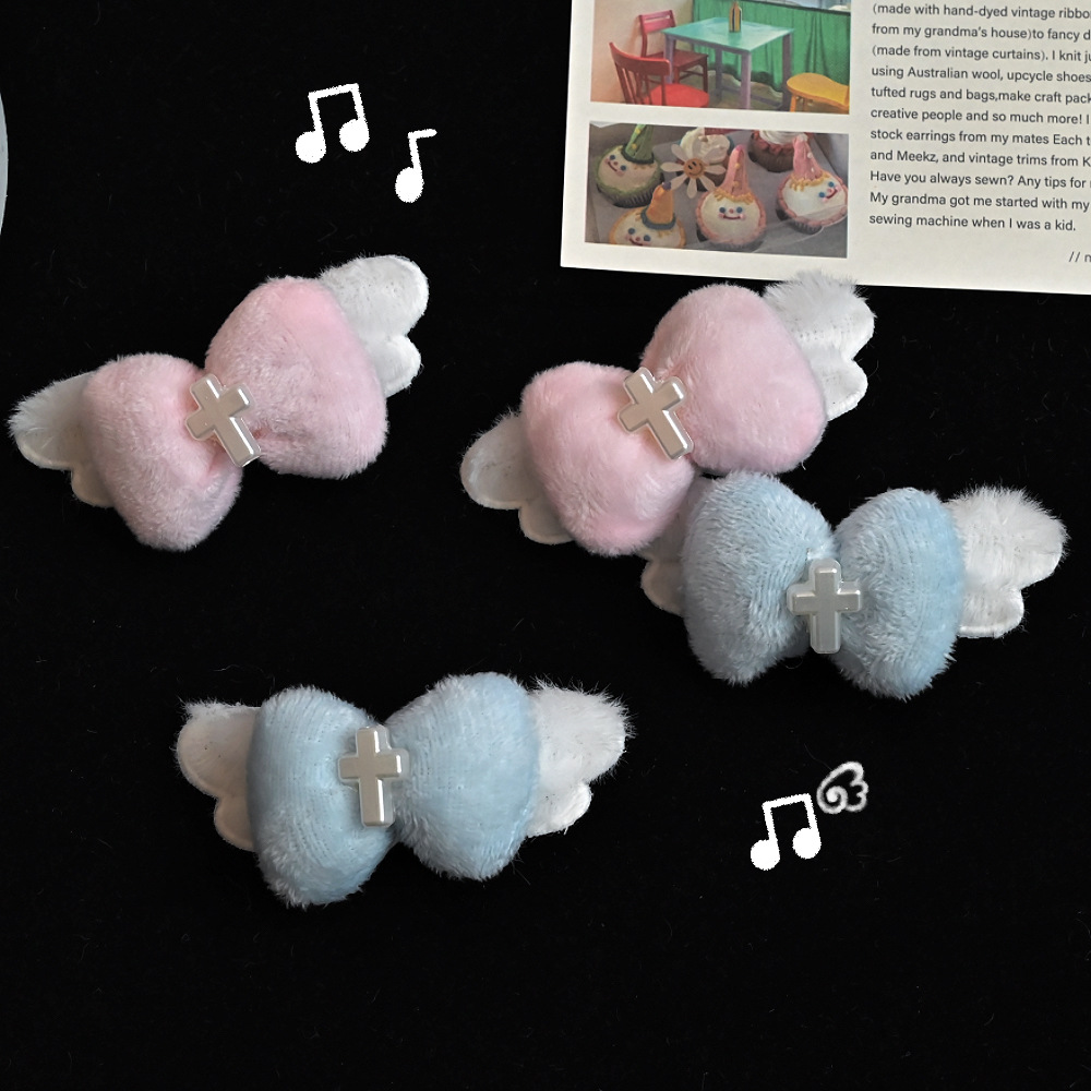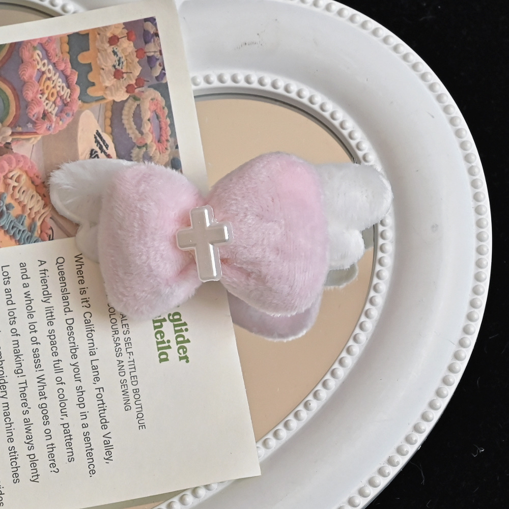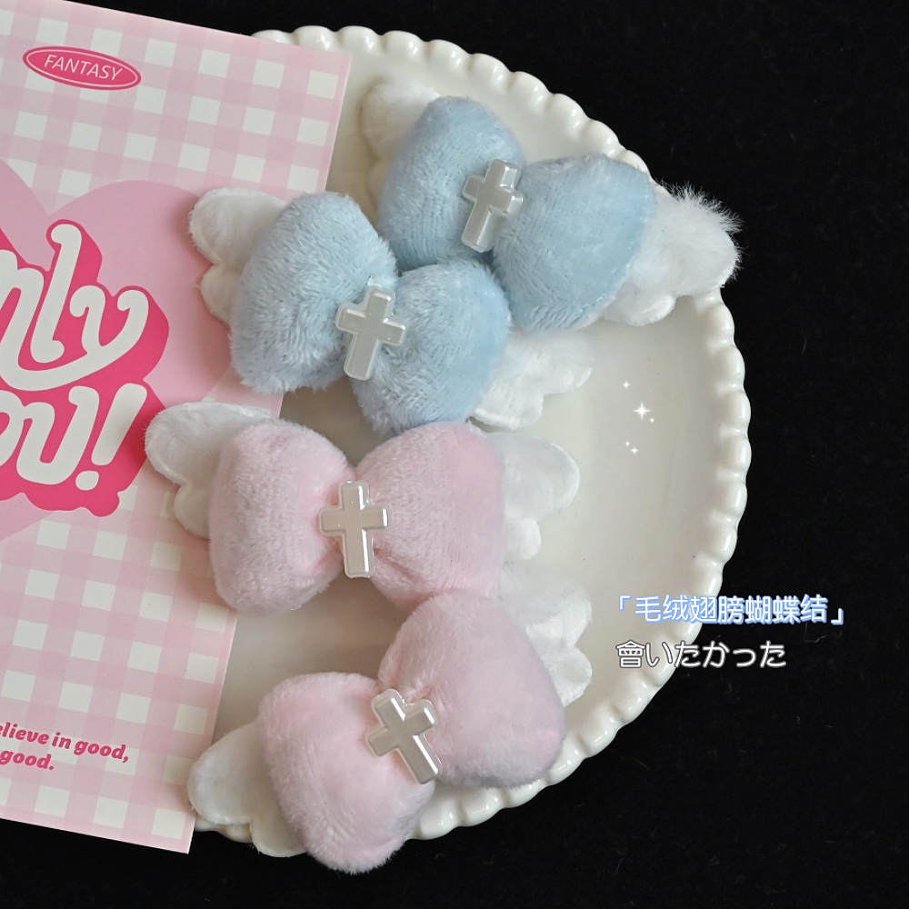 핑크 소녀 활 날개 크로스 헤어핀 사이드 클립 스파이스 소녀 하위 문화 디자인 하라주쿠 스타일 귀여운 헤드폰
