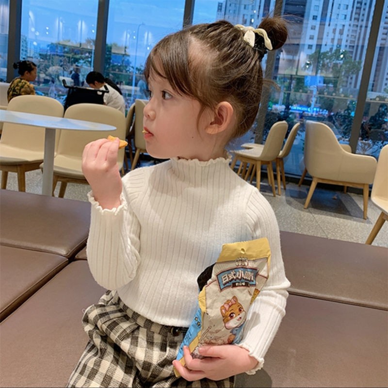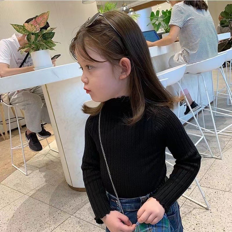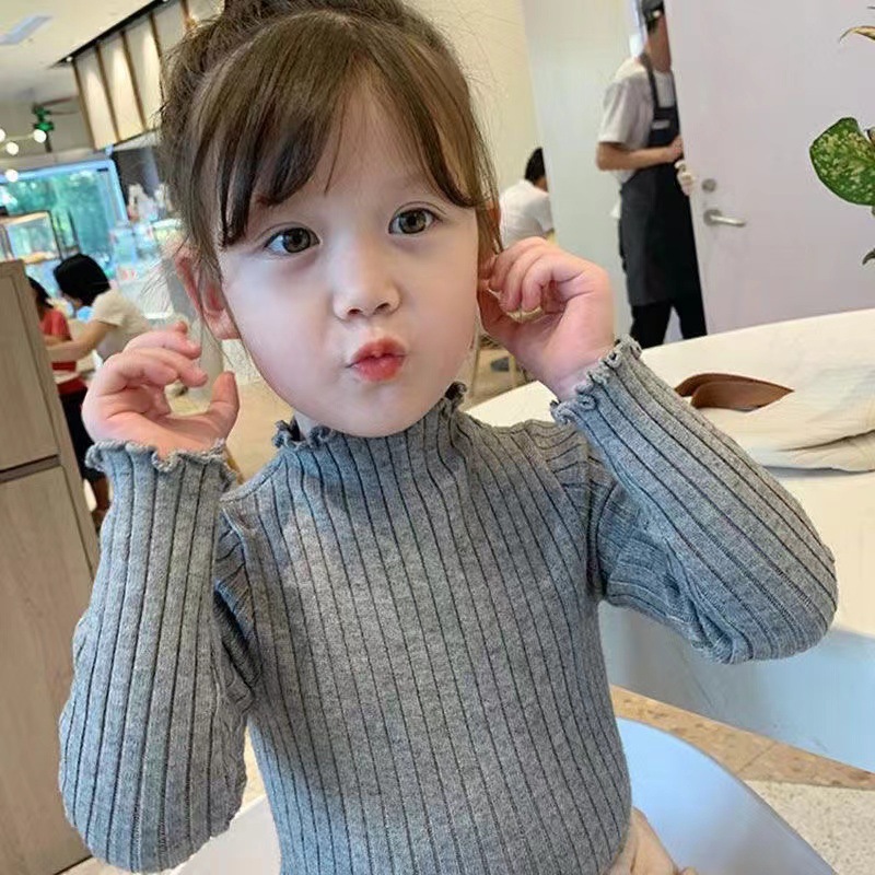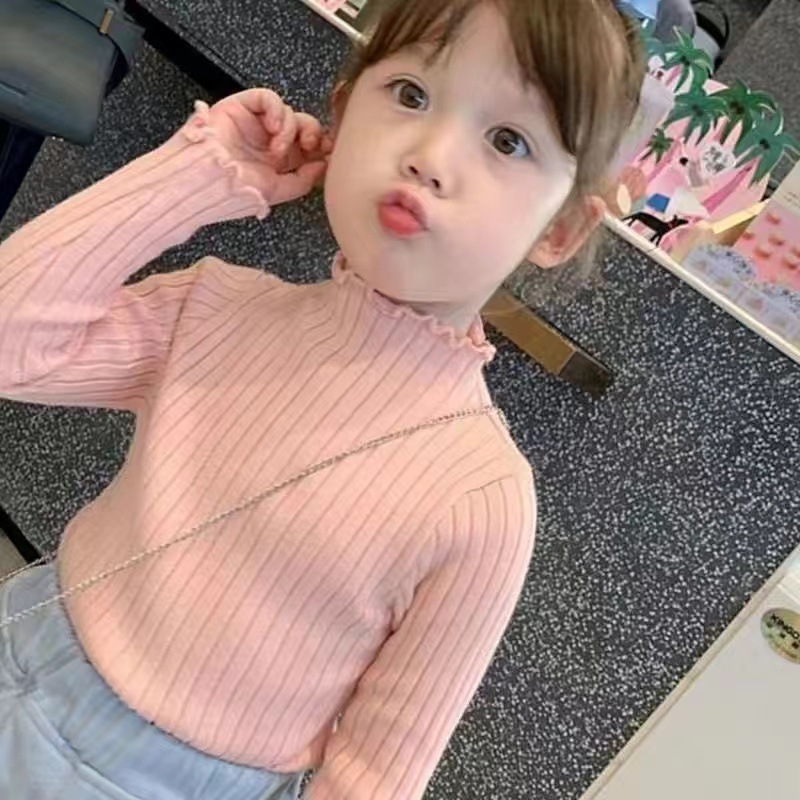 두꺼운 아동복 새로운 가을과 겨울 반 터틀넥 스웨터 소녀 긴 소매 니트 탑 아기의 서양식 기본 셔츠스토어 가기