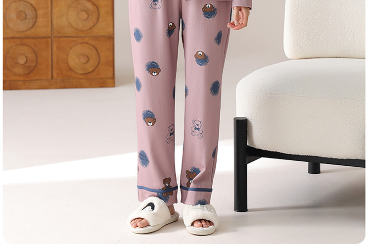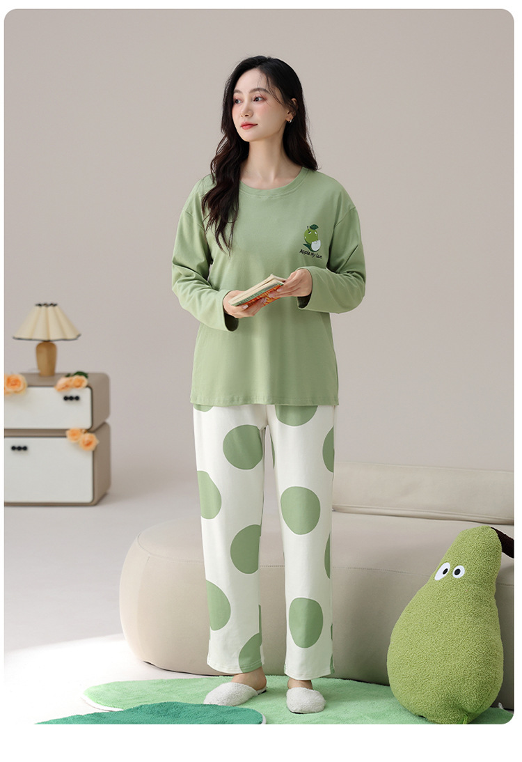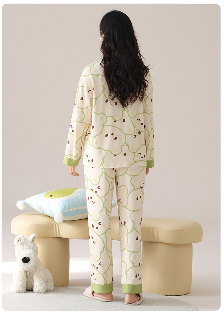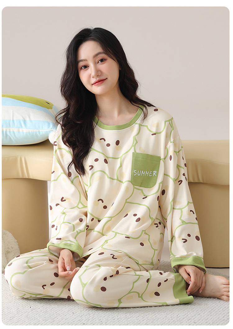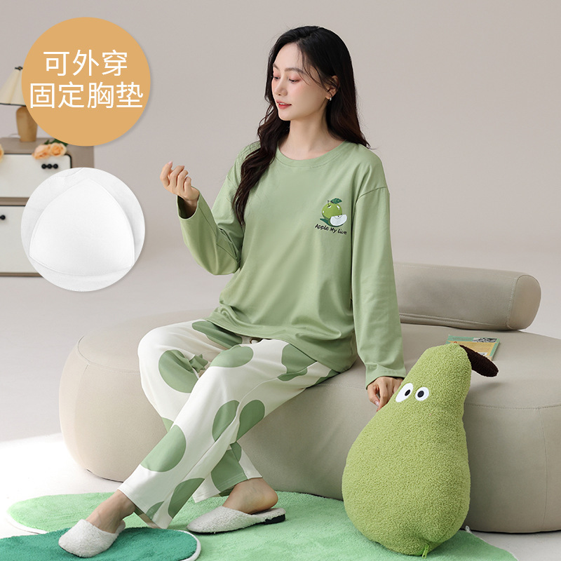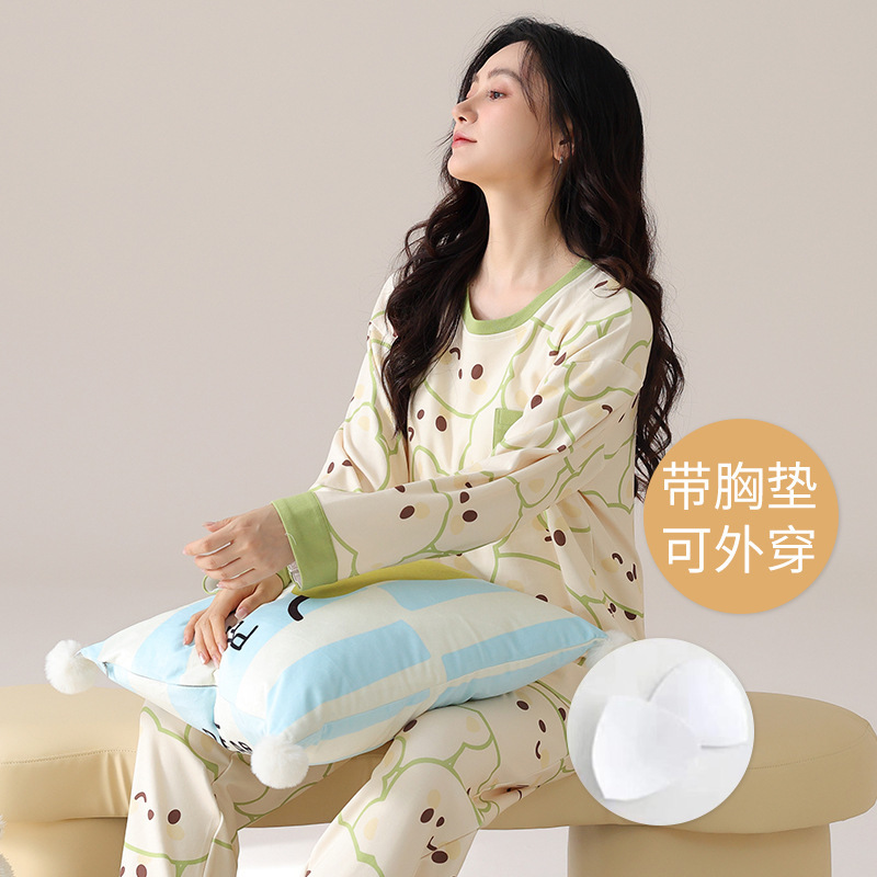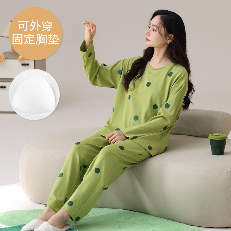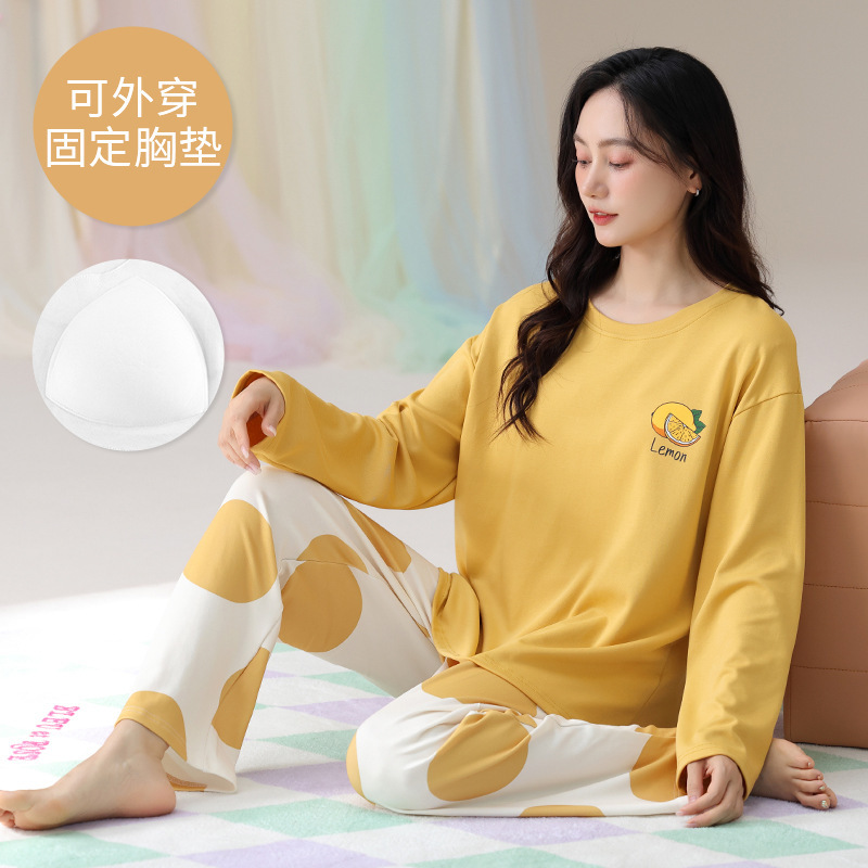 봄 및 가을 가슴 패드가 달린 면화 파자마 여성용 긴팔 세트 겉옷 무료 브래지어 안티 범프 홈 옷