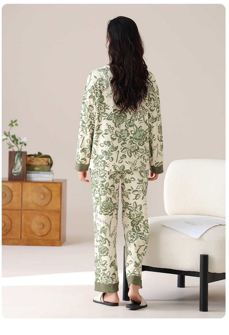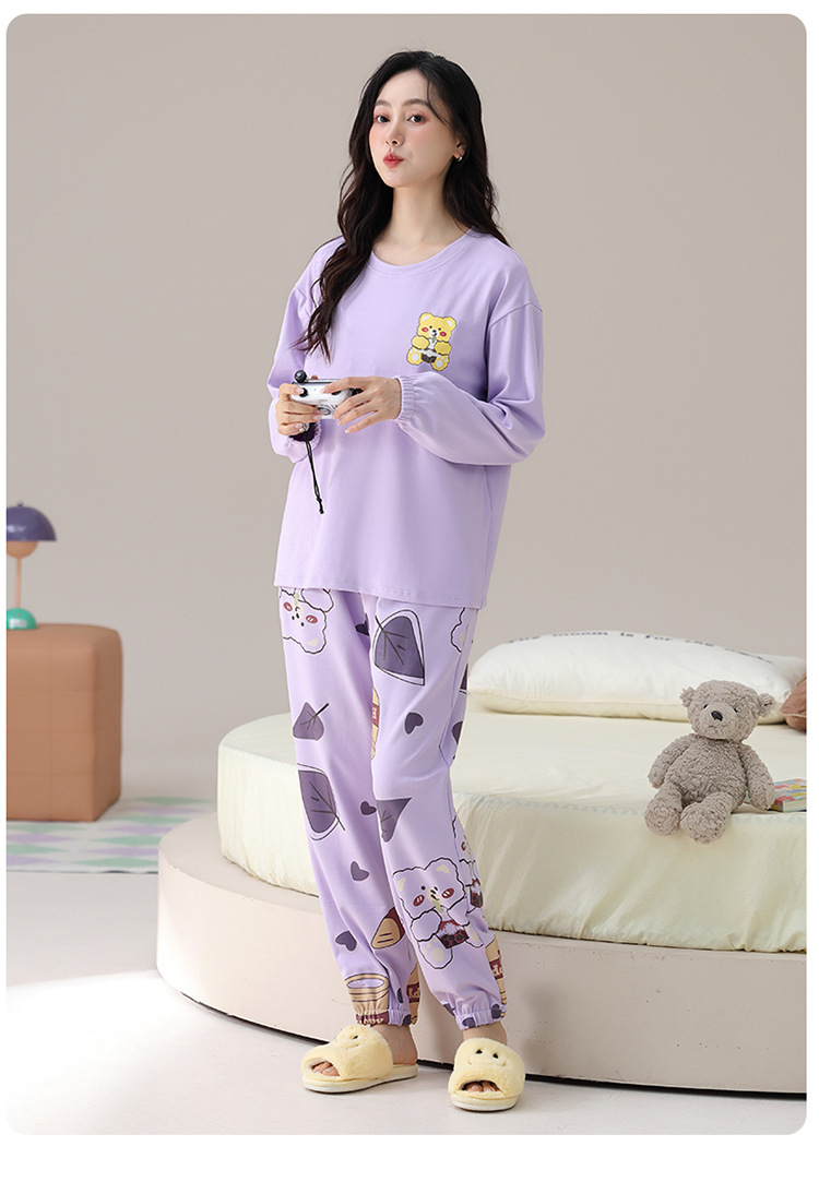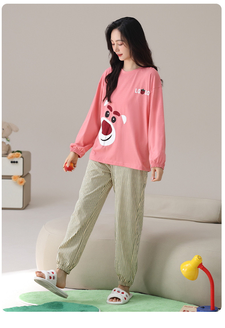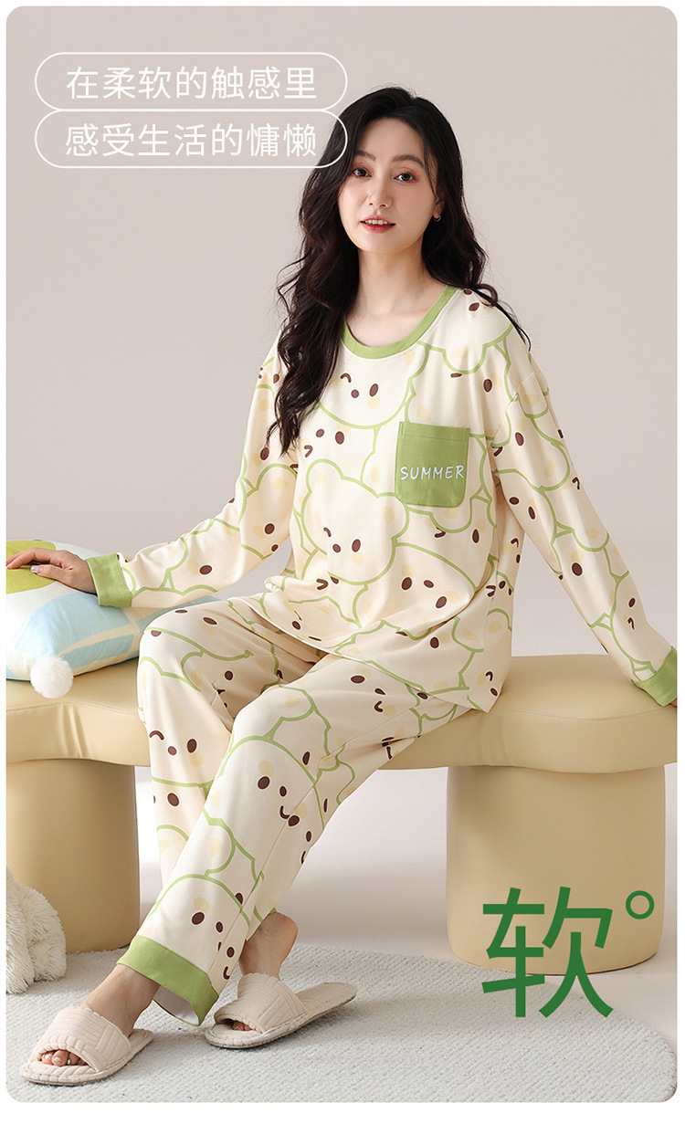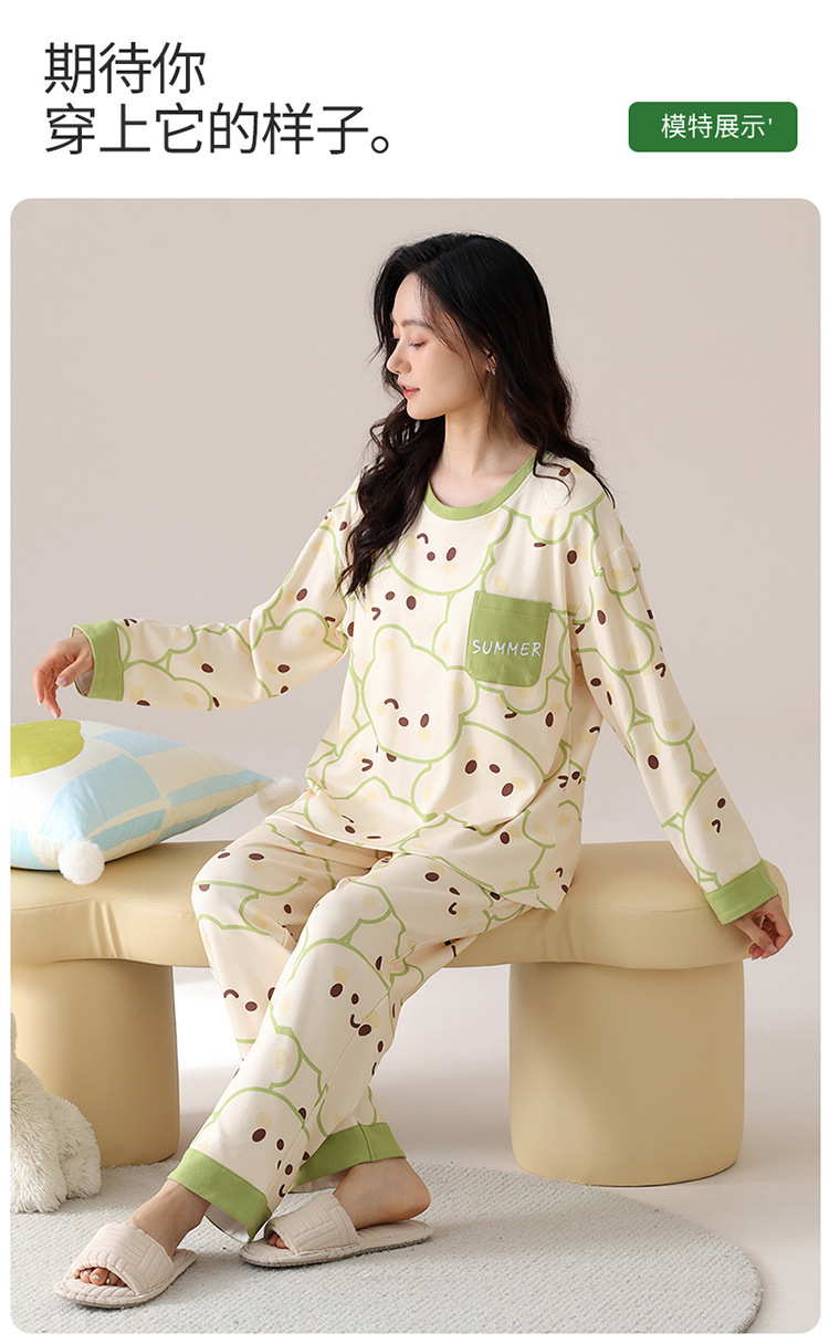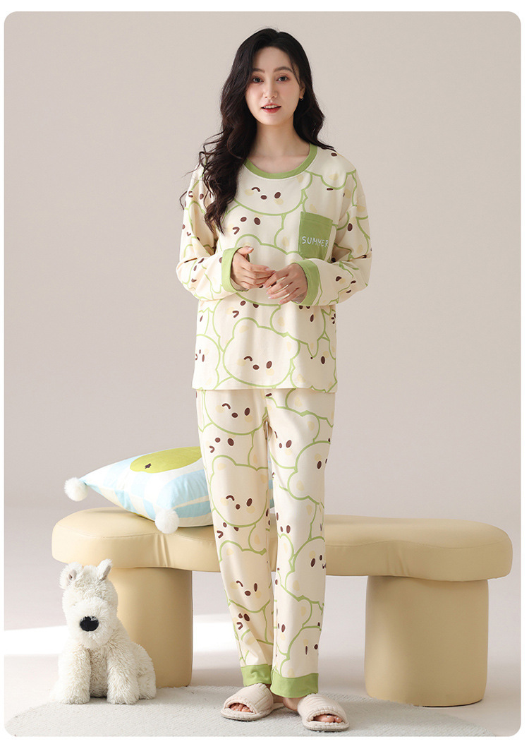 봄 및 가을 가슴 패드가 달린 면화 파자마 여성용 긴팔 세트 겉옷 무료 브래지어 안티 범프 홈 옷스토어 가기