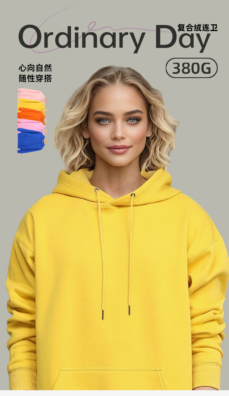2025 국경을 넘는 새로운 380 개의 복합 벨벳 기모 후드 스웨터 유럽과 미국의 후드 스웨터 두꺼운 도매스토어 가기