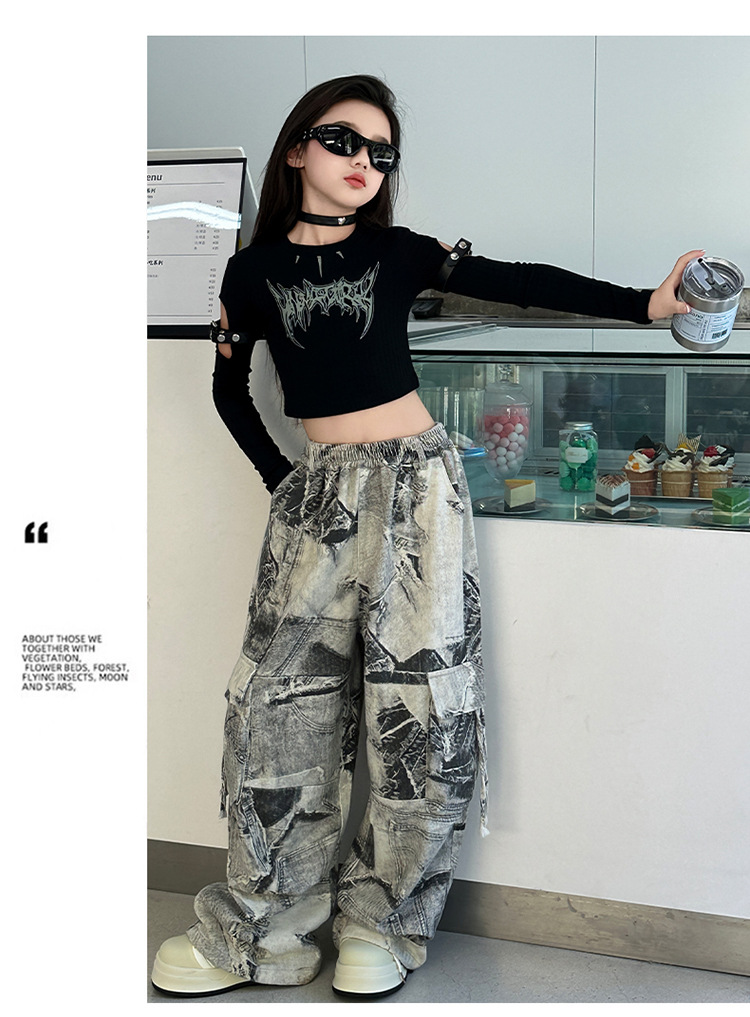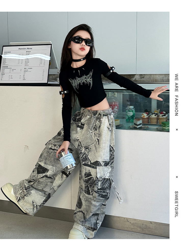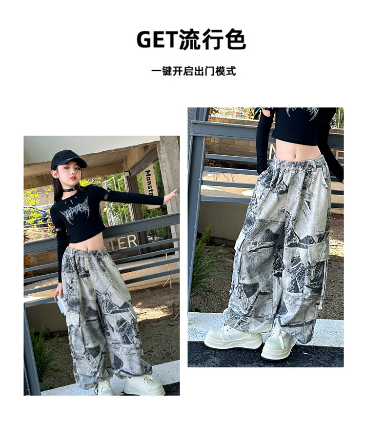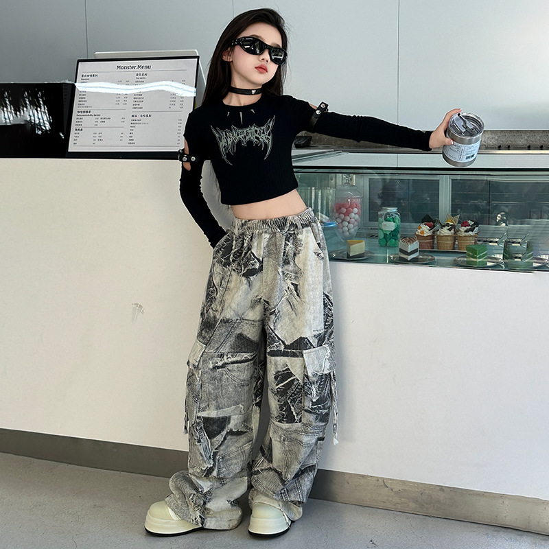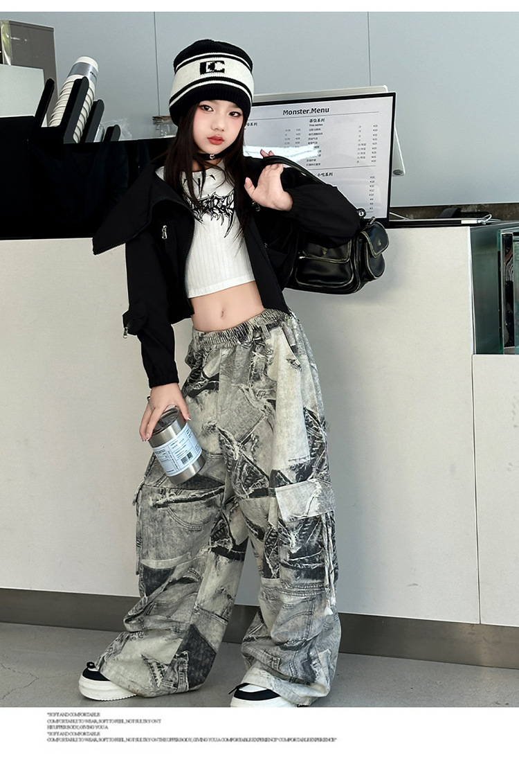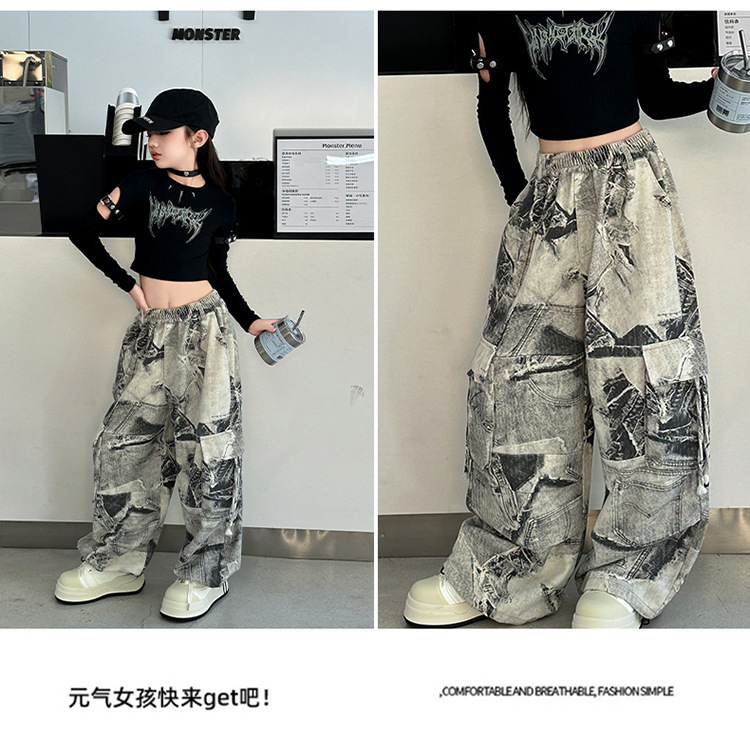 소녀 크록 바지 봄과 가을 2024 새로운 어린이 가을 느슨한 스트레이트 넓은 다리 바지 큰 어린이 한국 바지스토어 가기