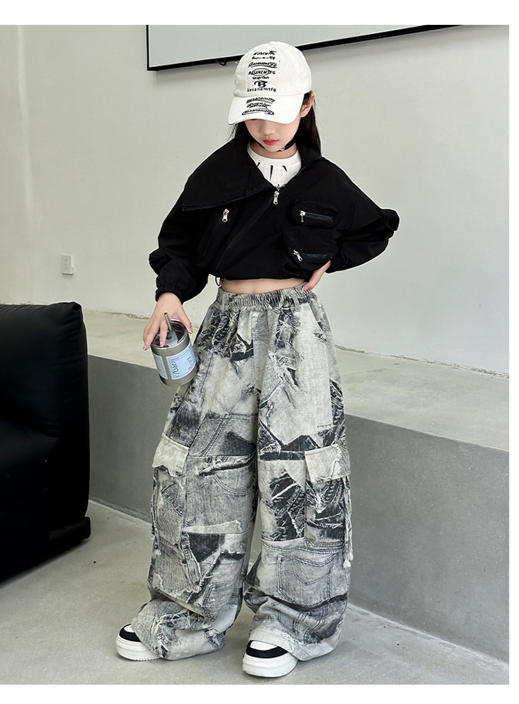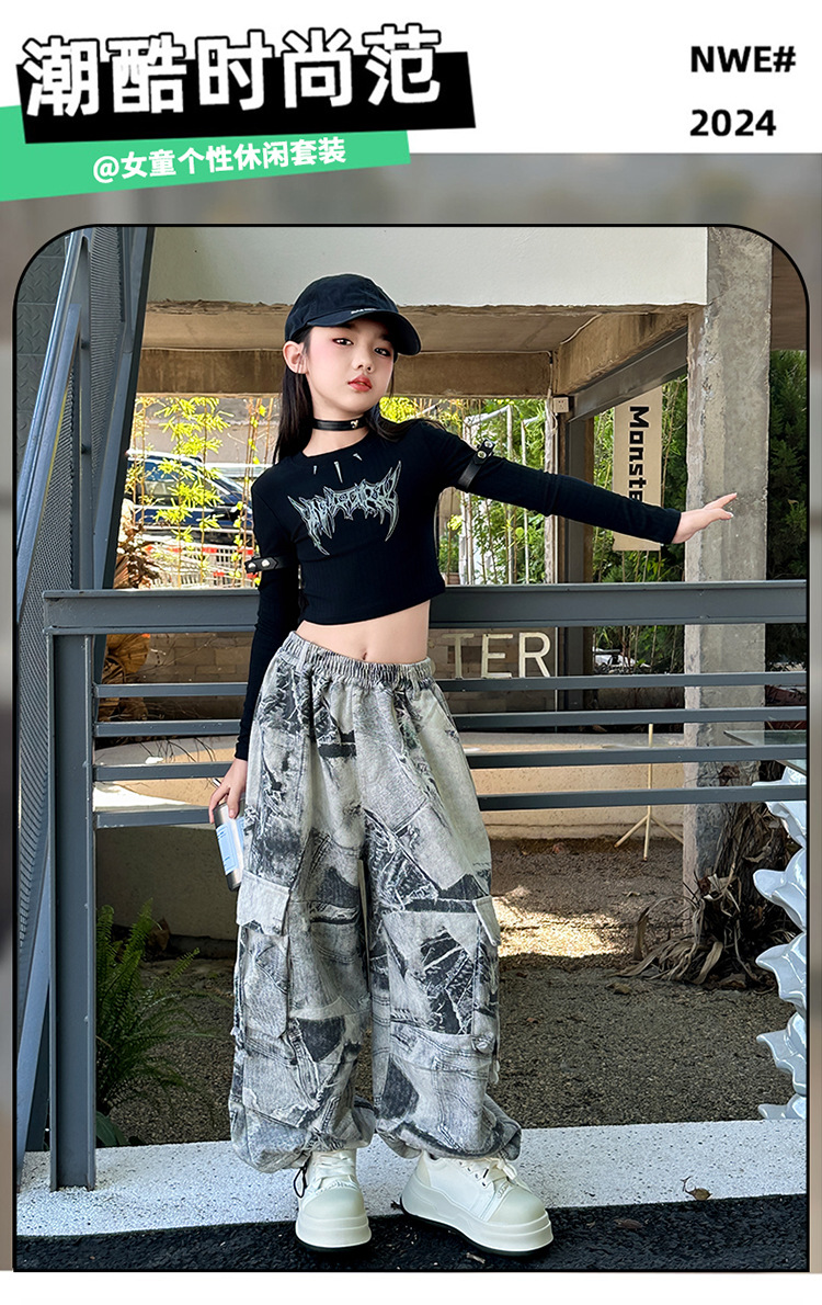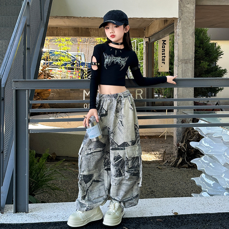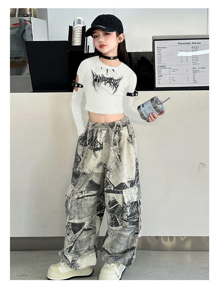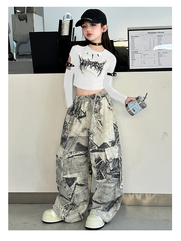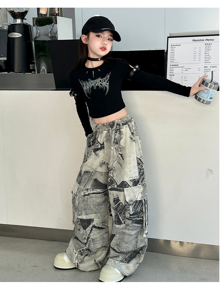 소녀 크록 바지 봄과 가을 2024 새로운 어린이 가을 느슨한 스트레이트 넓은 다리 바지 큰 어린이 한국 바지스토어 가기