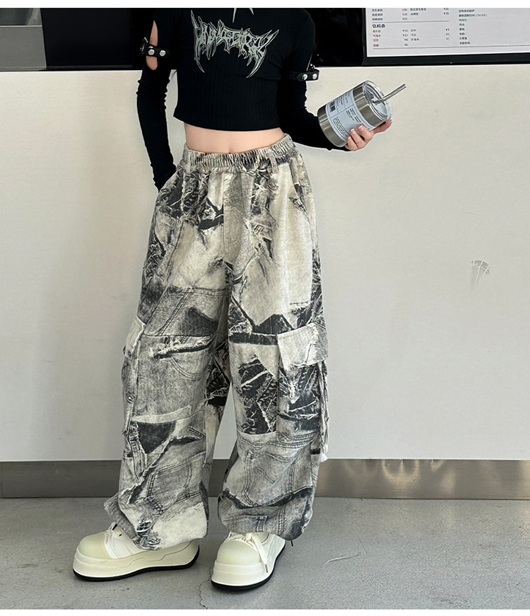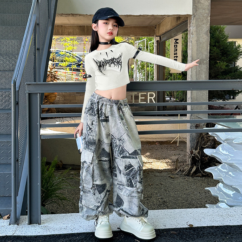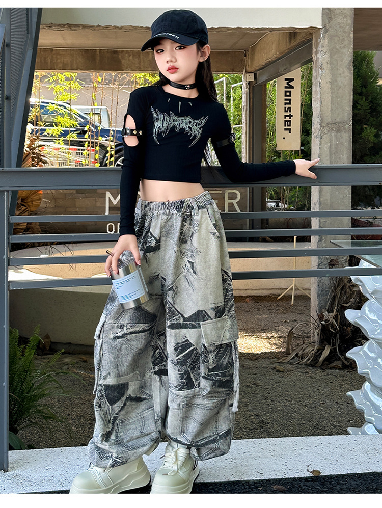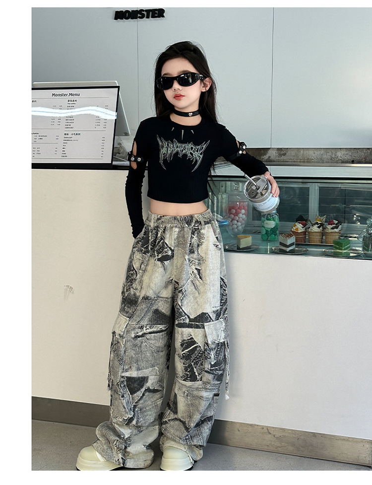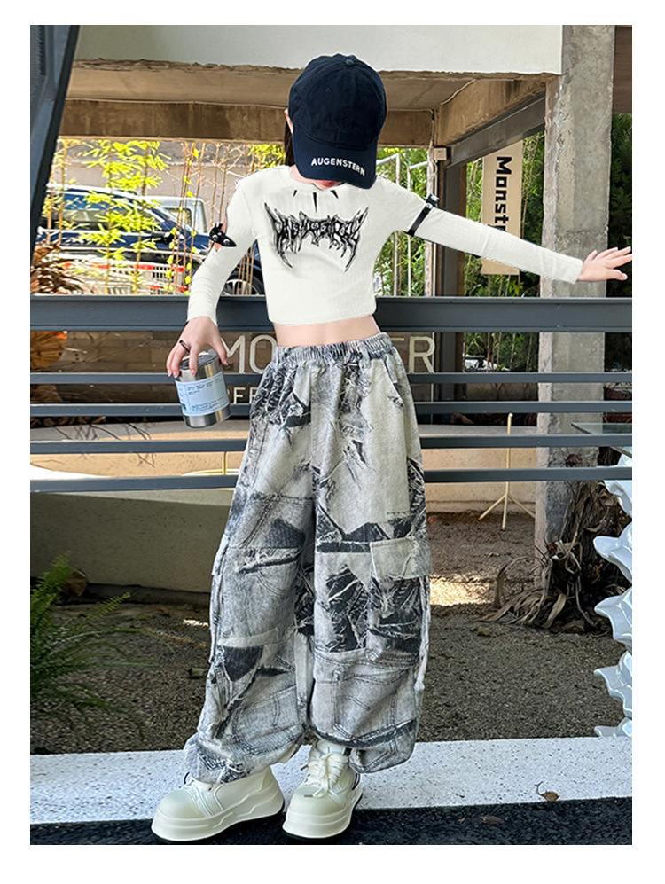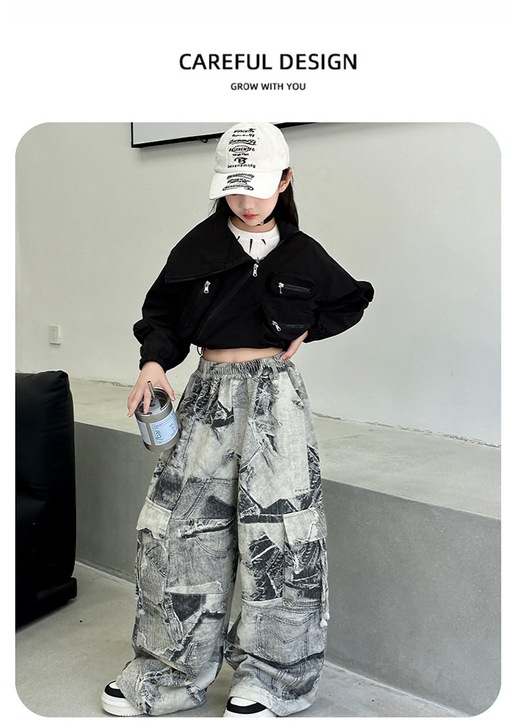 소녀 크록 바지 봄과 가을 2024 새로운 어린이 가을 느슨한 스트레이트 넓은 다리 바지 큰 어린이 한국 바지스토어 가기