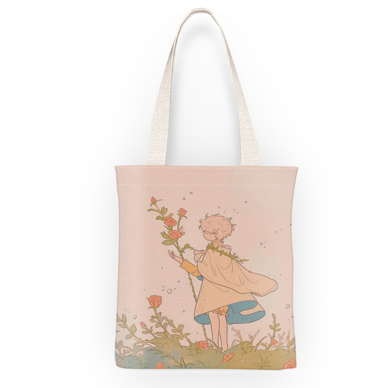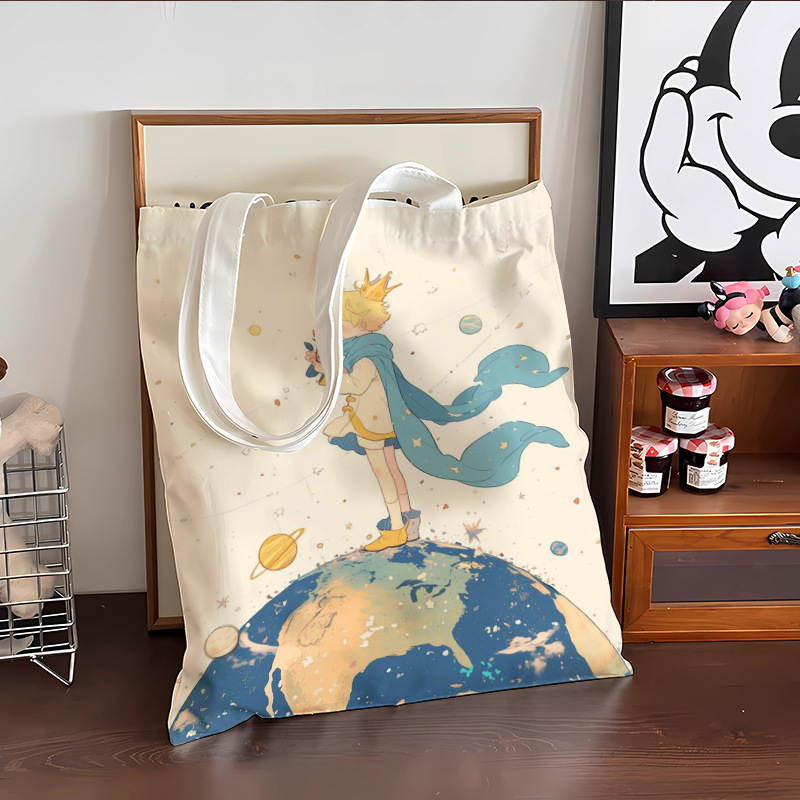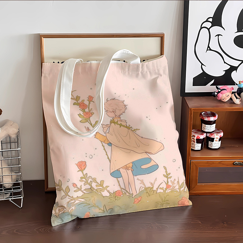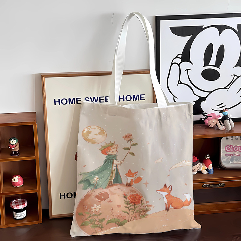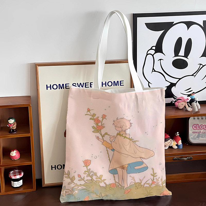 스타 리틀 프린스 만화 캔버스 가방 로즈 휴대용 문서 가방 학생 도서 휴대용 보관 가방스토어 가기